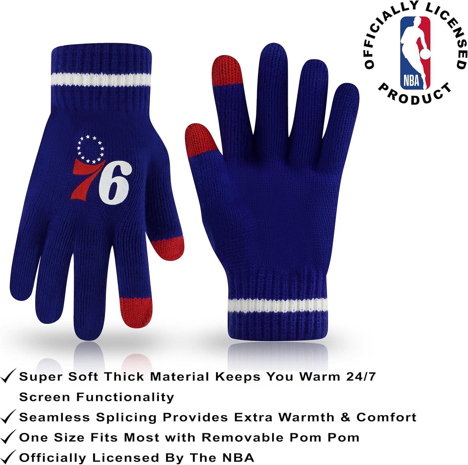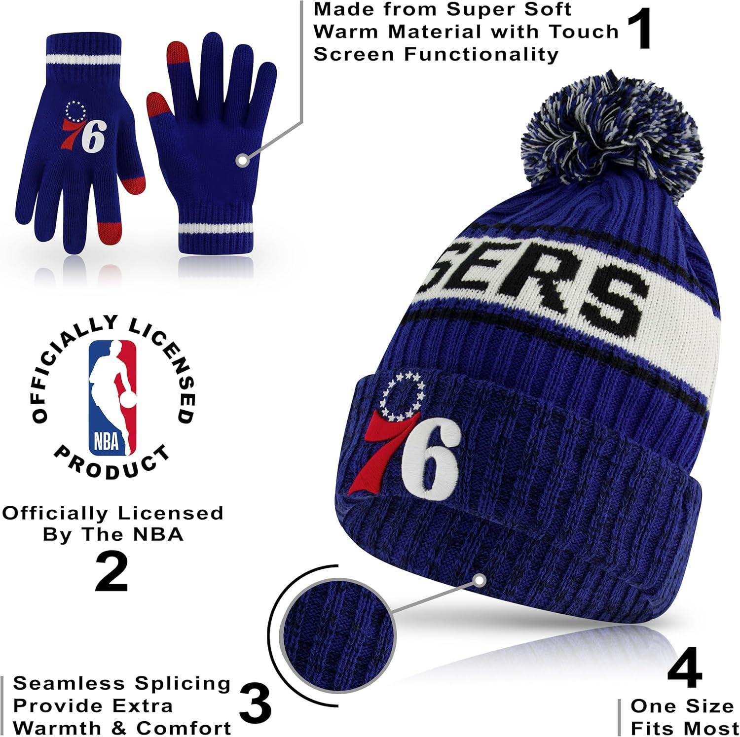 Ultra Game Men’s NBA Official Super Soft Winter Beanie Knit Hat with Extra Warm Touch Screen Gloves(Team Color)