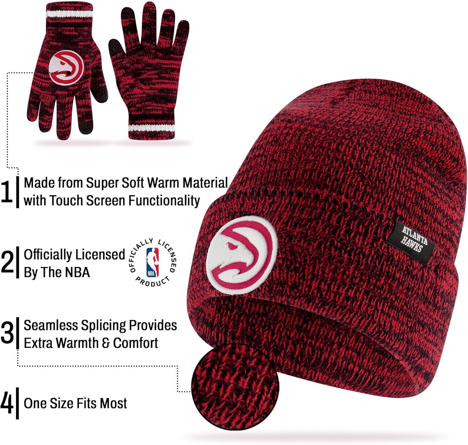 Ultra Game Men’s NBA Official Super Soft Winter Beanie Hat with Extra Warm Touch Screen Gloves(Team Color)