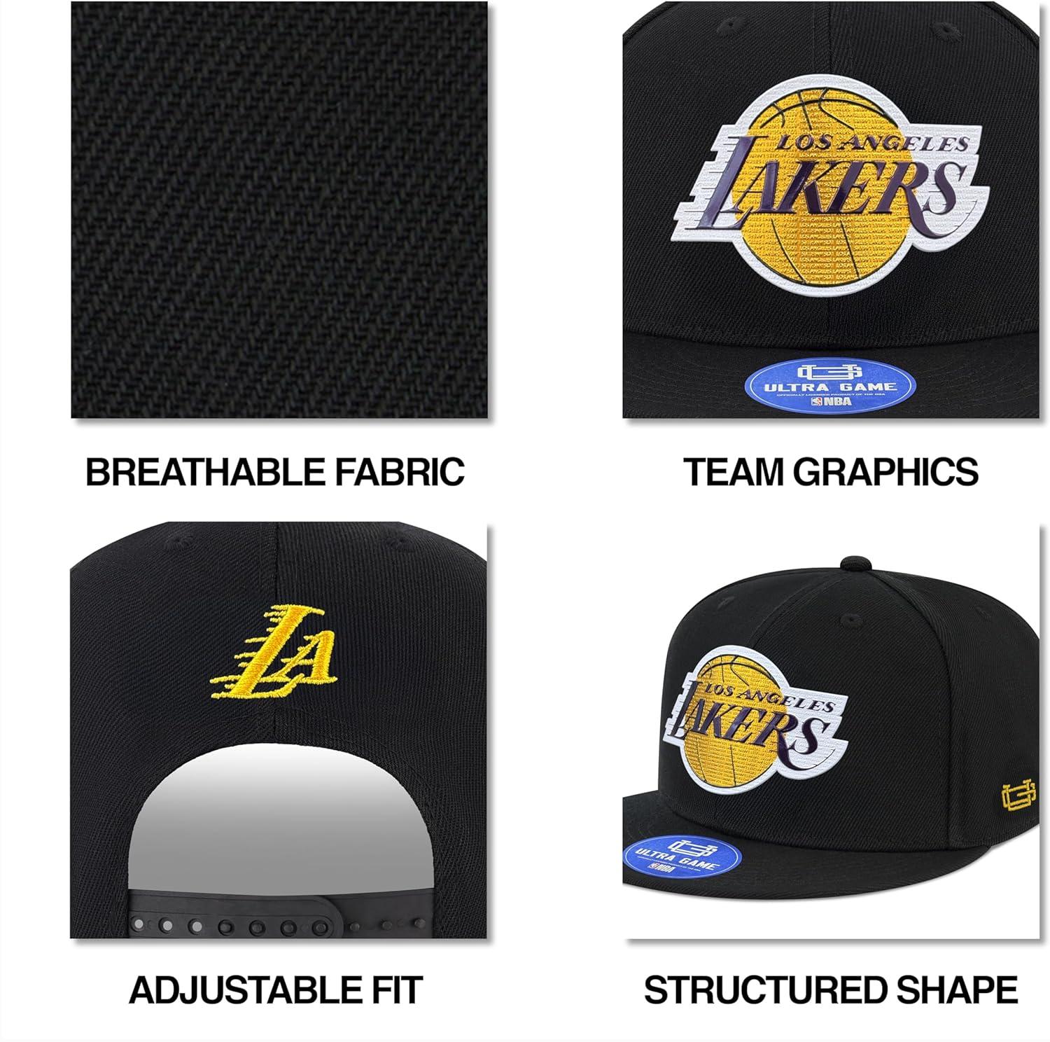 Ultra Game Men NBA Official Twill Snap Back Ultimate Black Baseball Cap Hat(Team Color)