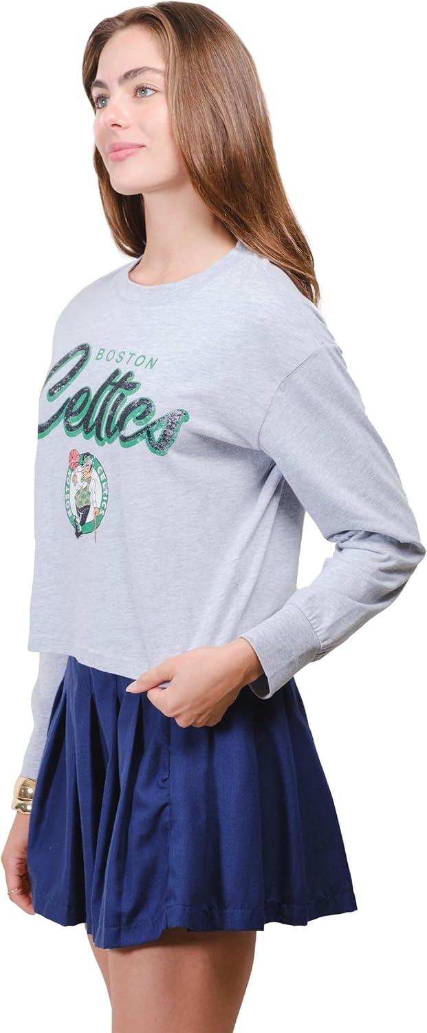 Ultra Game Women’s NBA Official Super Soft Crop Top Shirt(Heather Grey)