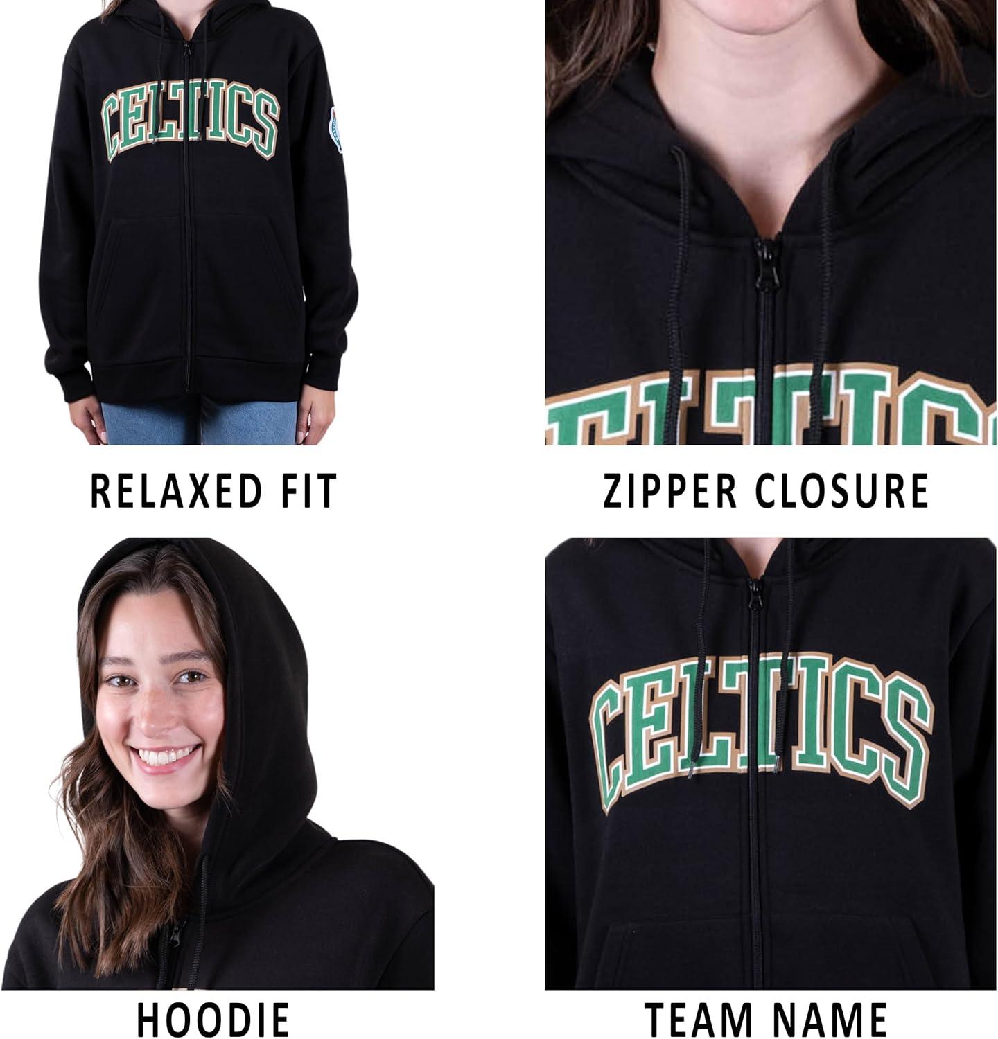 Ultra Game Women’s NBA Official Super Soft Full Zip Hoodie Sweatshirt(Black)