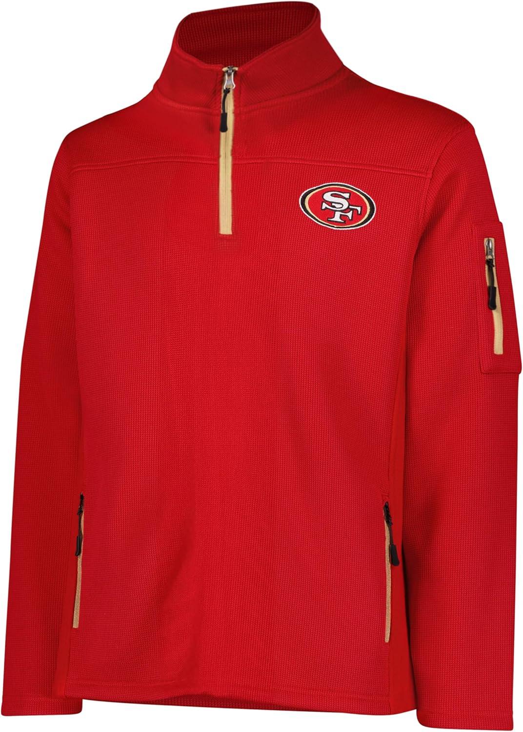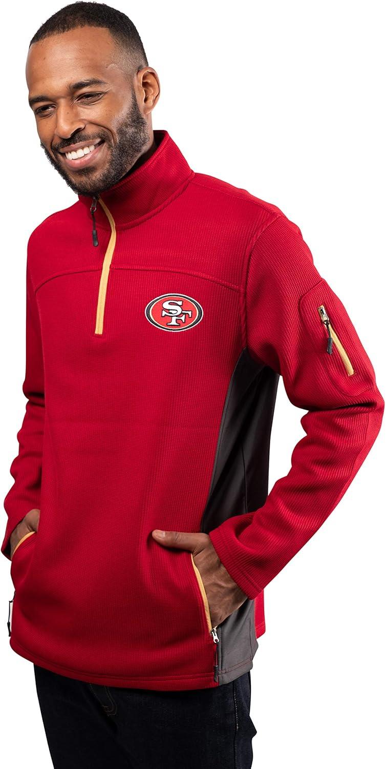 Ultra Game Men’s NFL Official Super Soft Quarter-Zip Sweatshirt with Zipper Pockets(Team Color Updated)