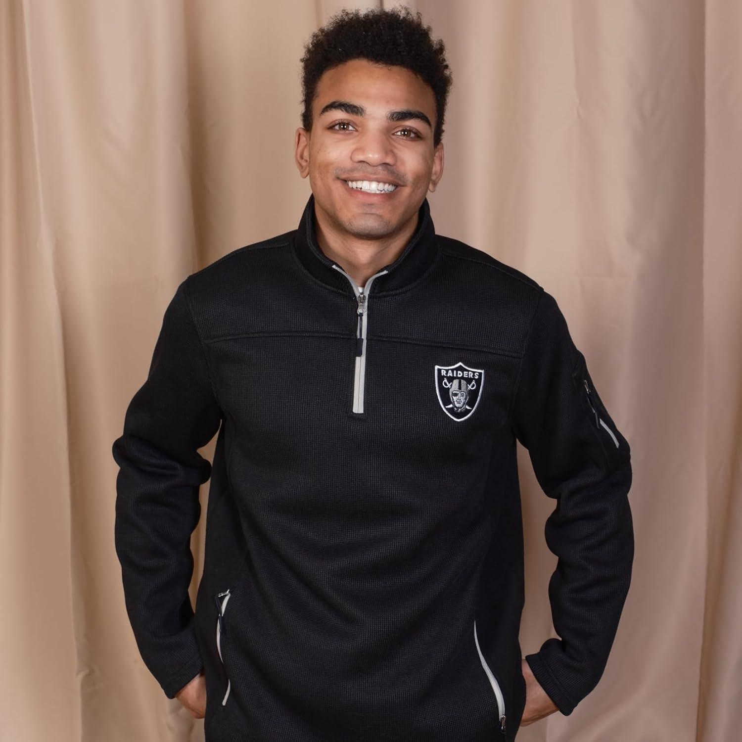 Ultra Game Men’s NFL Official Super Soft Quarter-Zip Sweatshirt with Zipper Pockets(Black)