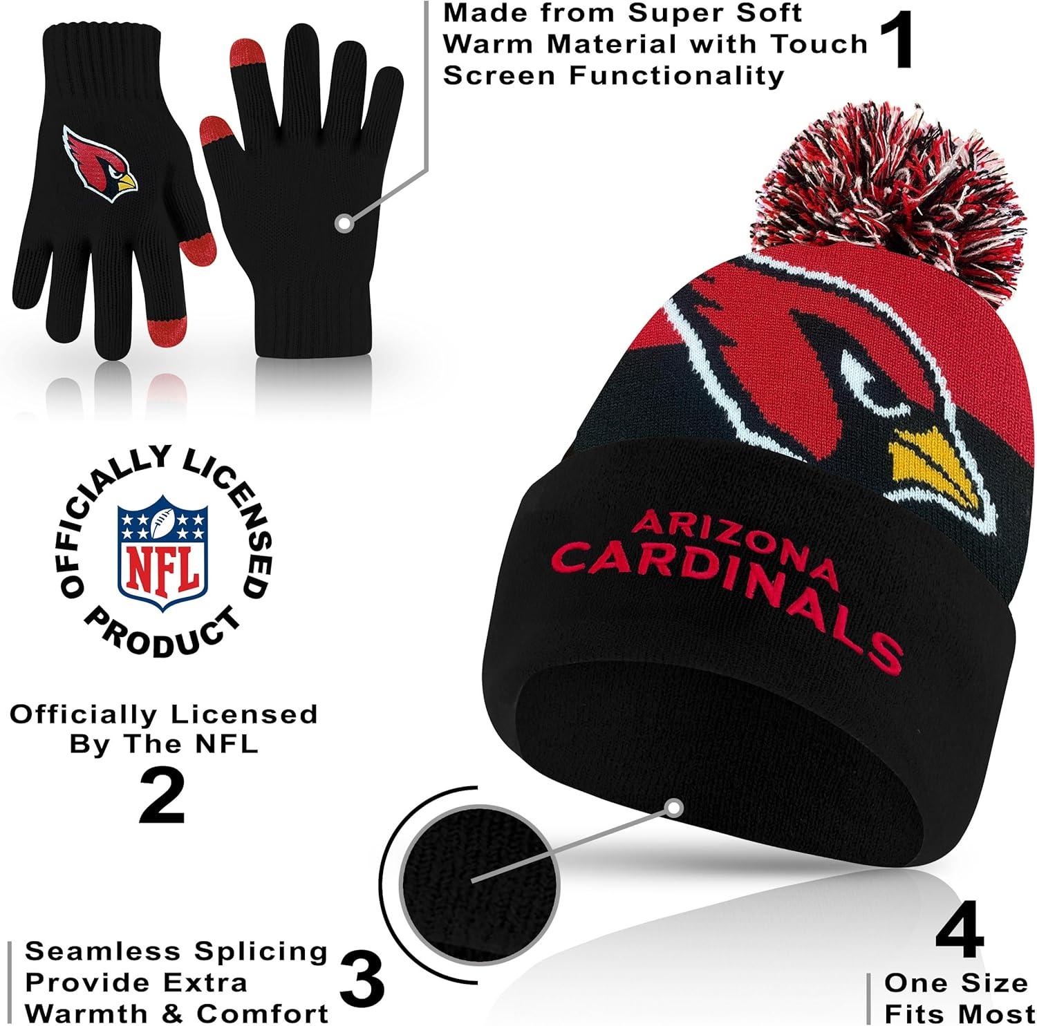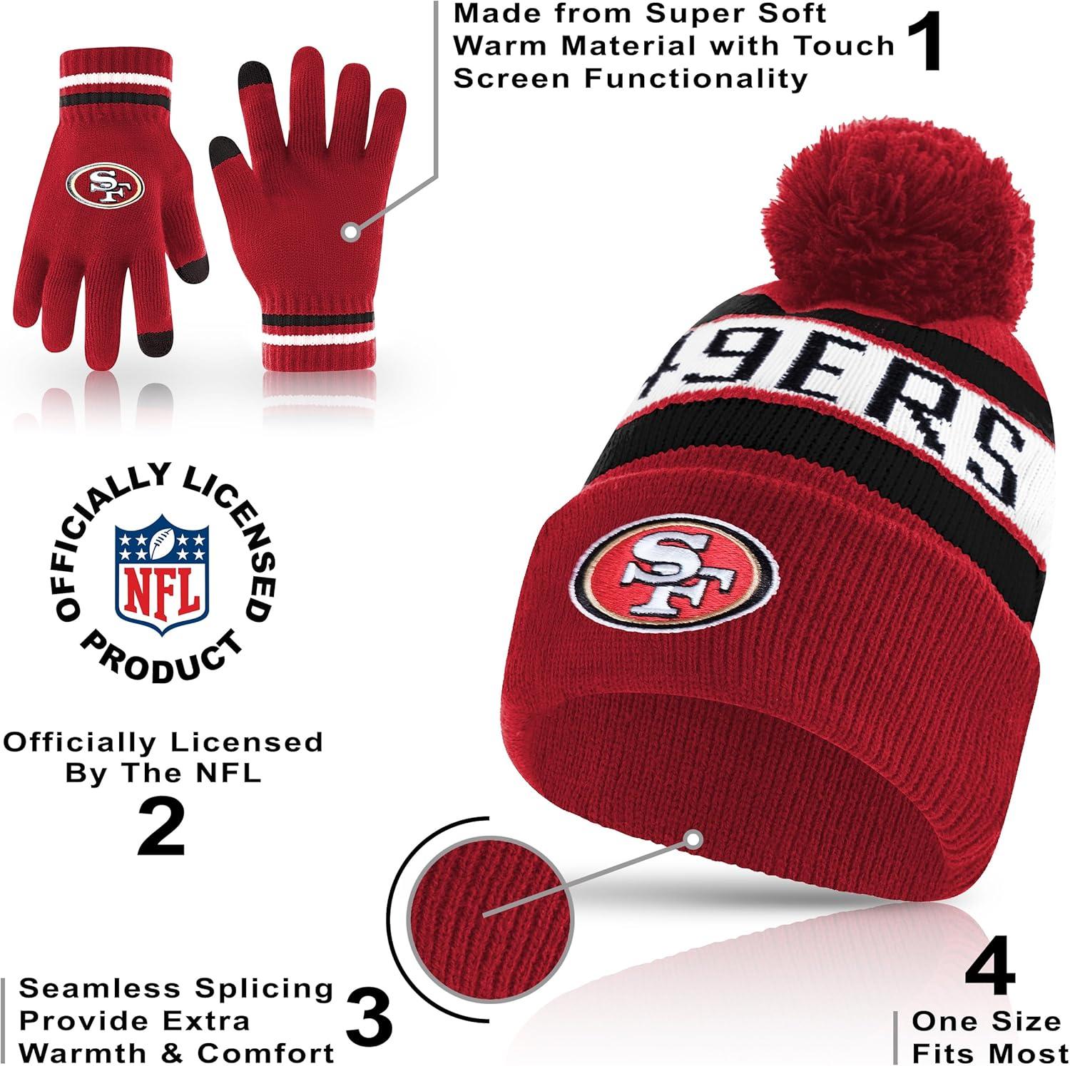 Ultra Game Adults NFL Official Super Soft Winter Beanie Knit Hat With Warm Touch Screen Gloves(Team Color)