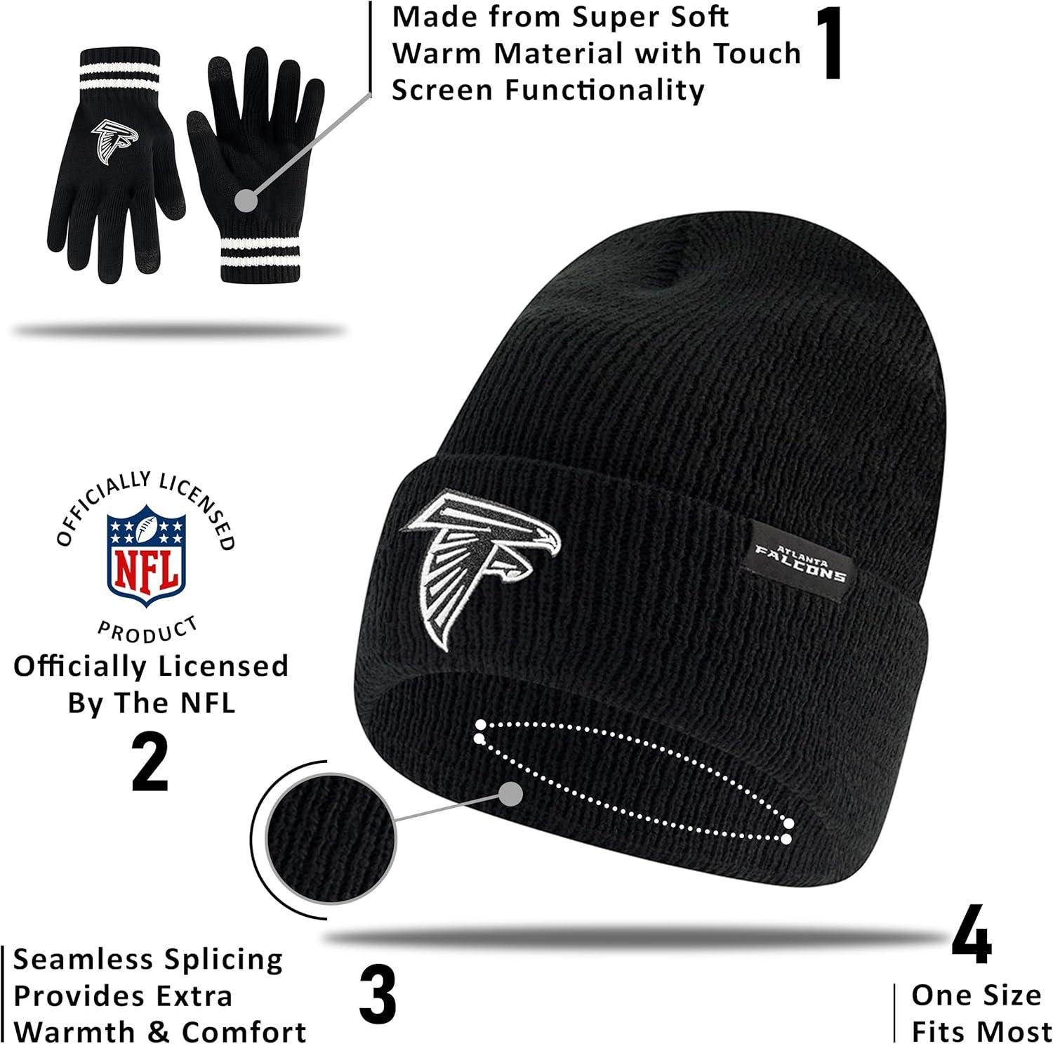 Ultra Game Adults NFL Official Super Soft Winter Beanie Knit Hat With Warm Touch Screen Gloves(Team Color)