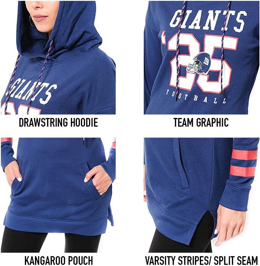 Ultra Game NFL womens Tunic Hoodie Pullover Sweatshirt Terry(Blue)