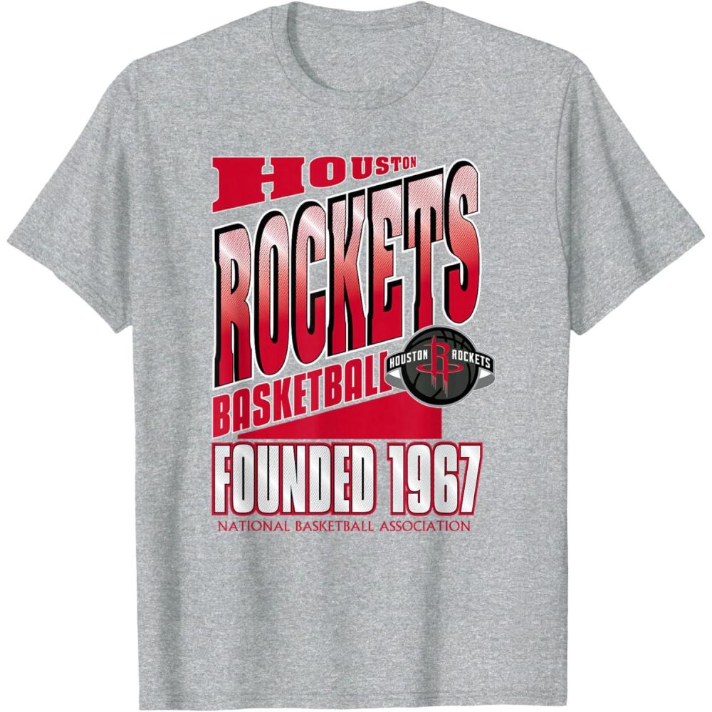 Houston Rockets NBA Breakaway T-Shirt – Men’s Black Small Classic Fit Short Sleeve Crew Neck T-Shirt(Heather Grey)