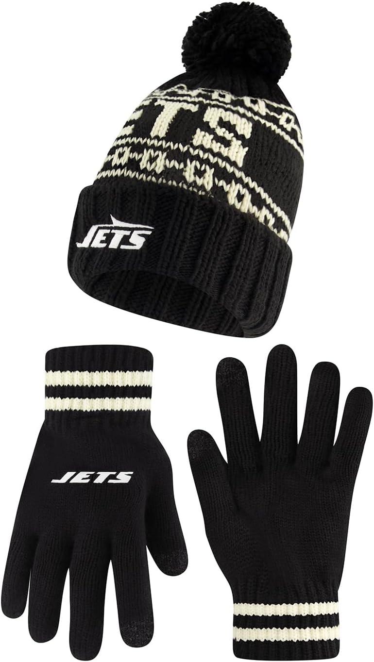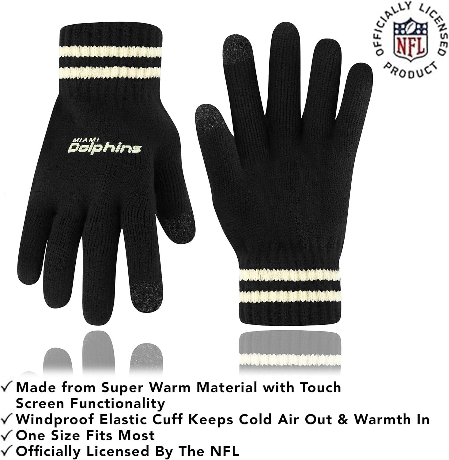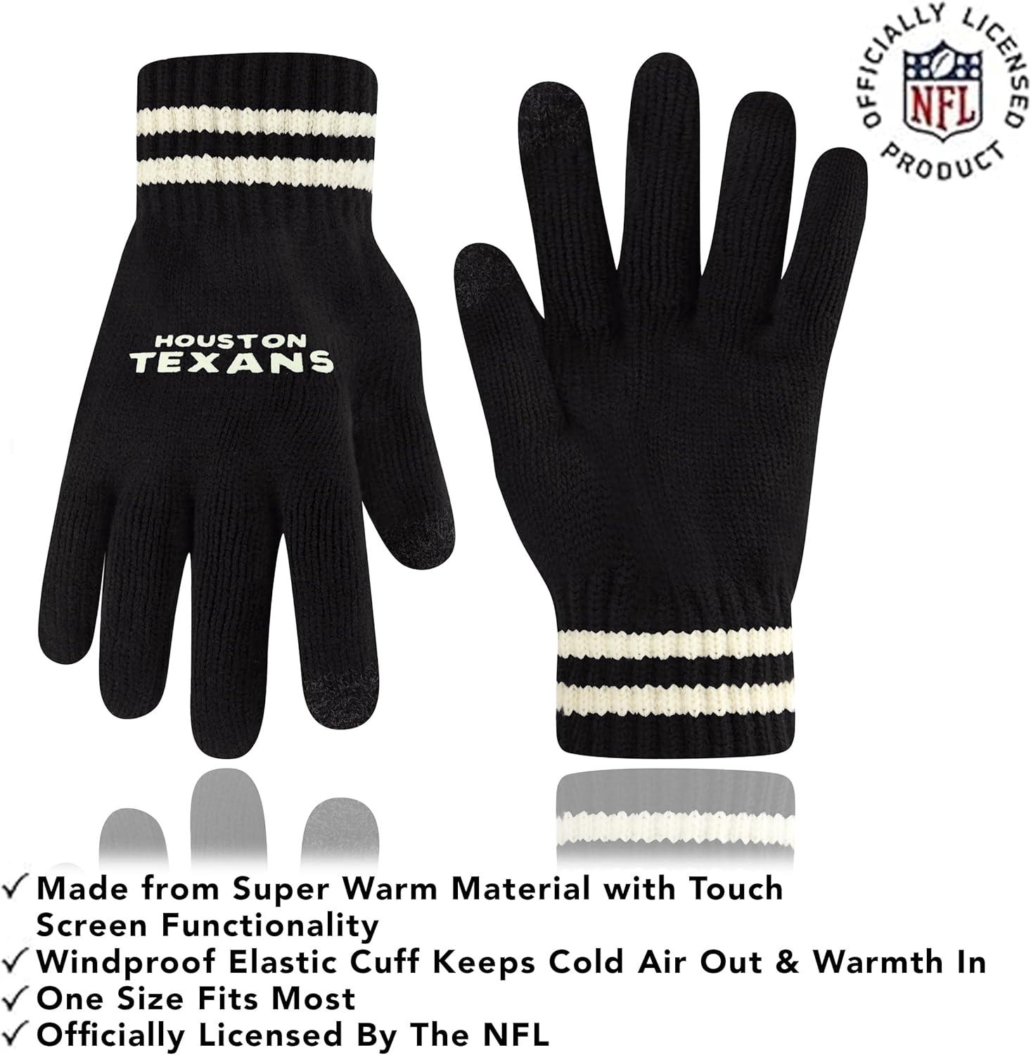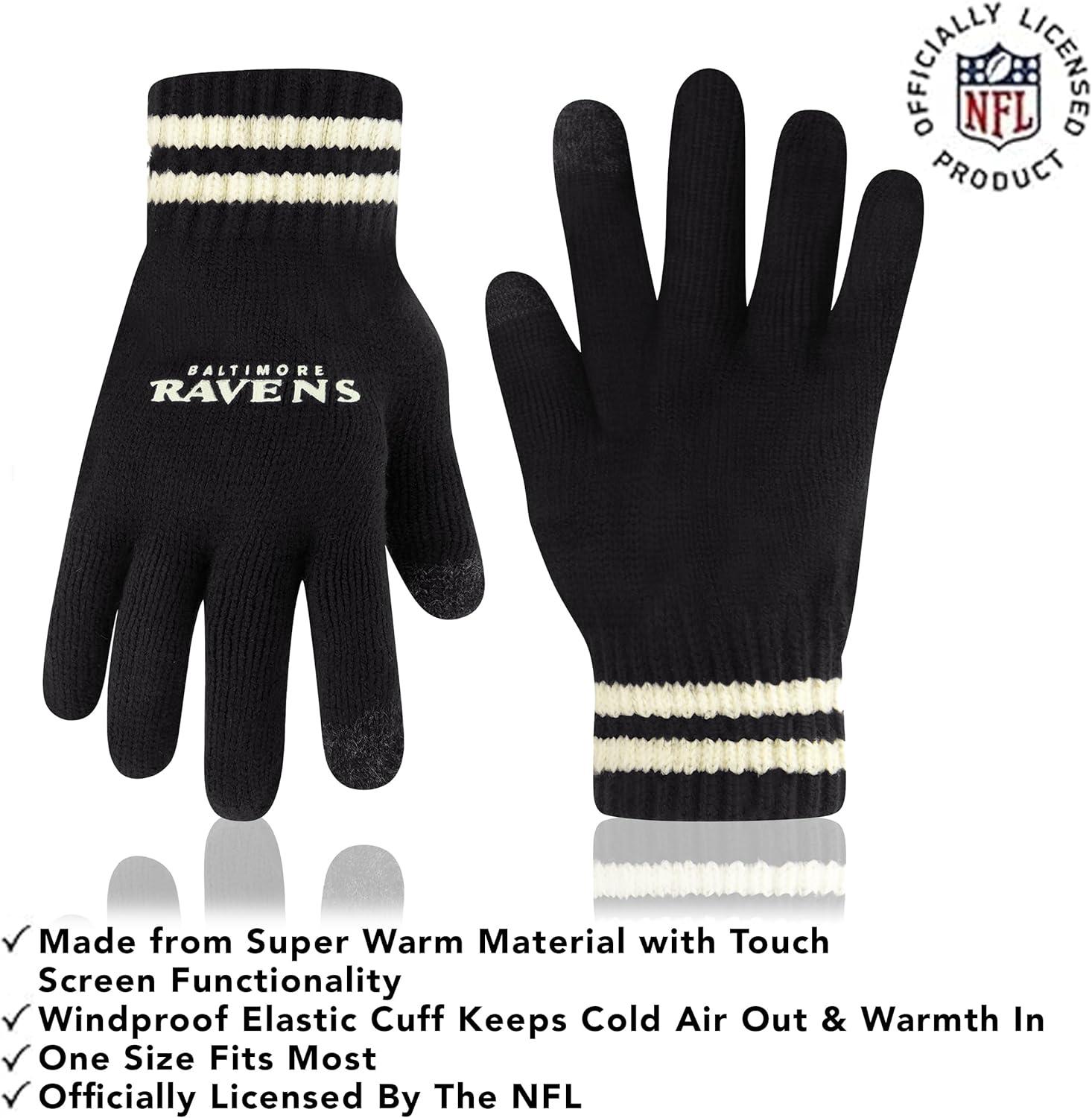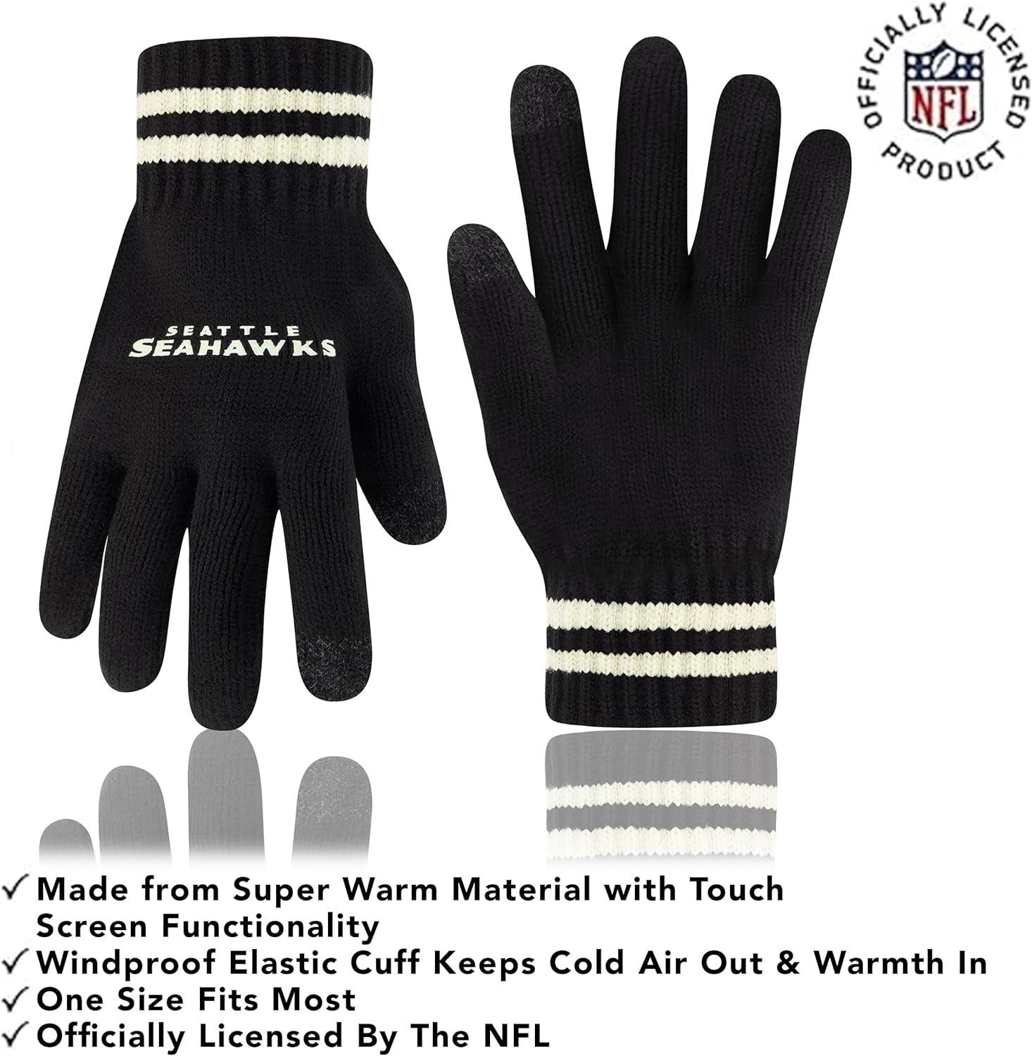 NFL COLLECTION: Officially Licensed By The NFL, Ultra Game NFL revives classic fan gear with innovative designs and fabric updates, appealing to all. SUPERIOR WARMTH: Soft material in your team's core colors keeps you warm, with an elastic cuff on gloves to keep snow and wind out. TOUCH-SCREEN FRIENDLY: Thumb and first finger on both gloves allow device use without removal. ADJUSTABLE FIT: Stretchy beanie fits most, staying secure and comfortable. STYLE AND DESIGN: High-quality graphics of your favorite NFL team in official colors adorn the hat and gloves.