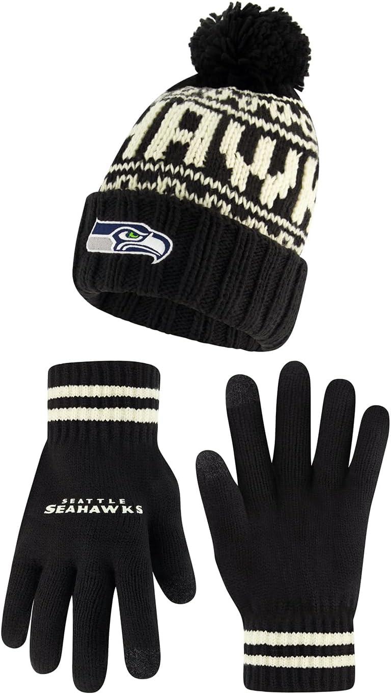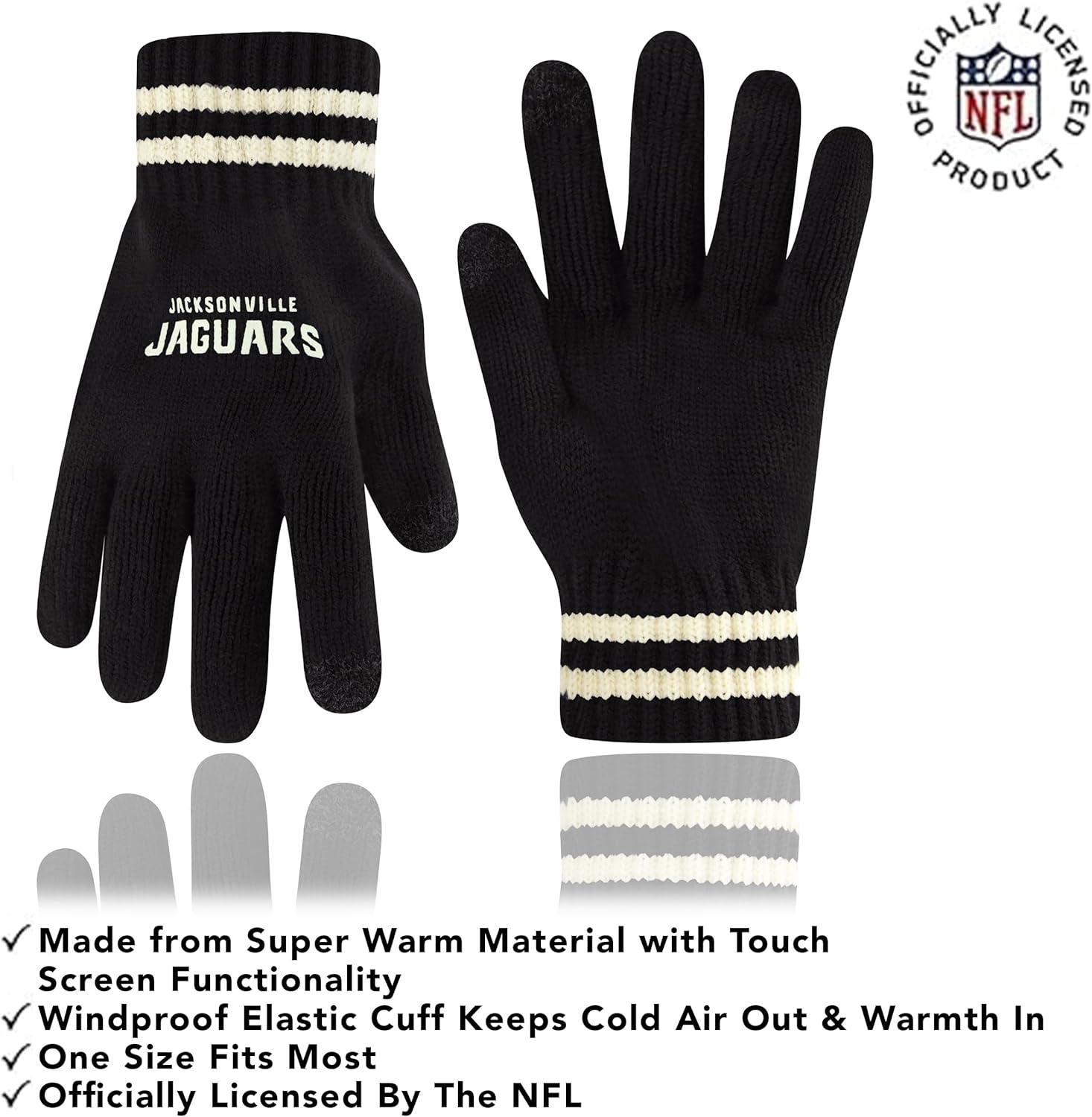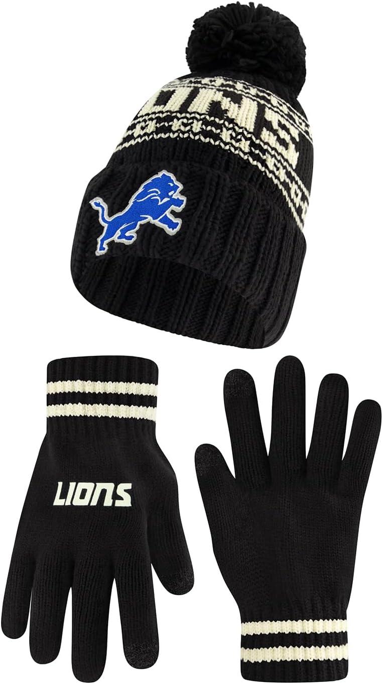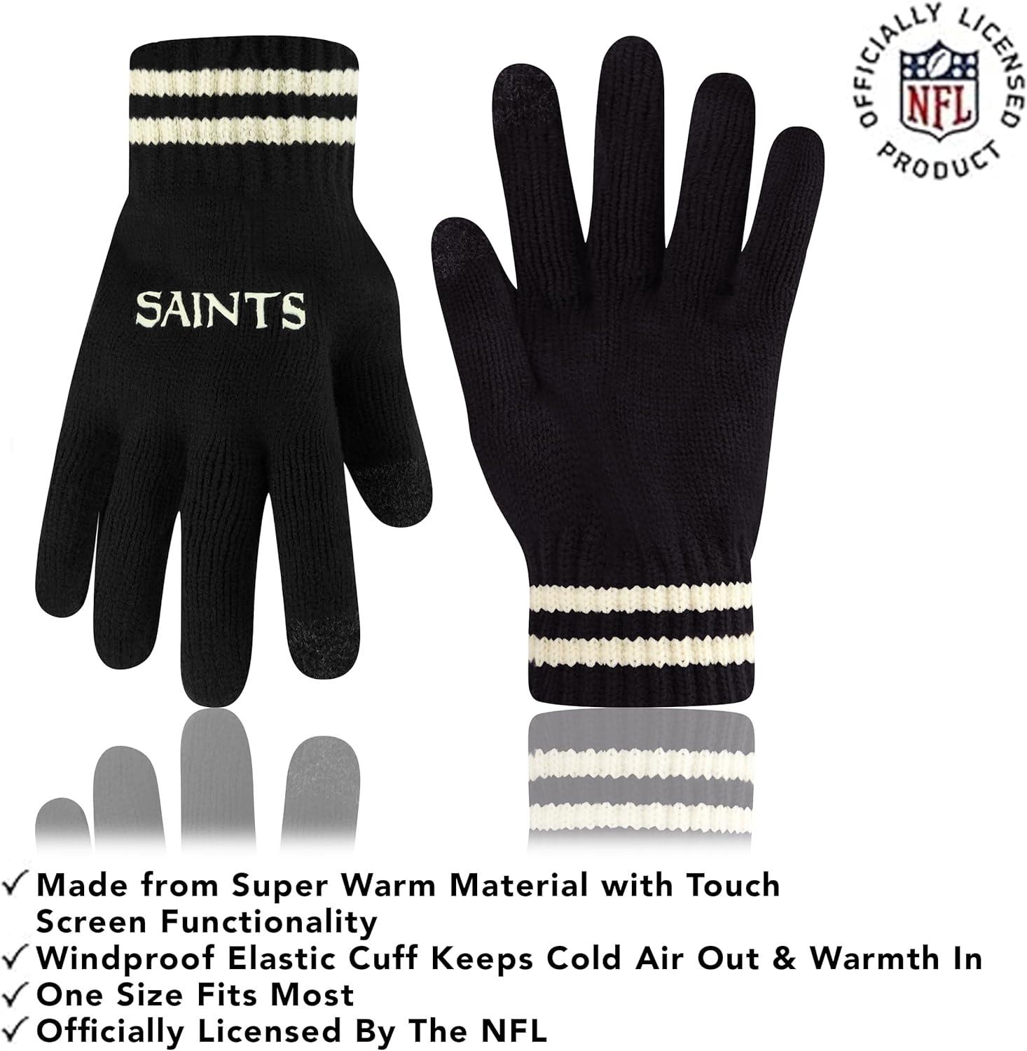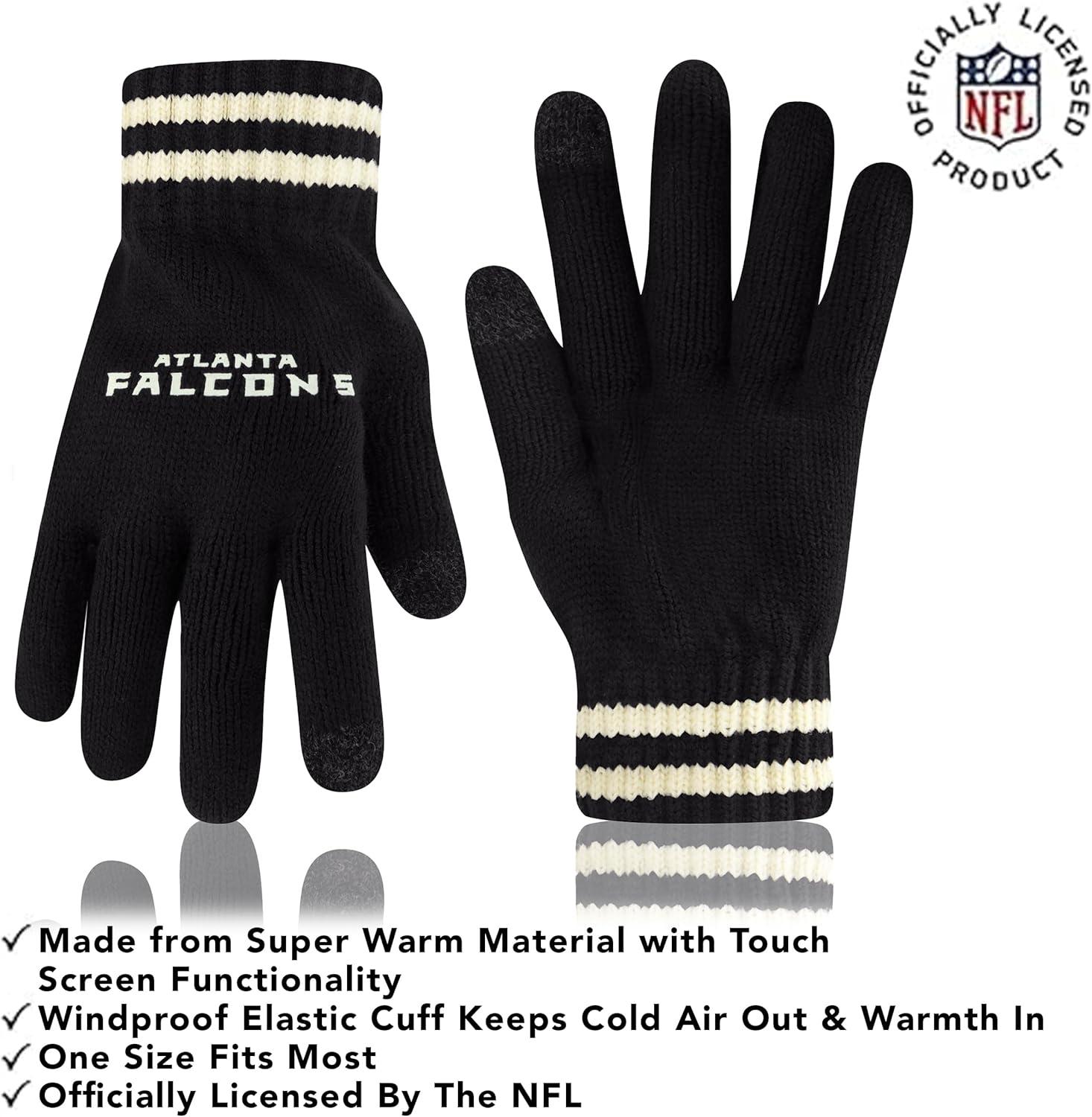 NFL COLLECTION: Officially Licensed By The NFL, Ultra Game NFL revives classic fan gear with innovative designs and fabric updates, appealing to all. SUPERIOR WARMTH: Soft material in your team's core colors keeps you warm, with an elastic cuff on gloves to keep snow and wind out. TOUCH-SCREEN FRIENDLY: Thumb and first finger on both gloves allow device use without removal. ADJUSTABLE FIT: Stretchy beanie fits most, staying secure and comfortable. STYLE AND DESIGN: High-quality graphics of your favorite NFL team in official colors adorn the hat and gloves.