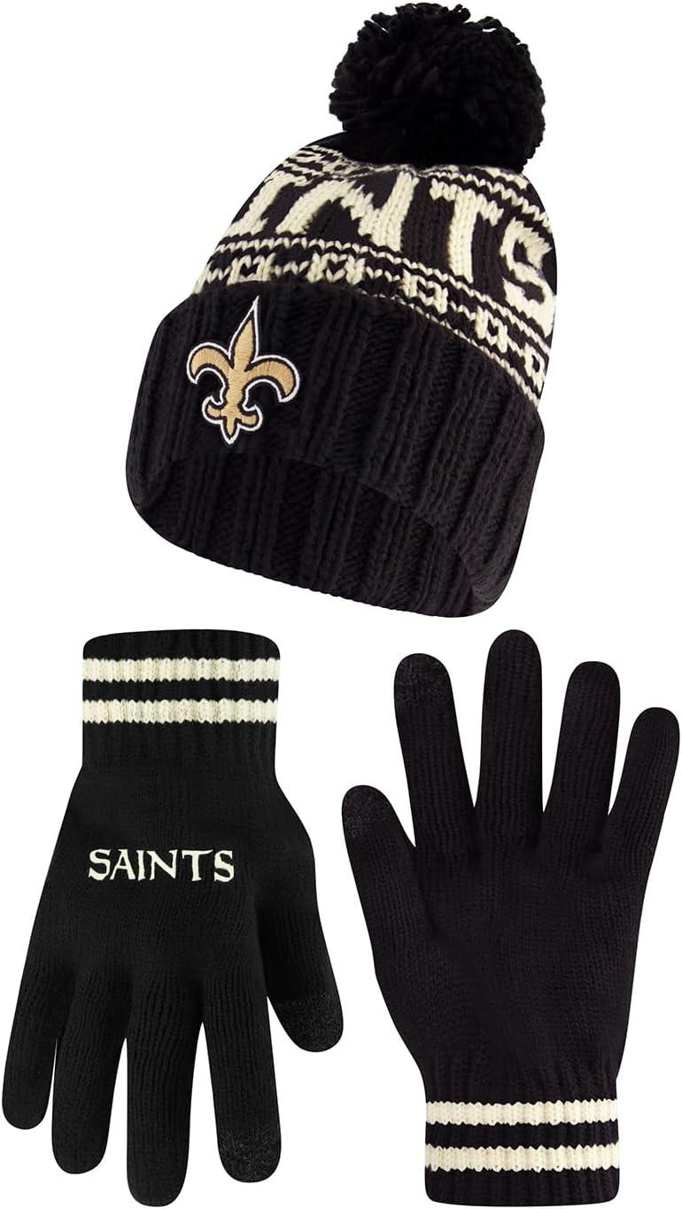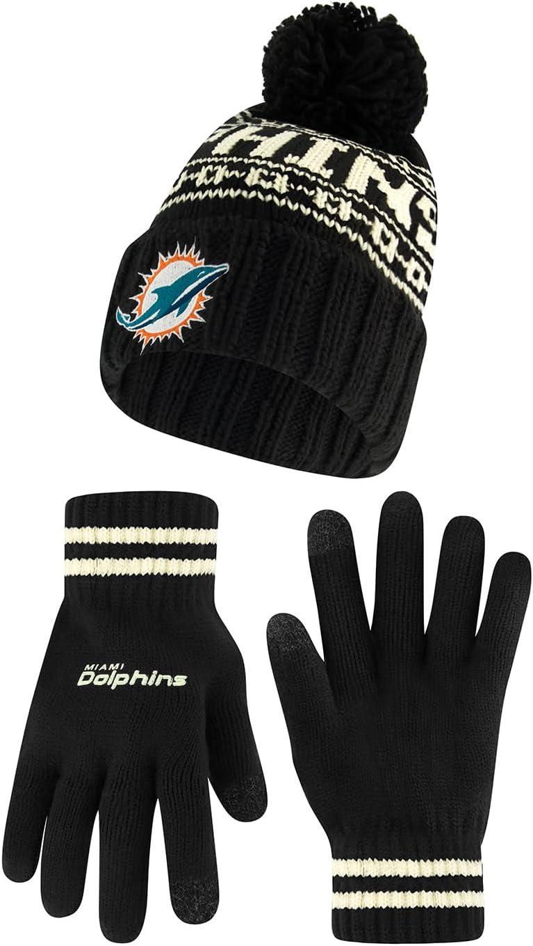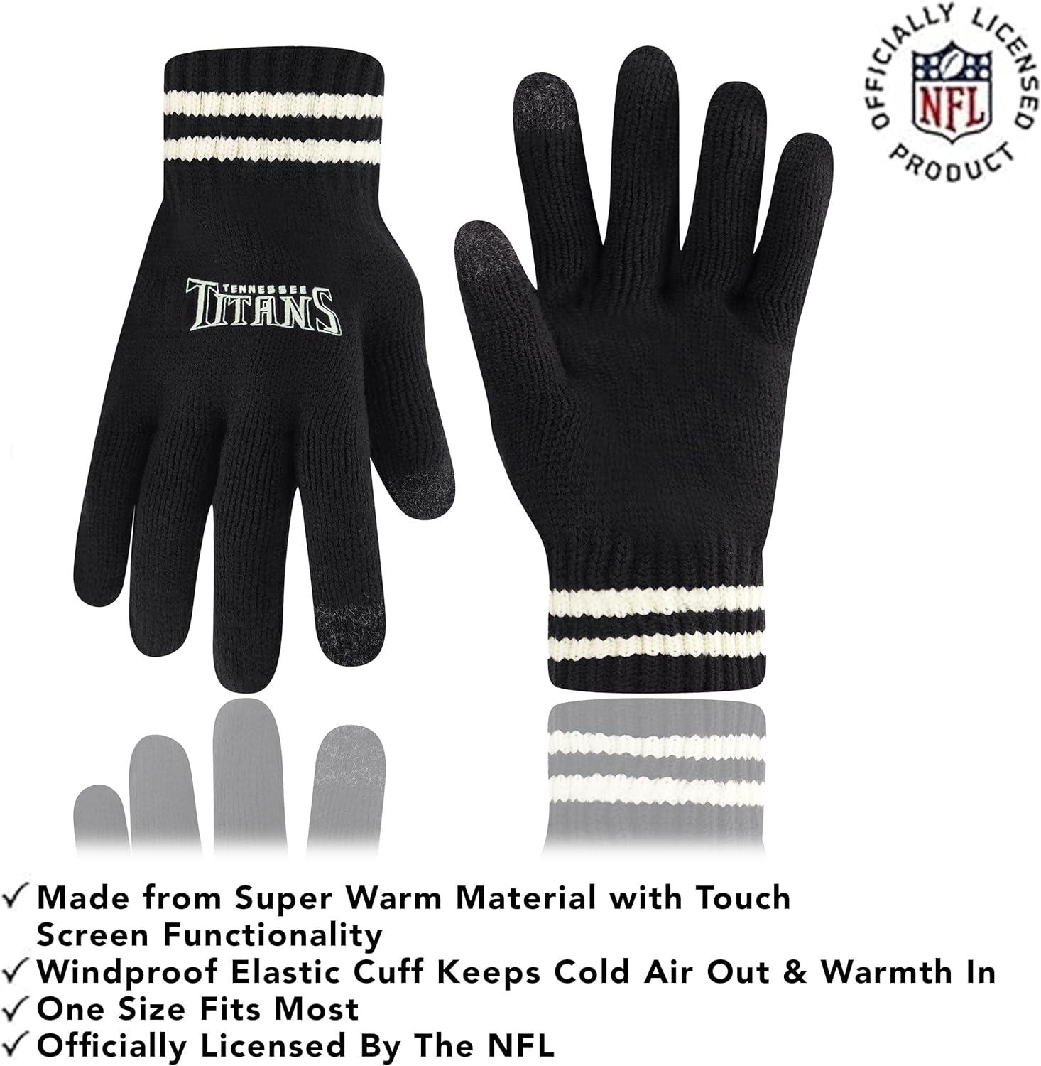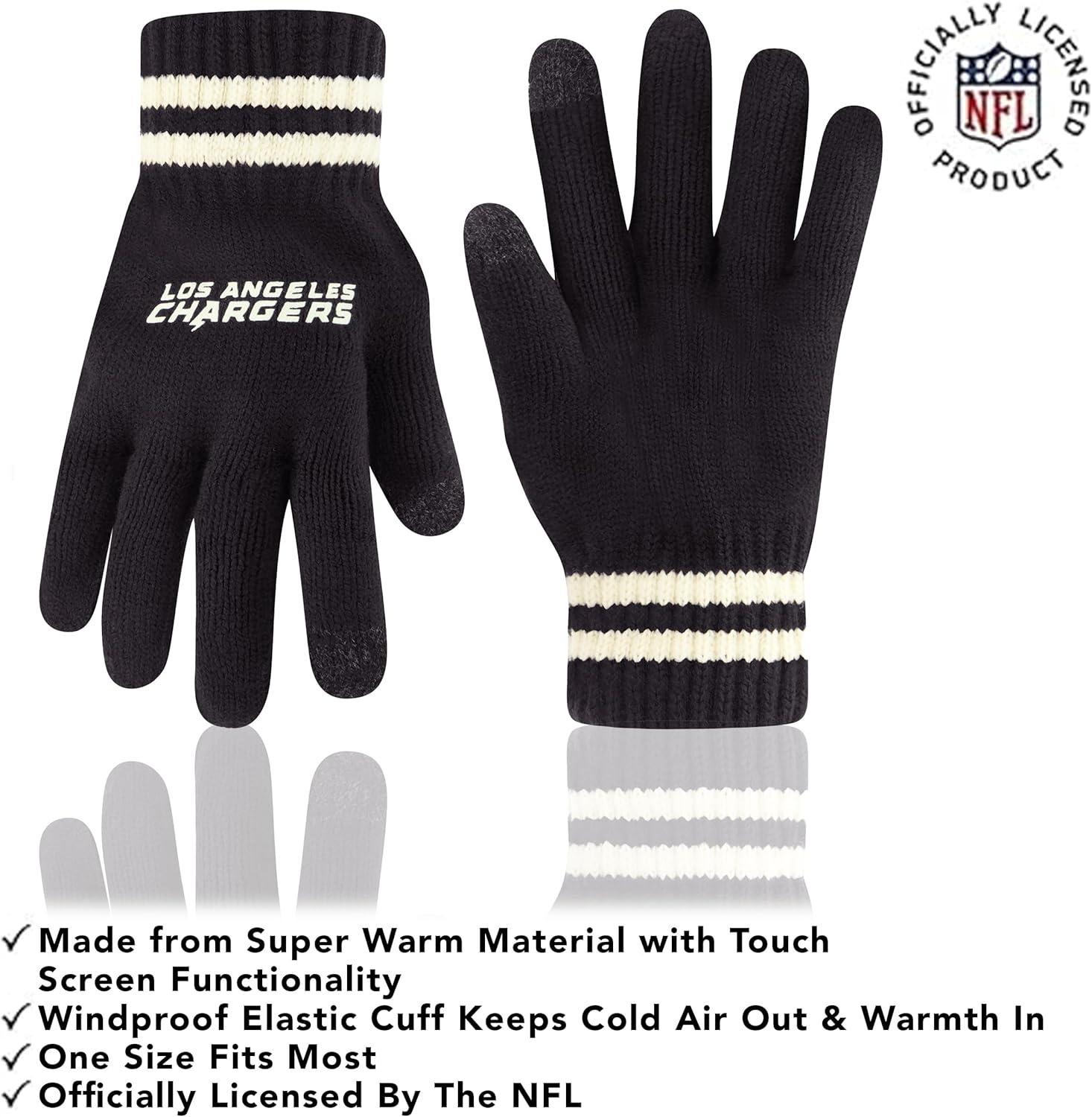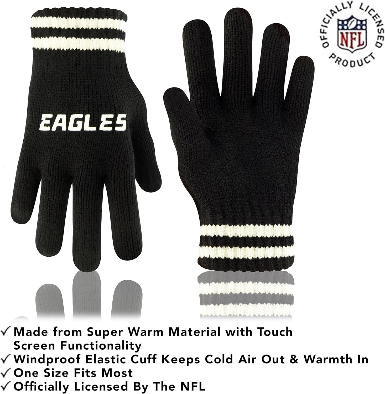 NFL COLLECTION: Officially Licensed By The NFL, Ultra Game NFL revives classic fan gear with innovative designs and fabric updates, appealing to all. SUPERIOR WARMTH: Soft material in your team's core colors keeps you warm, with an elastic cuff on gloves to keep snow and wind out. TOUCH-SCREEN FRIENDLY: Thumb and first finger on both gloves allow device use without removal. ADJUSTABLE FIT: Stretchy beanie fits most, staying secure and comfortable. STYLE AND DESIGN: High-quality graphics of your favorite NFL team in official colors adorn the hat and gloves.