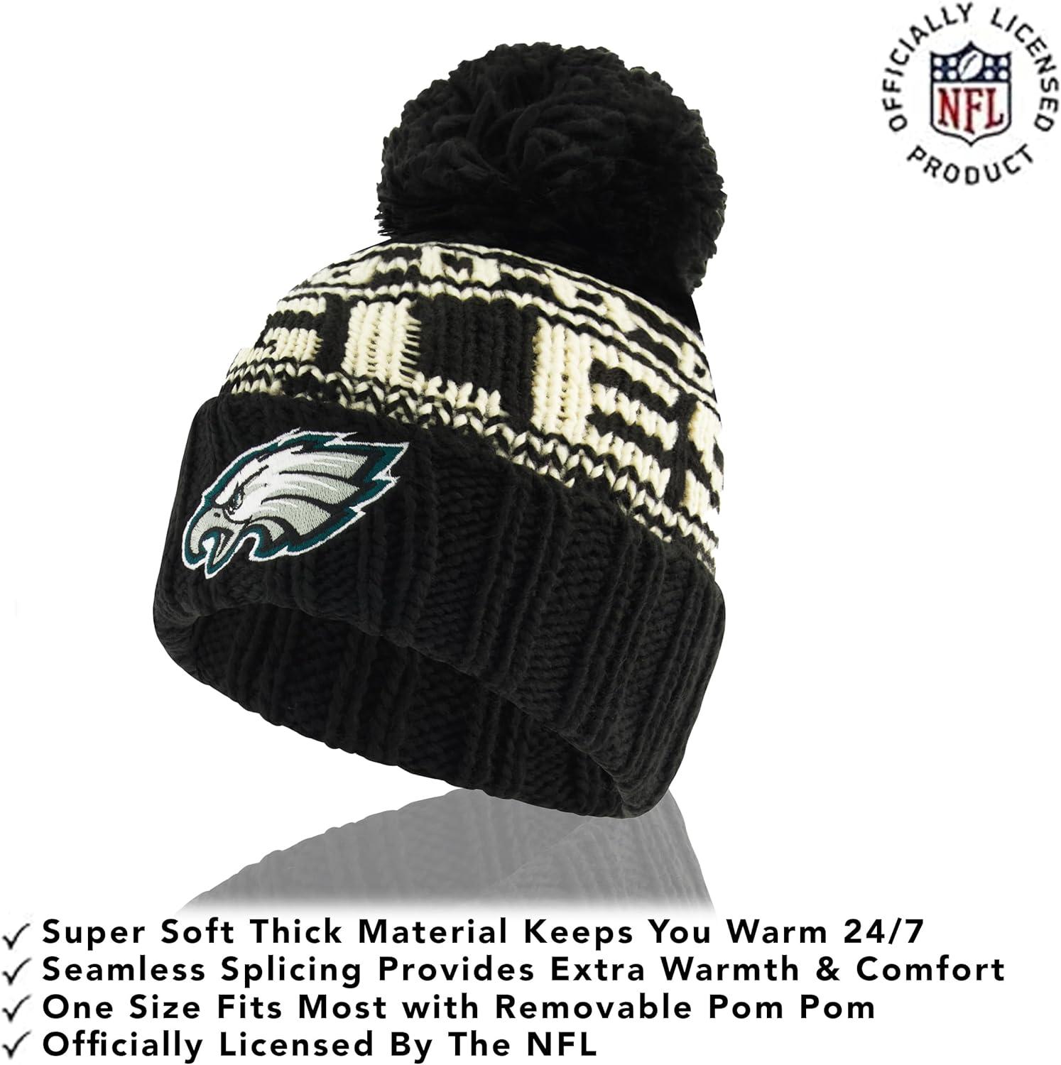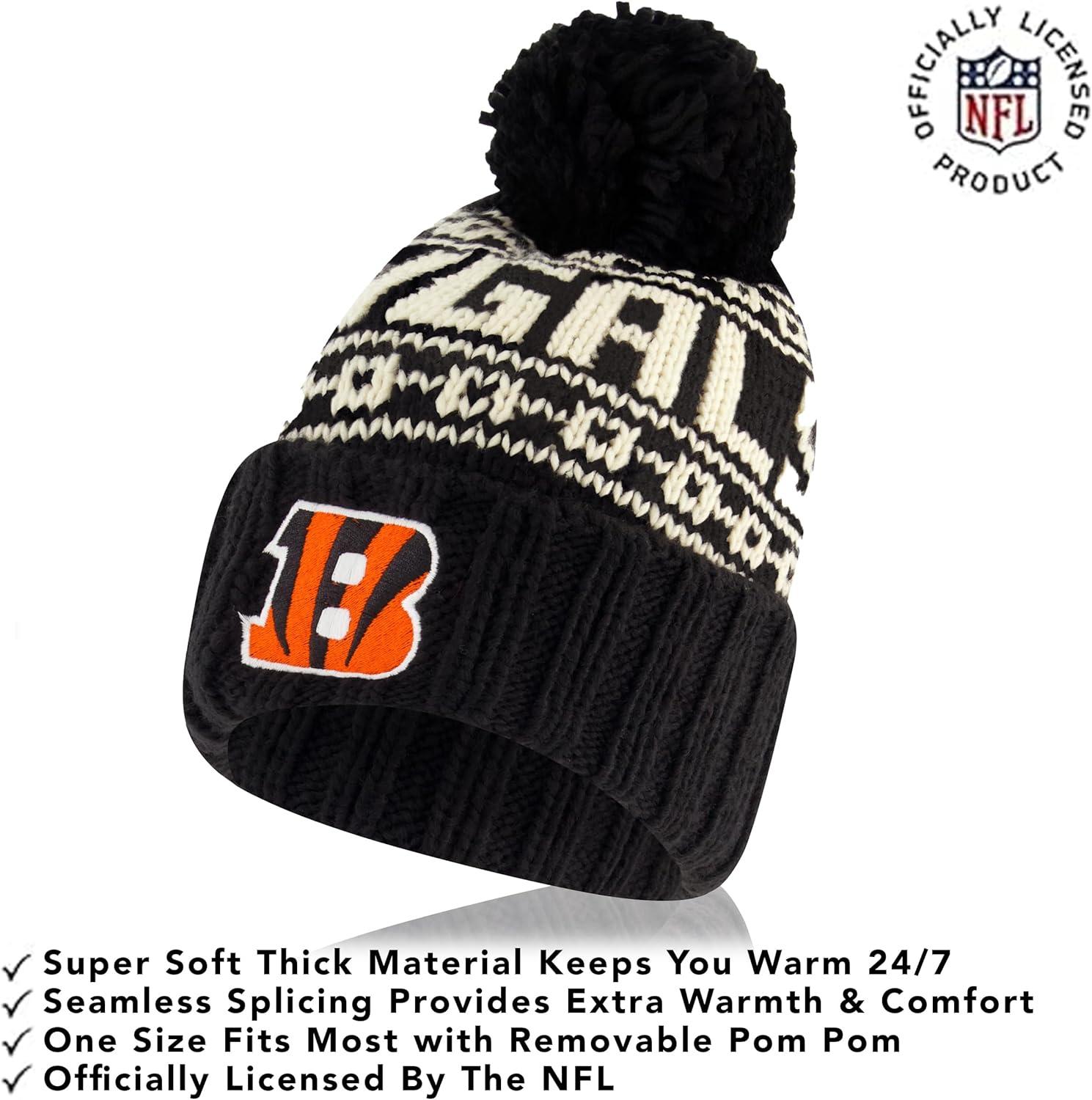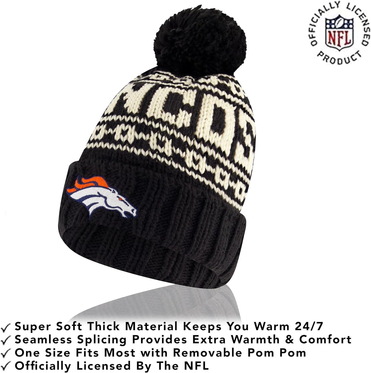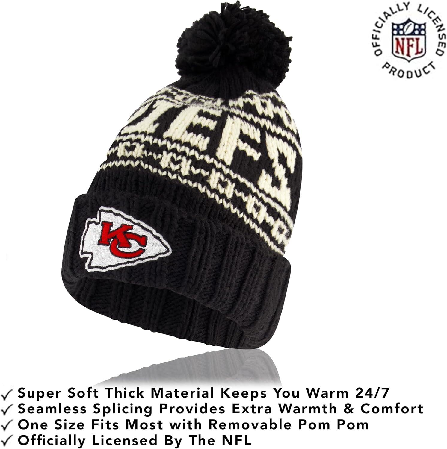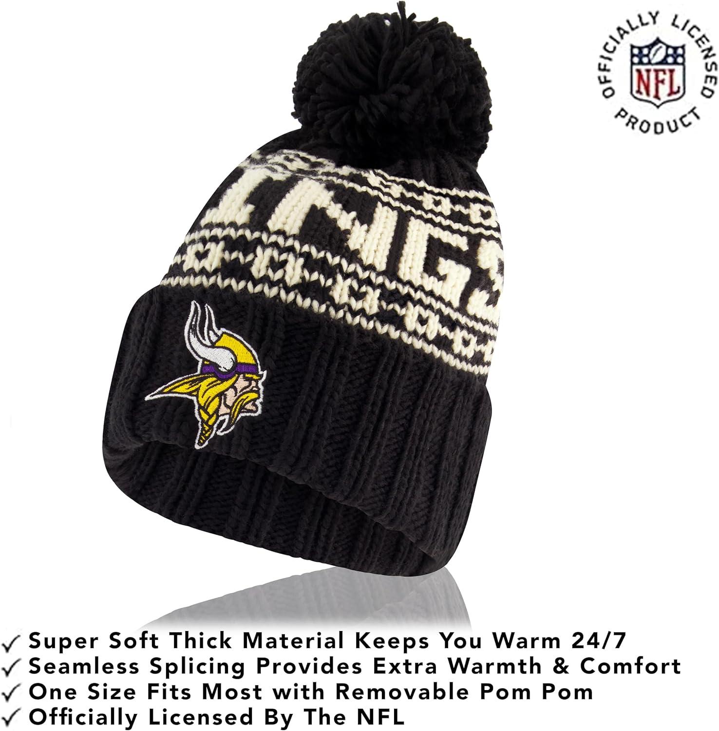 NFL COLLECTION: Officially Licensed By The NFL, Ultra Game NFL revives classic fan gear with innovative designs and fabric updates, appealing to all. SUPERIOR WARMTH: Soft material in your team's core colors keeps you warm, with an elastic cuff on gloves to keep snow and wind out. TOUCH-SCREEN FRIENDLY: Thumb and first finger on both gloves allow device use without removal. ADJUSTABLE FIT: Stretchy beanie fits most, staying secure and comfortable. STYLE AND DESIGN: High-quality graphics of your favorite NFL team in official colors adorn the hat and gloves.