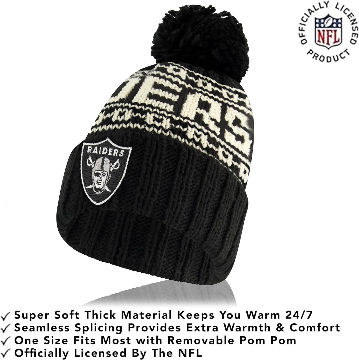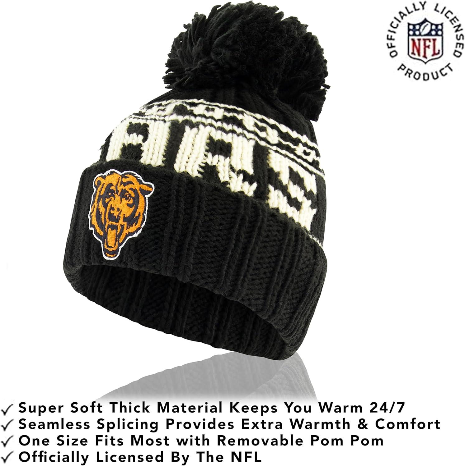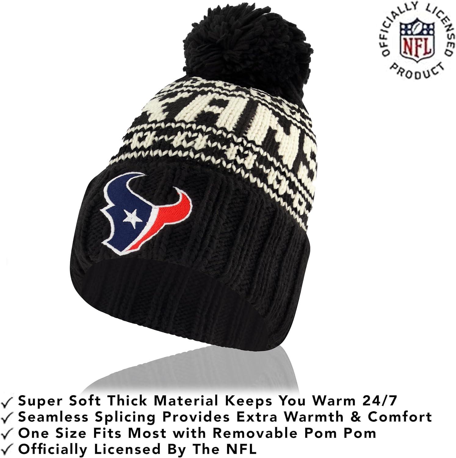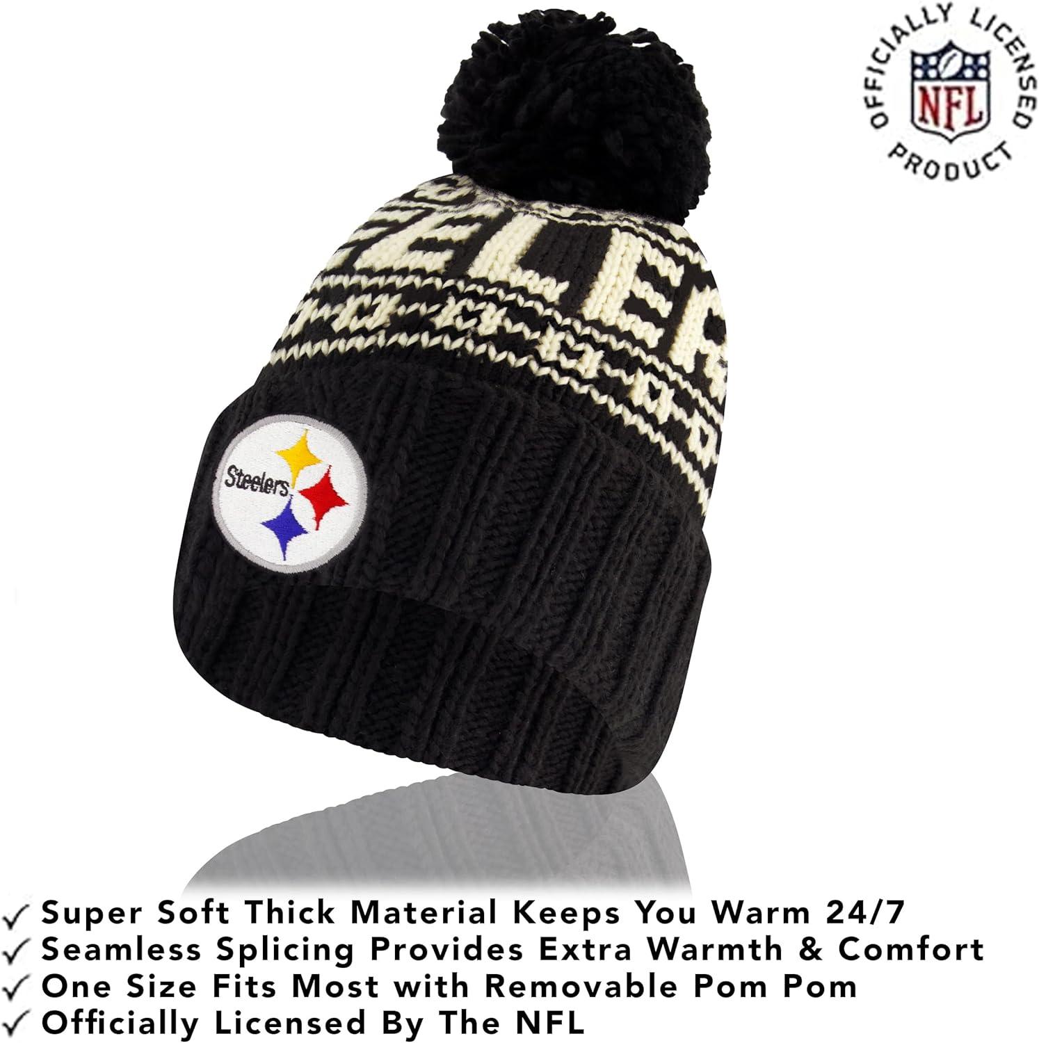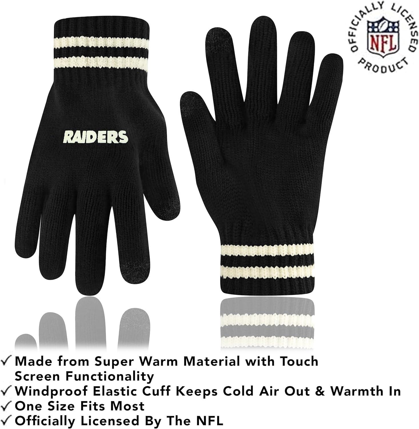 Ultra Game Adults NFL Official Super Soft Cable Knit Winter Beanie Knit Hat with Warm Touch Screen Gloves(Black)