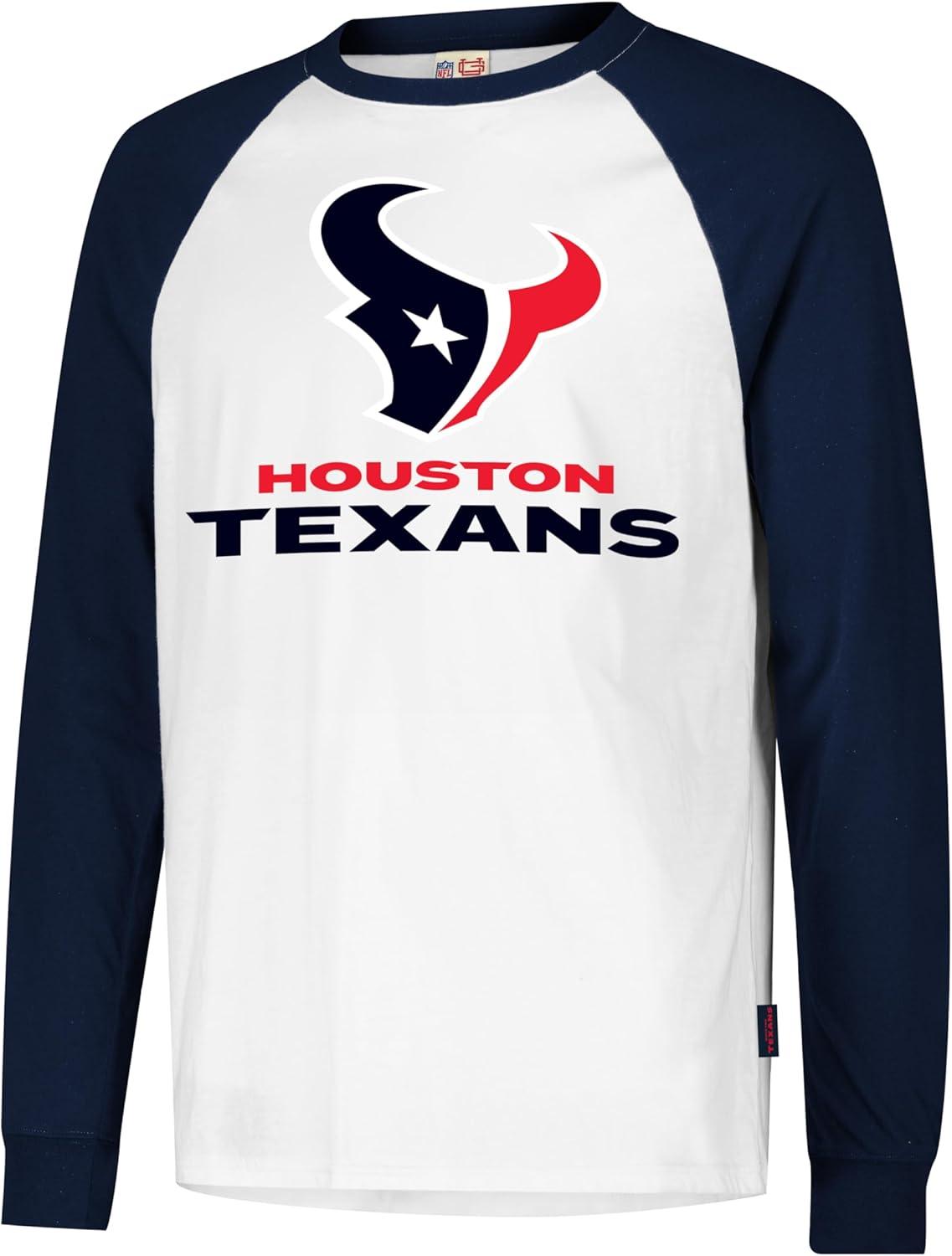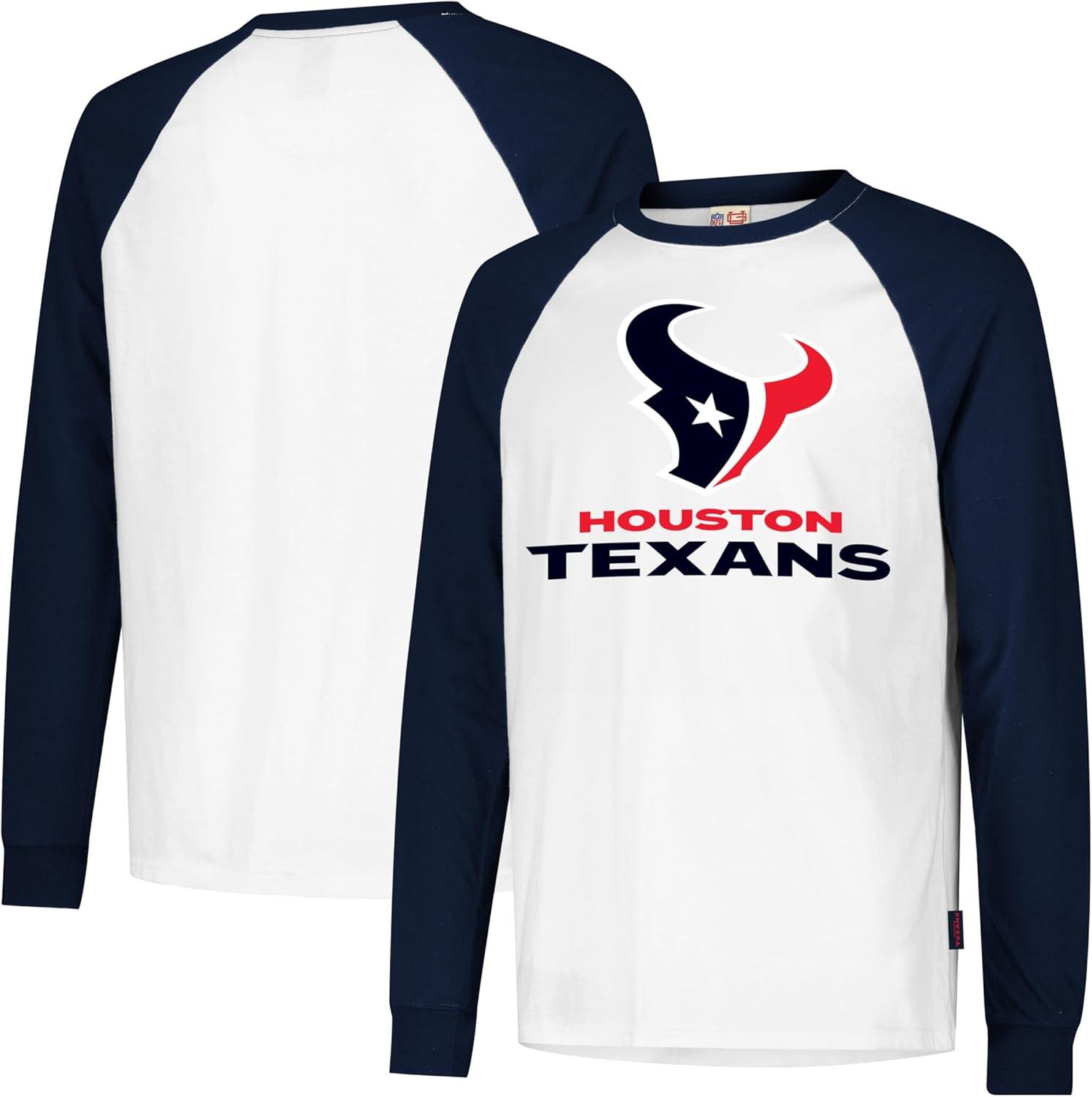 Description COMFORTABLE FIT: Athletic fit, rib knit collar and crew neck provide added comfort for all activities. Sizing of this shirt is designed for a slim/athletic fit. The model shown is 5'11″ with a slim/athletic build wearing a size medium. Size chart below. STYLE AND DESIGN: This raglan style long sleeve baseball tee features a white body and 3/4 stripe sleeves in team colors. Perfect shirt to wear on game day or any day of week. Designed to sync up effortlessly with your everyday style. For fans, by fans. GRAPHIC DETAILS: High quality screen print graphics of your favorite NFL team in official team colors. Perfect for running, jogging, sports, exercise, lounging around the house, or everyday use. Available in all your favorite colors and teams. (S to XL) MATERIAL AND FABRIC: Lightweight cotton and polyester blend gives this shirt a soft and comfortable feel. Made from 60% Cotton and 40% Polyester.