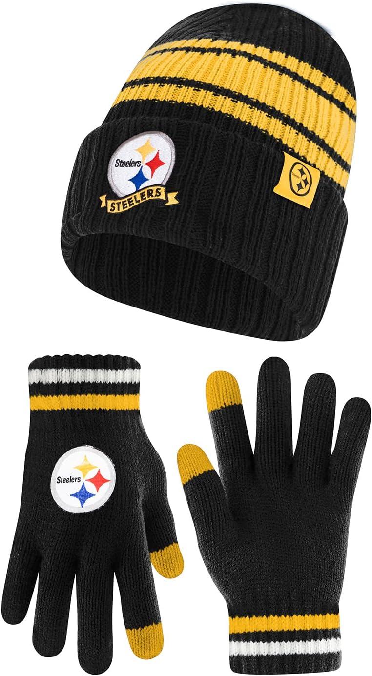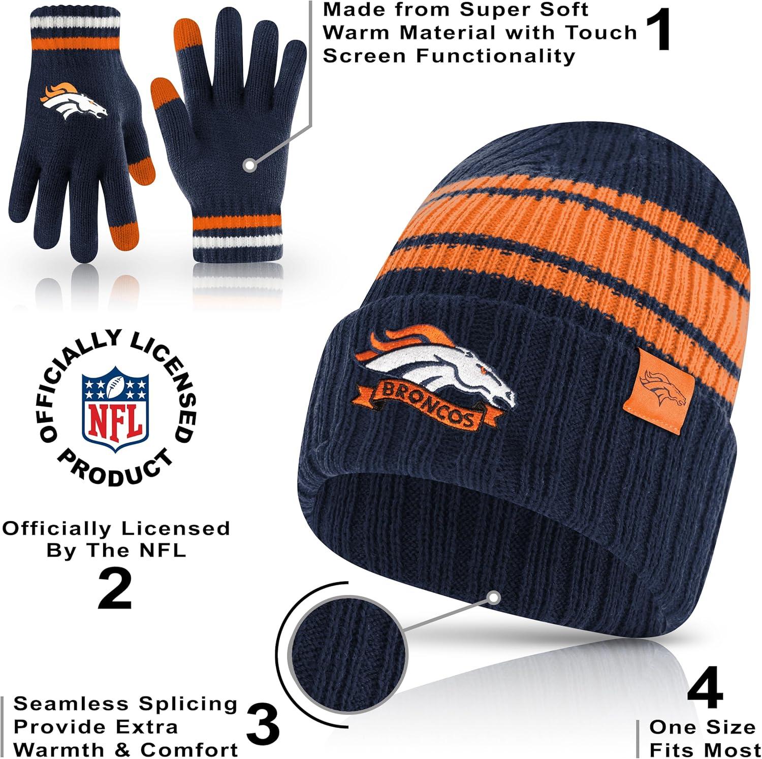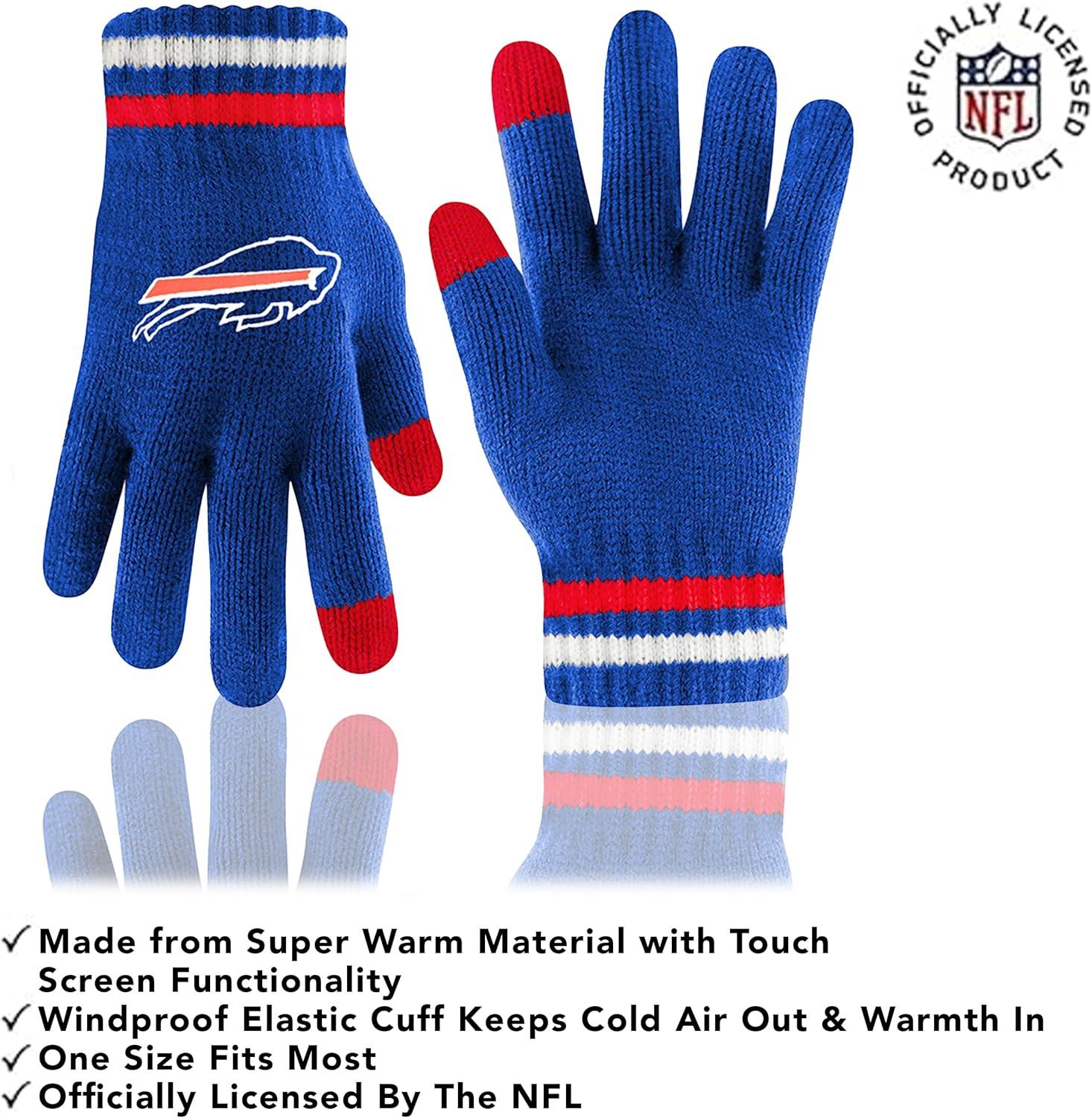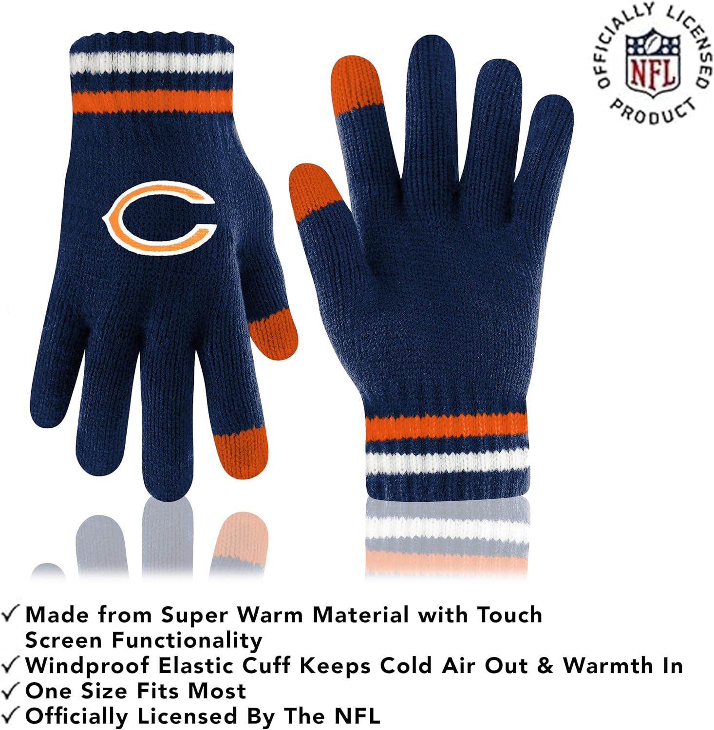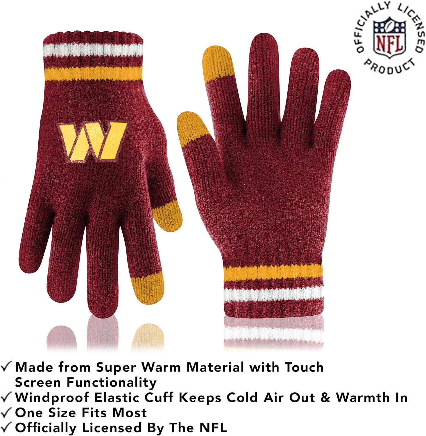 Ultra Game Adults NFL Official Super Soft Team Stripe Winter Beanie Knit Hat with Extra Warm Touch Screen Gloves(Team Color)