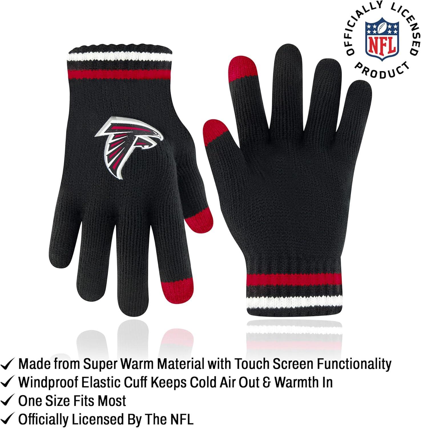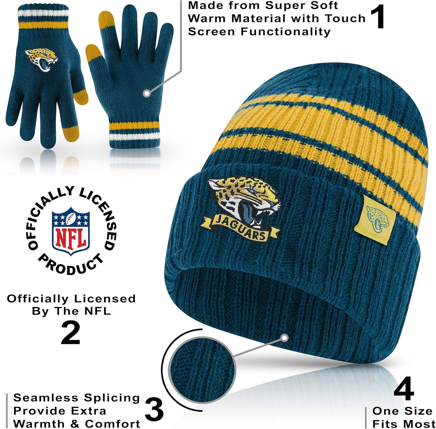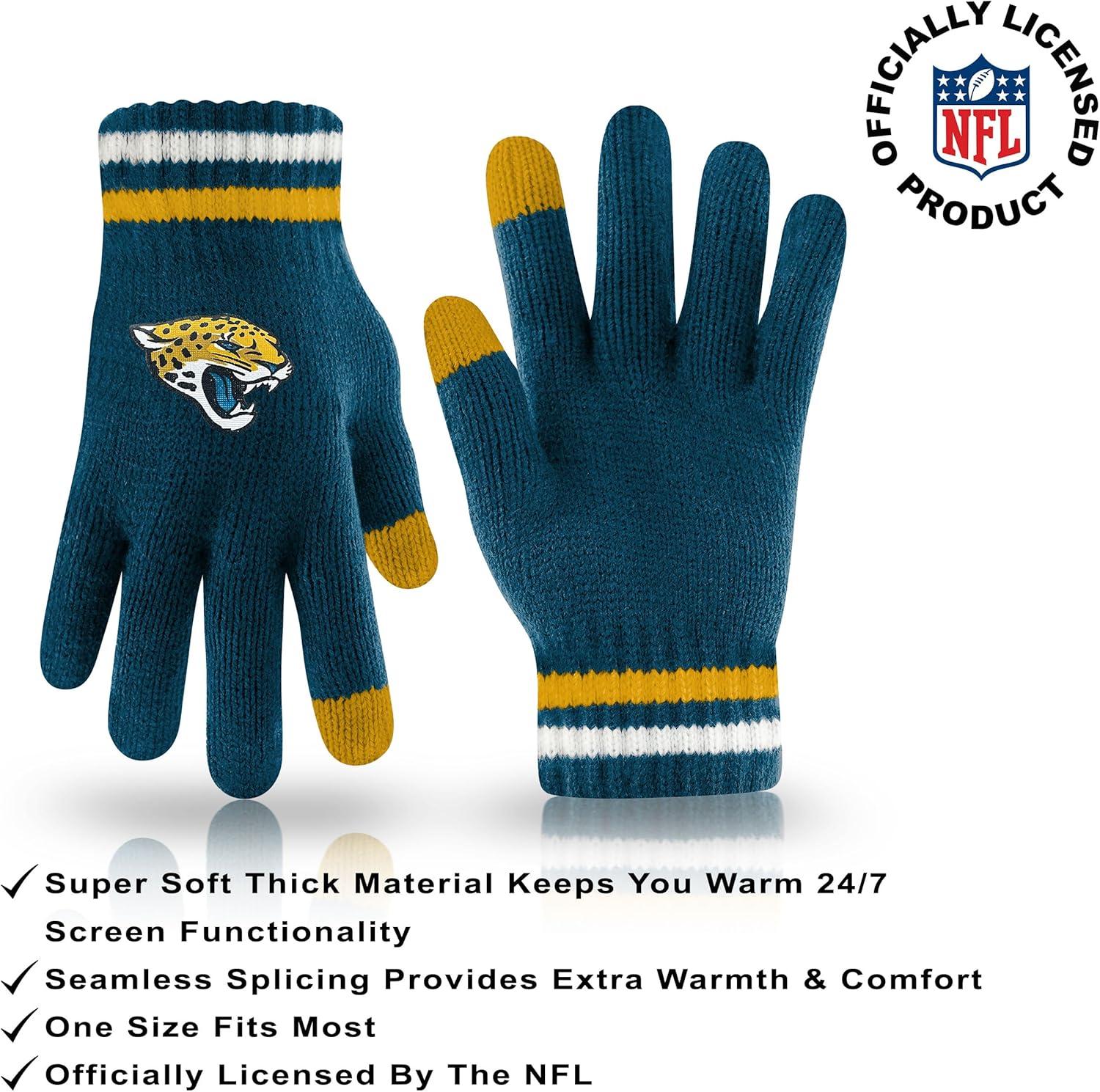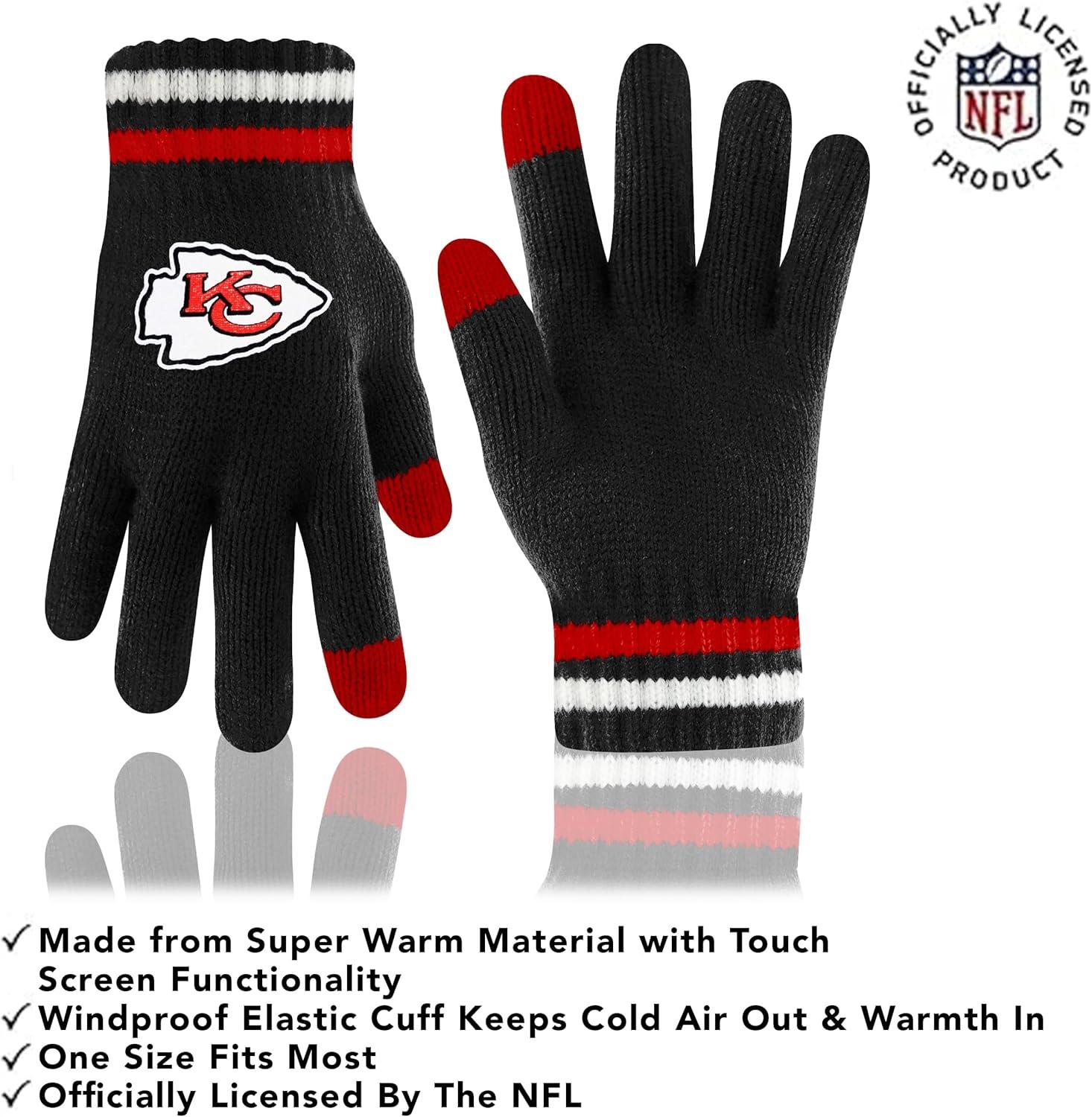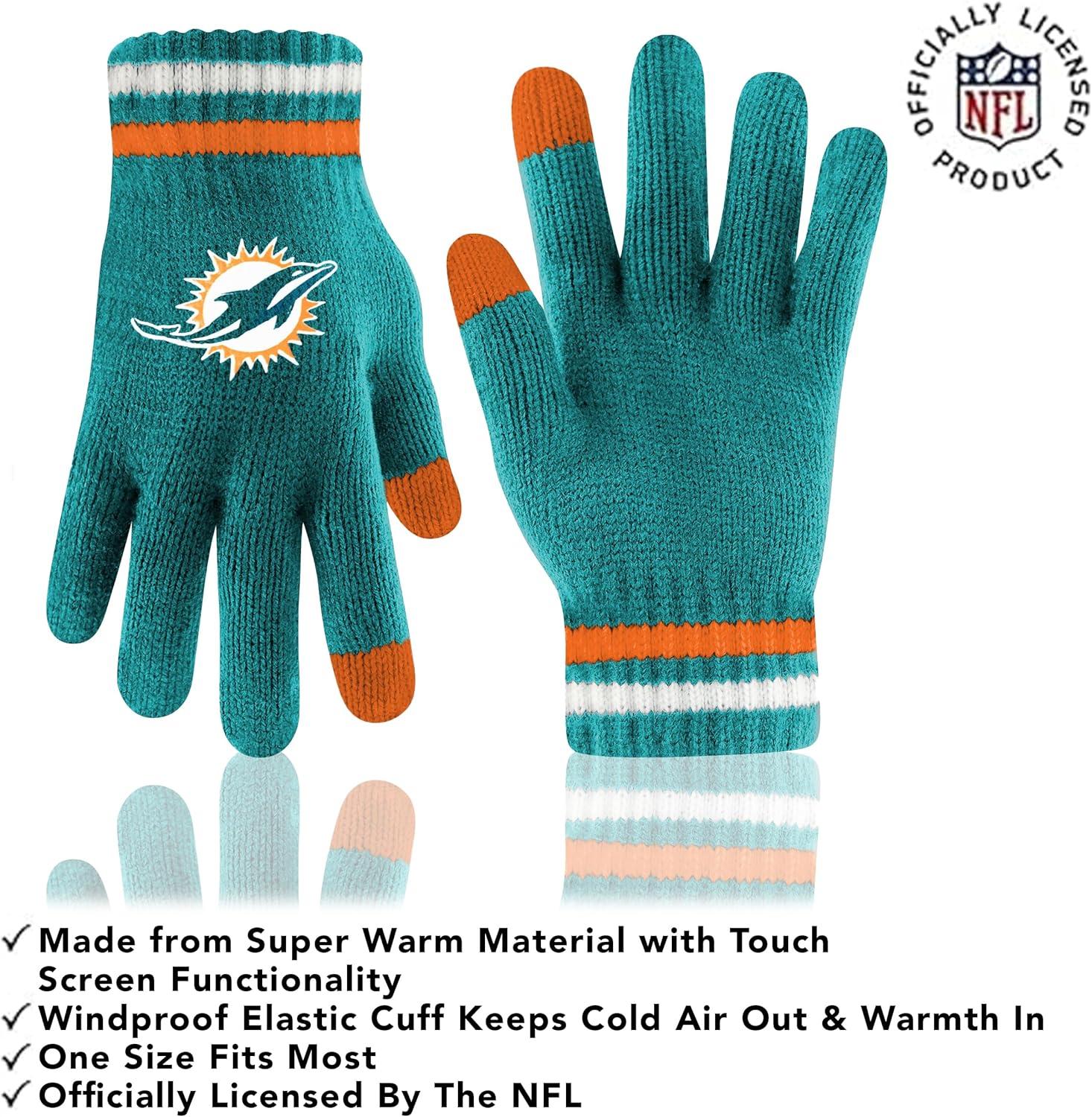 Ultra Game Adults NFL Official Super Soft Team Stripe Winter Beanie Knit Hat with Extra Warm Touch Screen Gloves(Team Color)