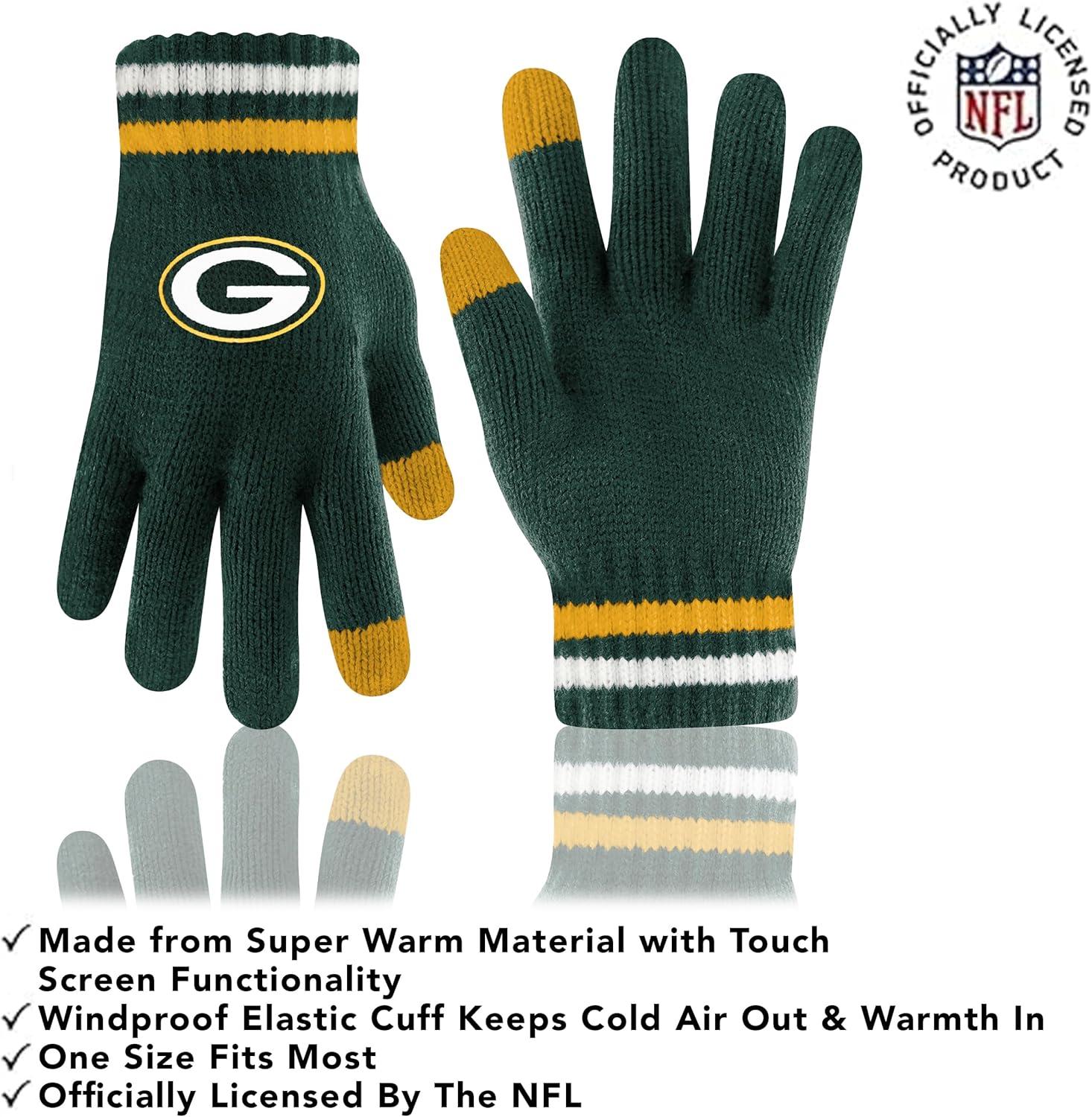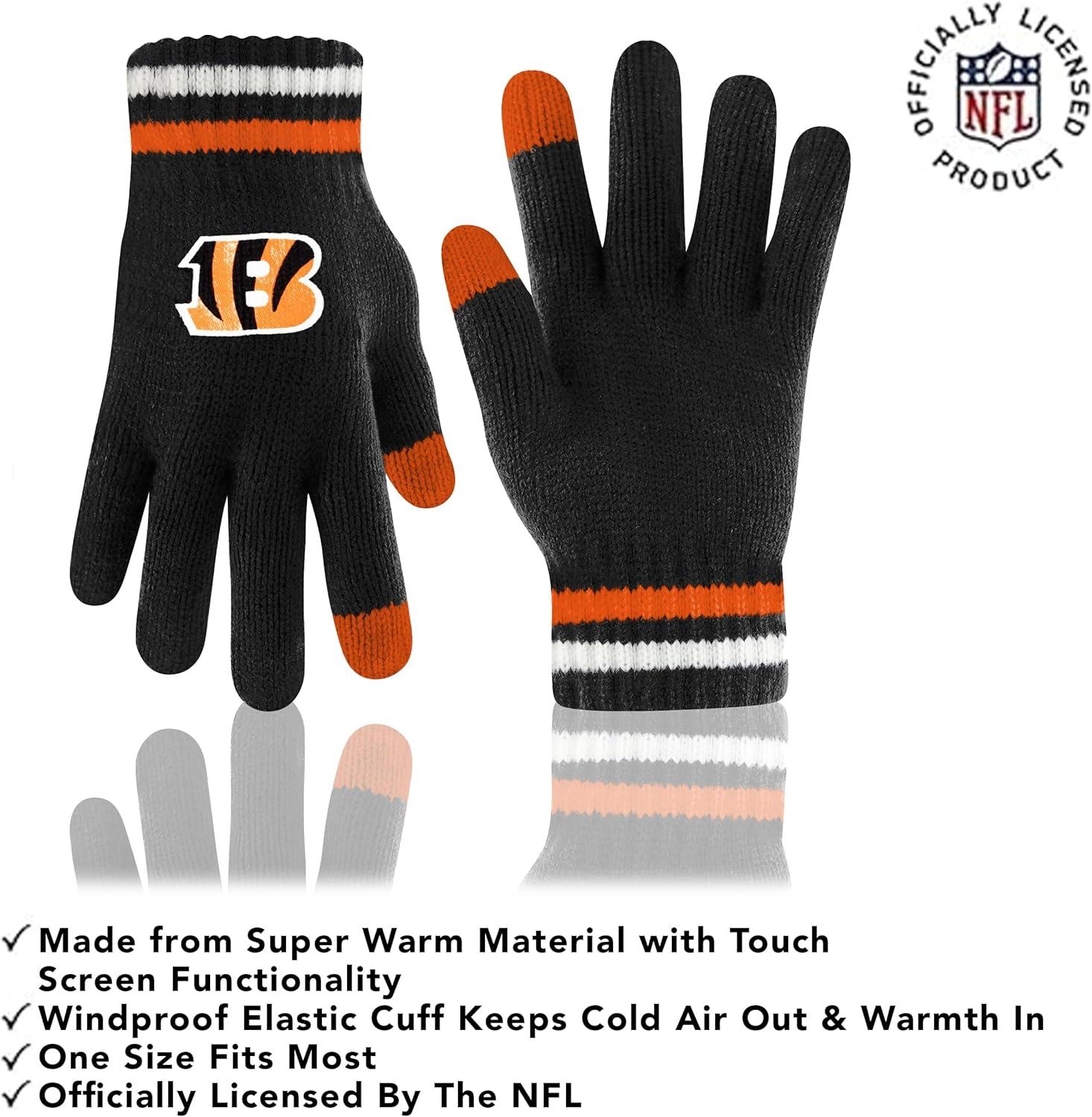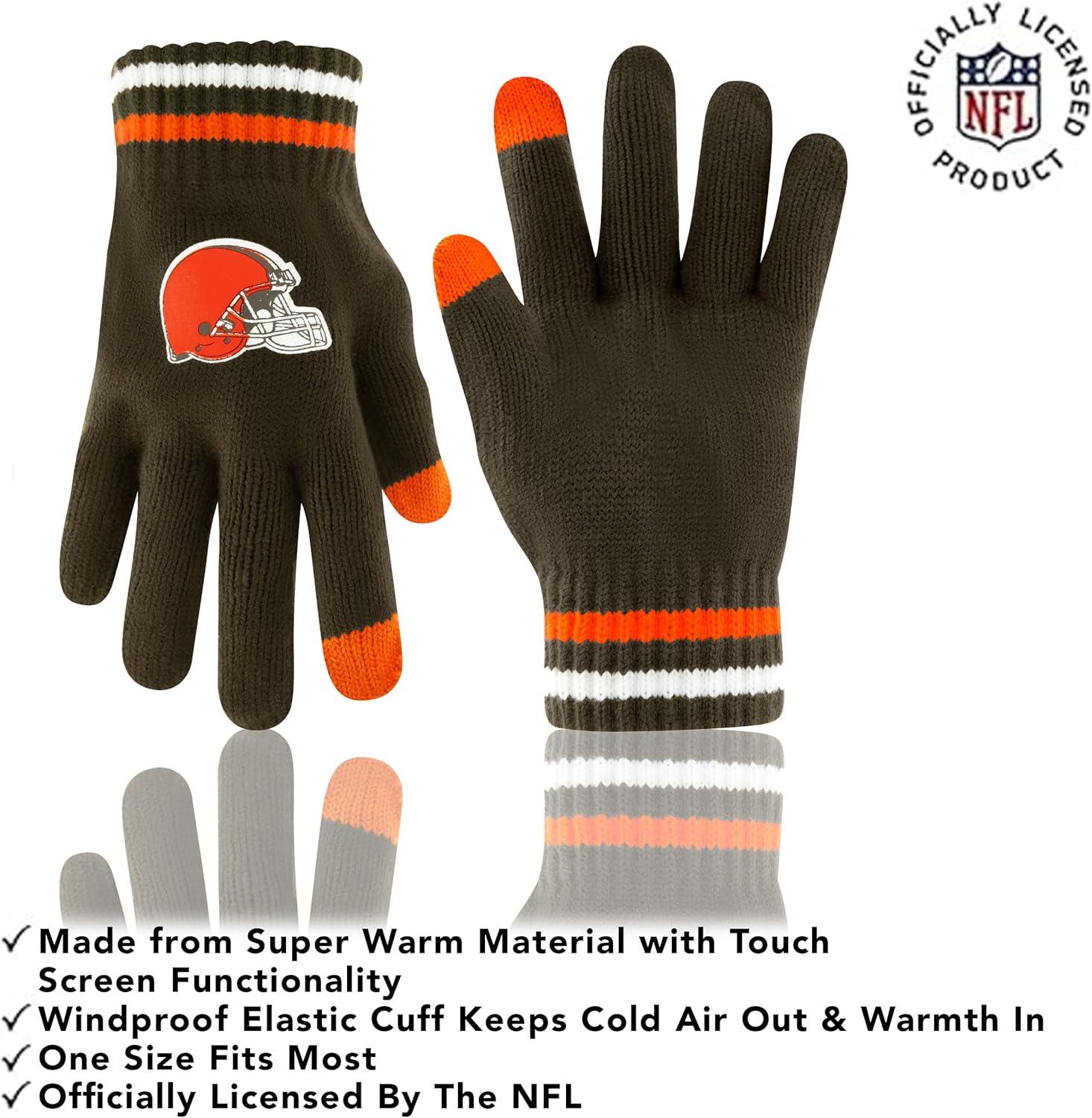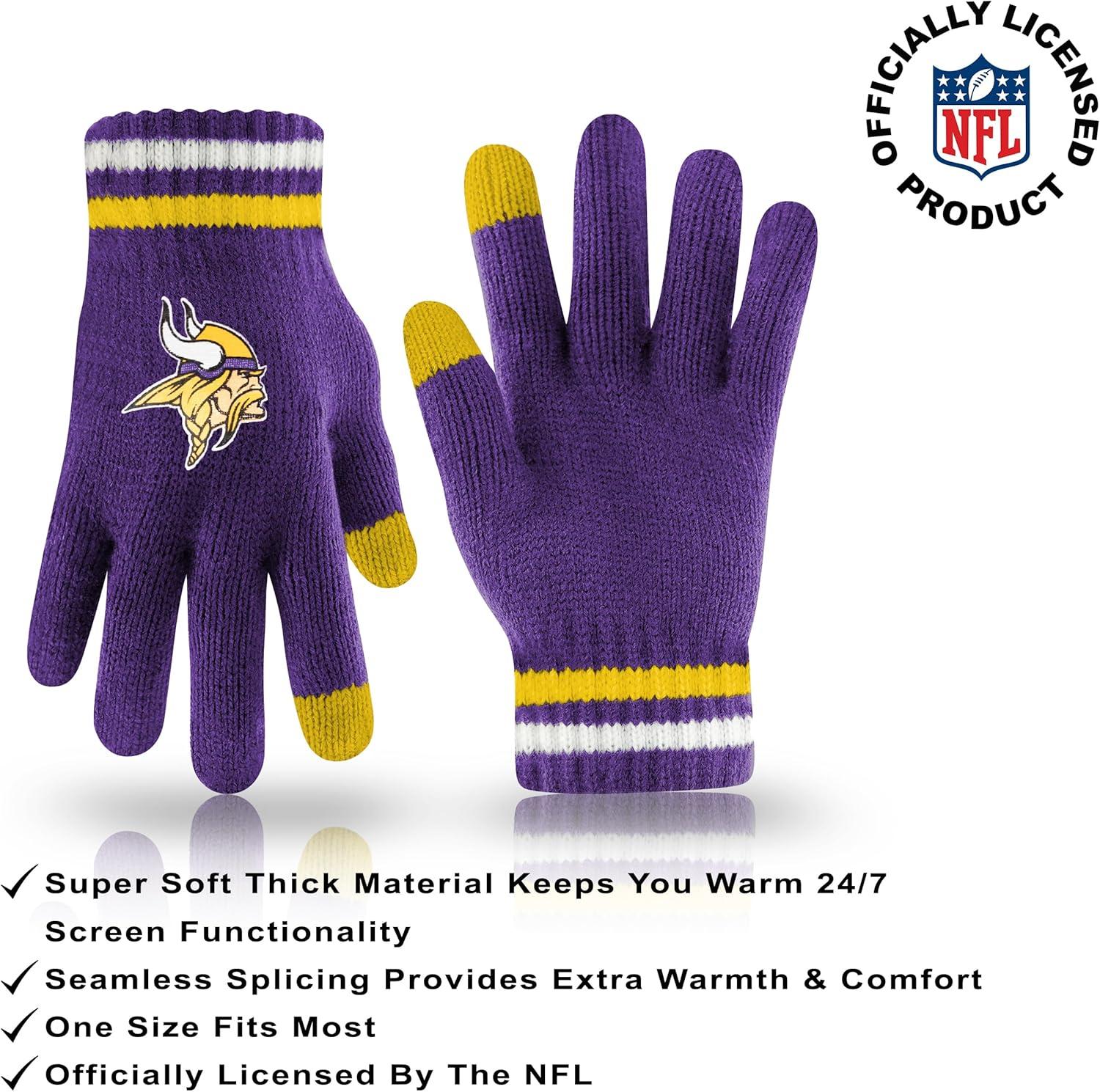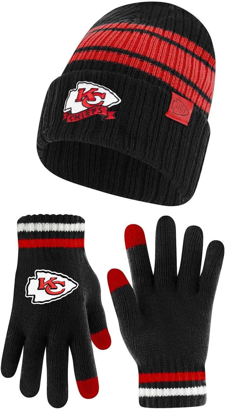 Ultra Game Adults NFL Official Super Soft Team Stripe Winter Beanie Knit Hat with Extra Warm Touch Screen Gloves(Team Color)