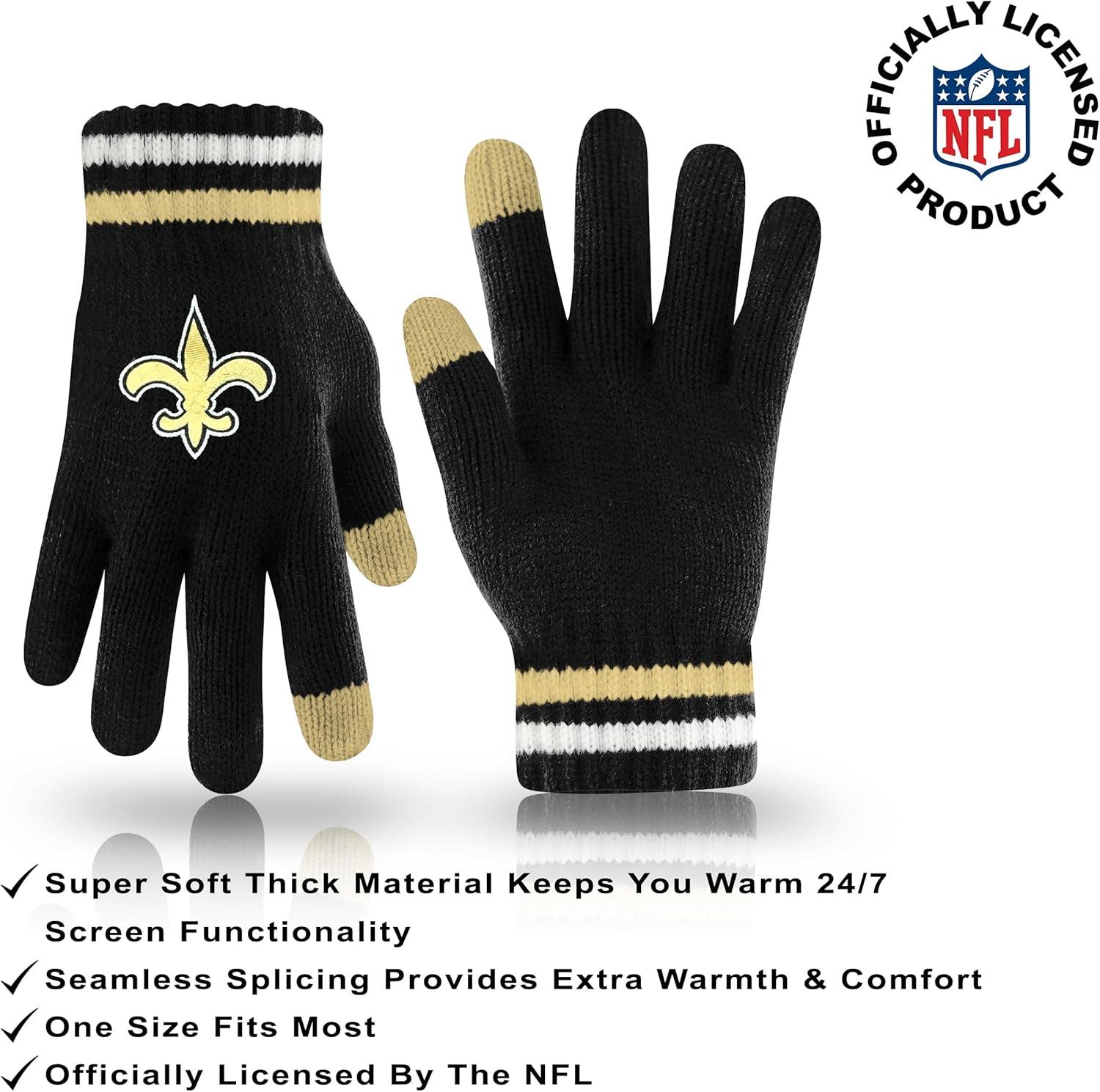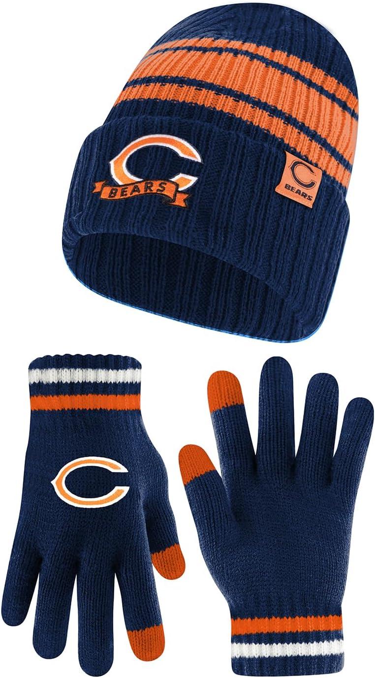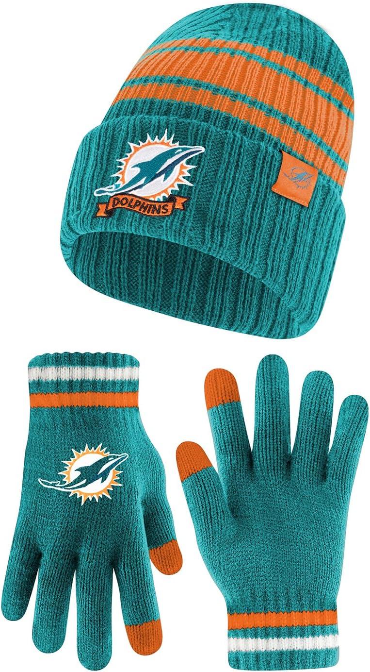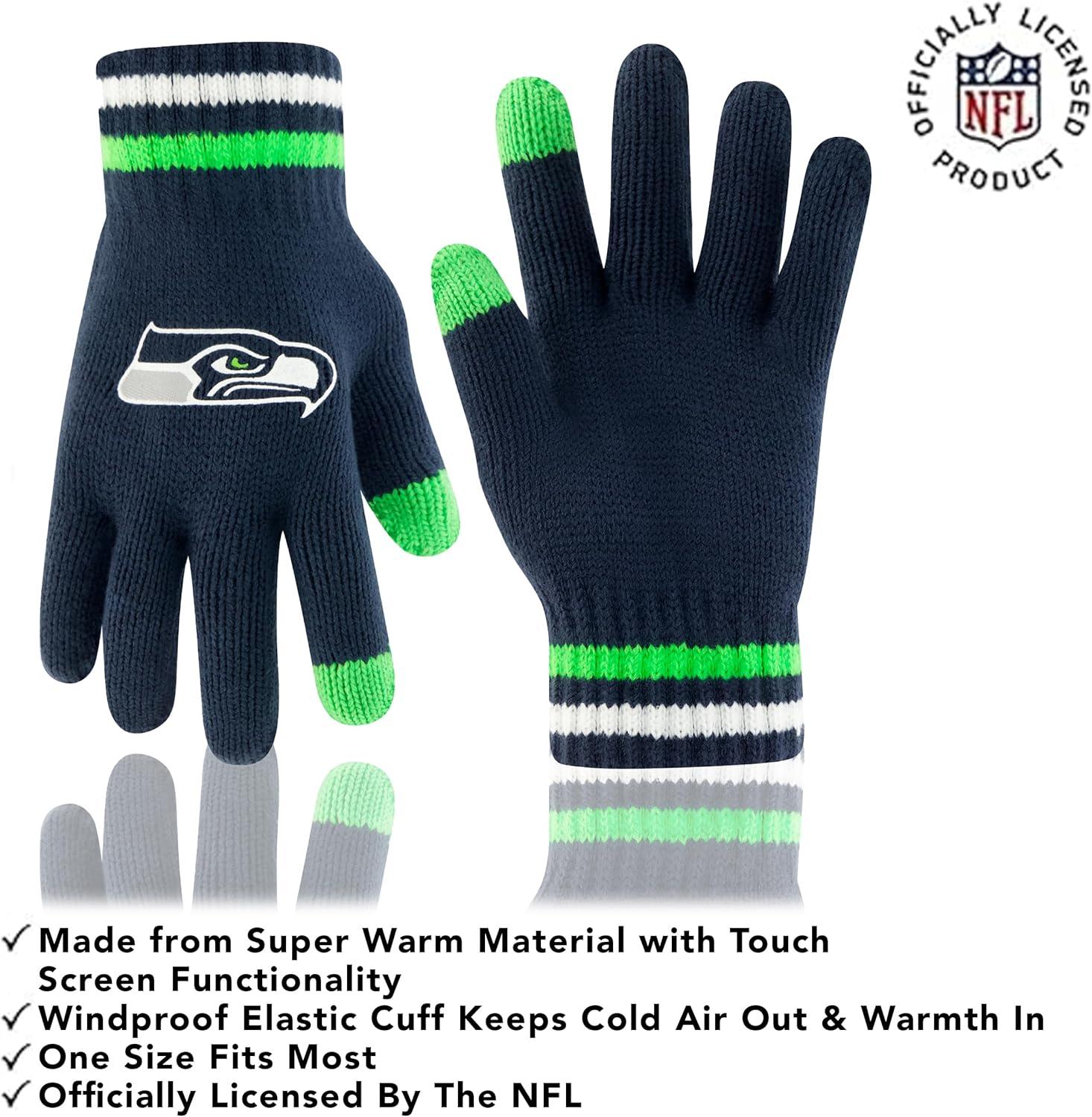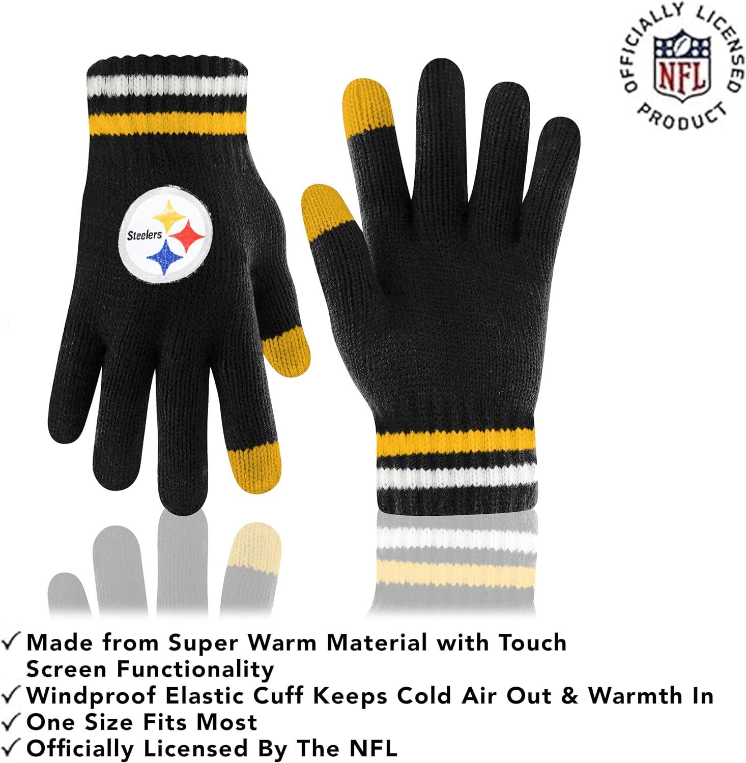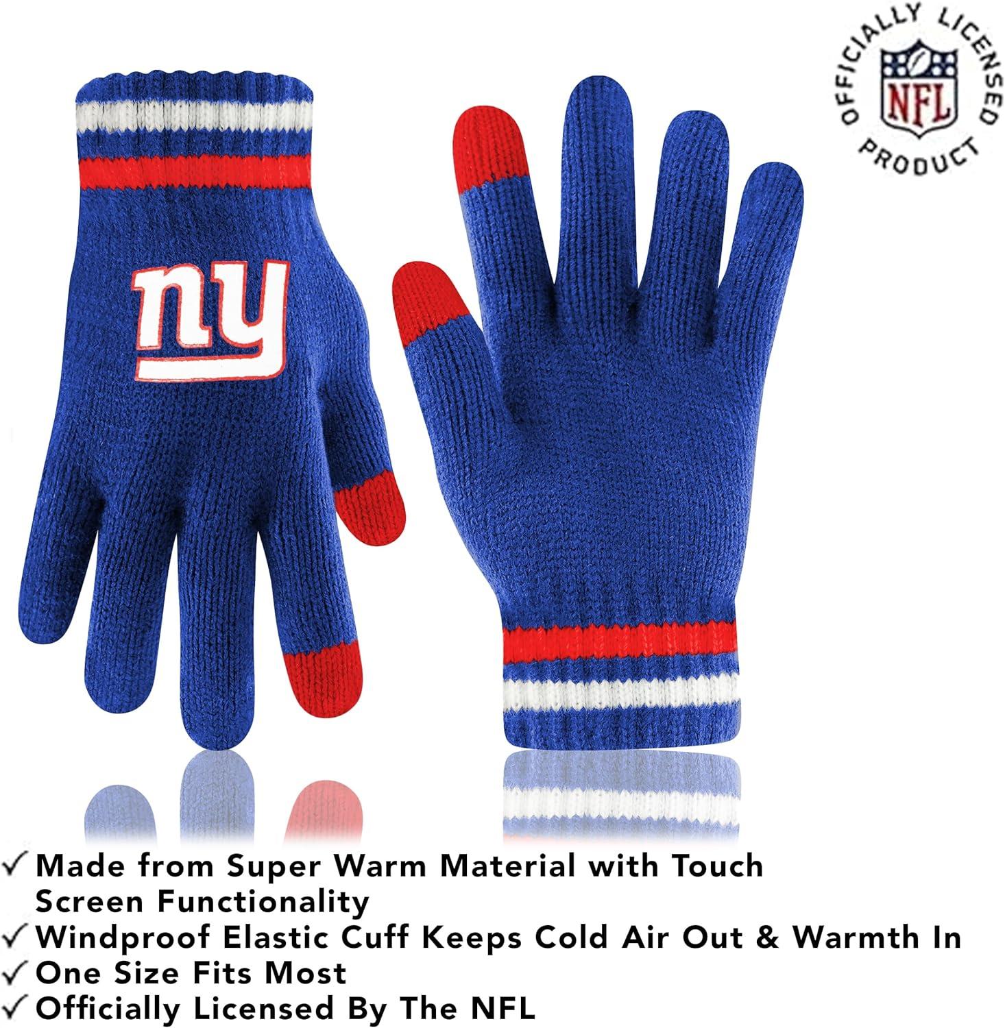 Ultra Game Adults NFL Official Super Soft Team Stripe Winter Beanie Knit Hat with Extra Warm Touch Screen Gloves(Team Color)