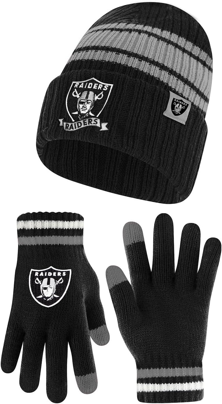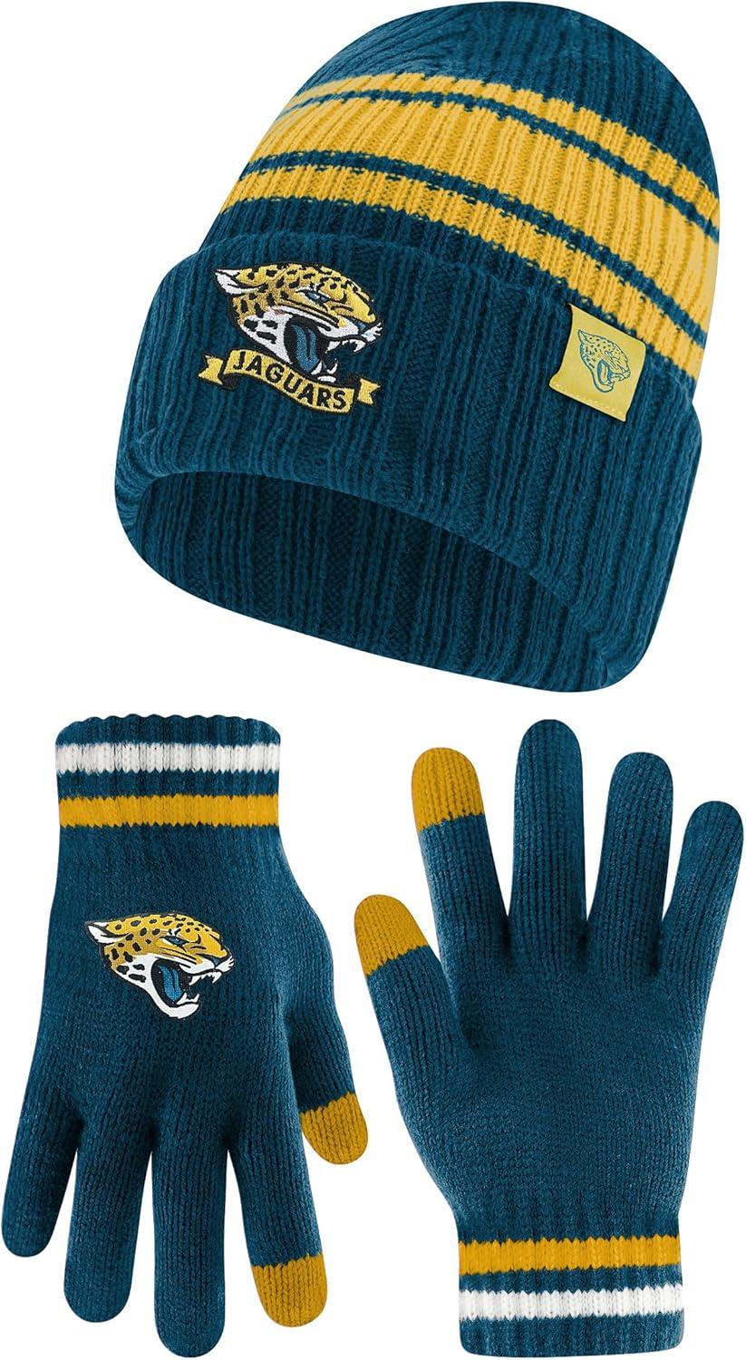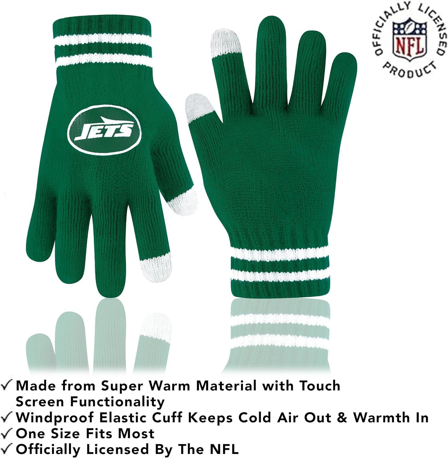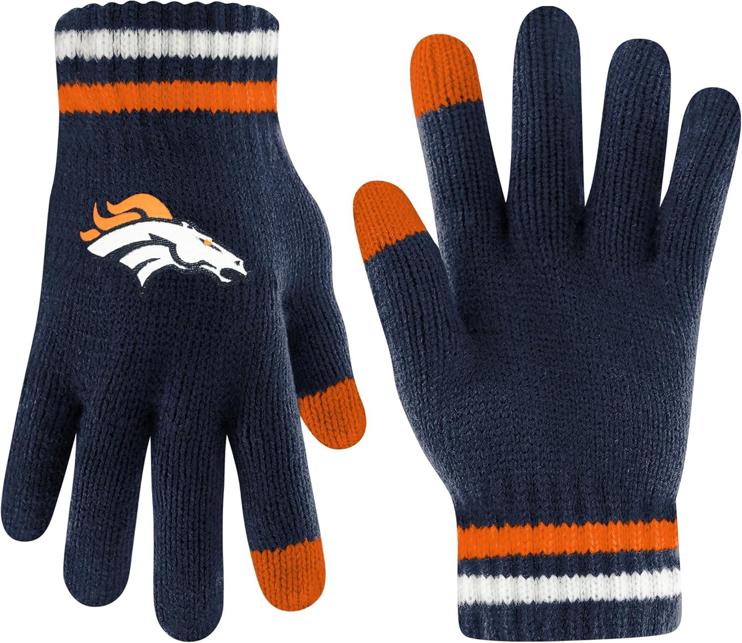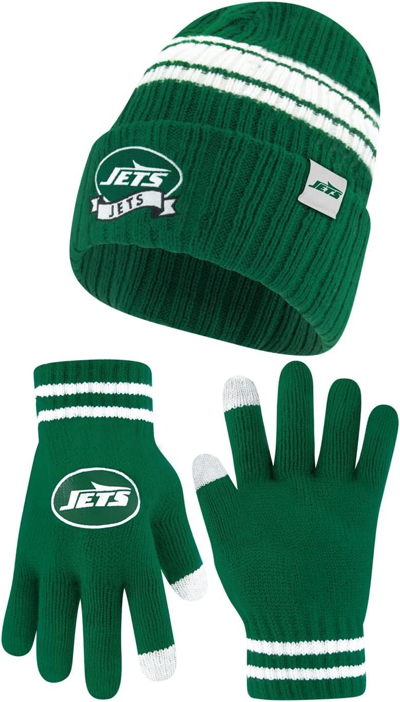 Ultra Game Adults NFL Official Super Soft Team Stripe Winter Beanie Knit Hat with Extra Warm Touch Screen Gloves(Team Color)