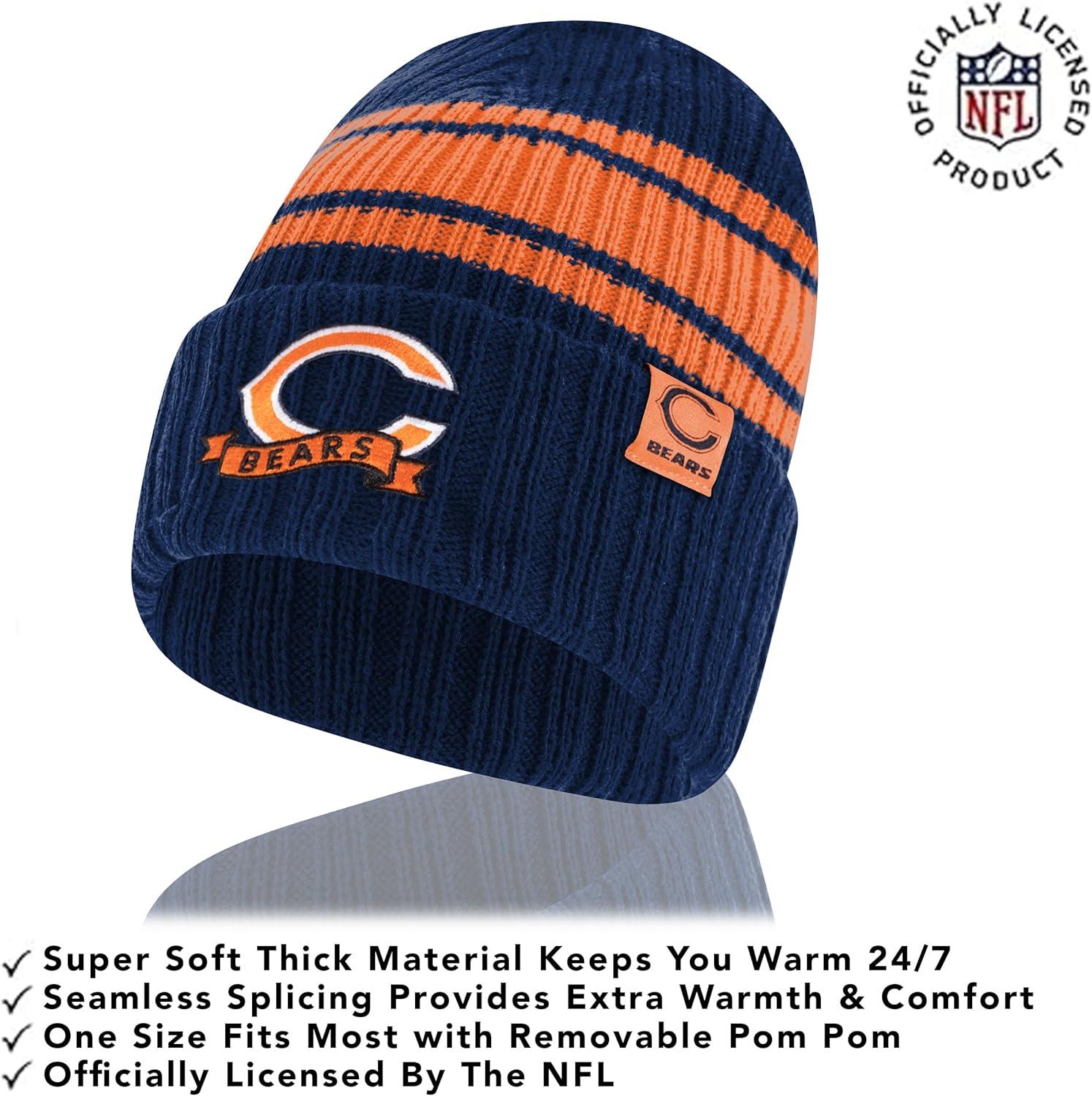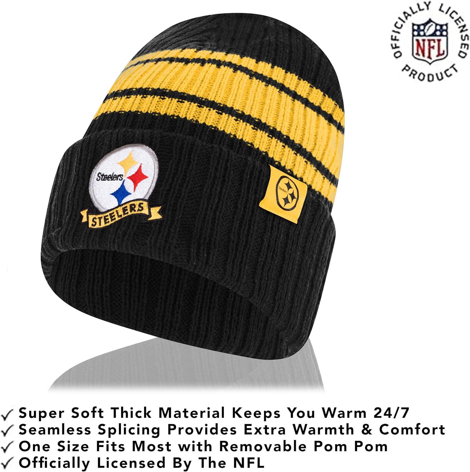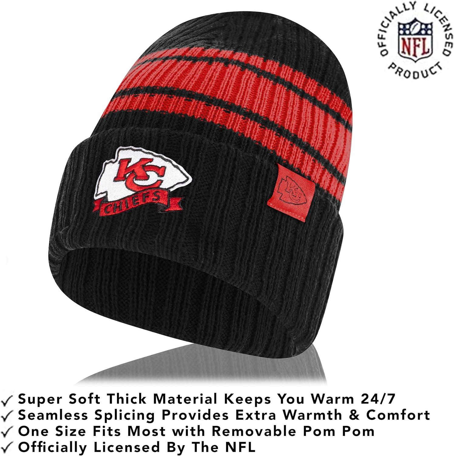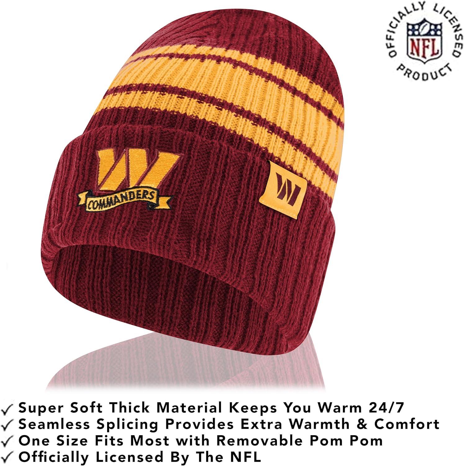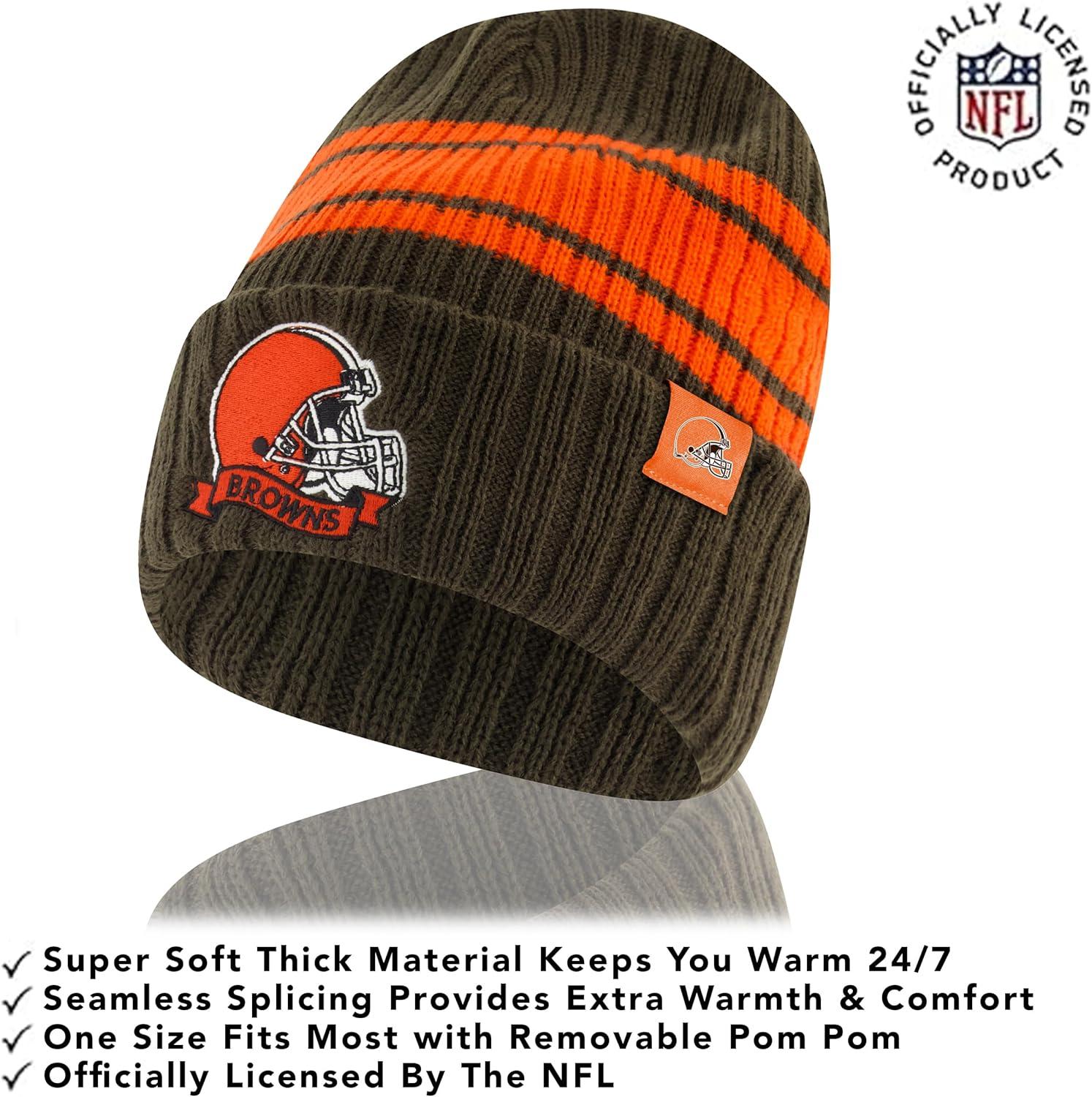 Ultra Game Adults NFL Official Super Soft Team Stripe Winter Beanie Knit Hat with Extra Warm Touch Screen Gloves(Team Color)
