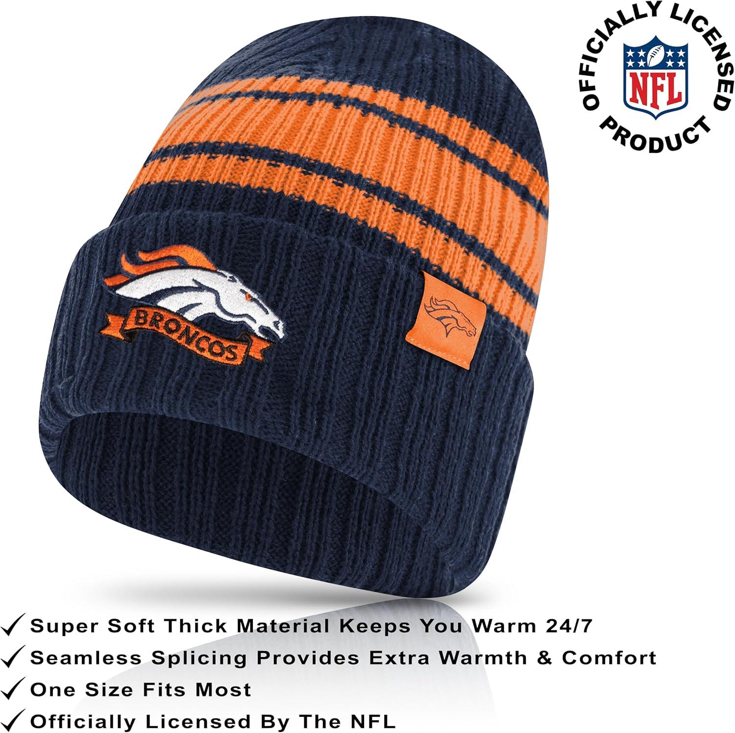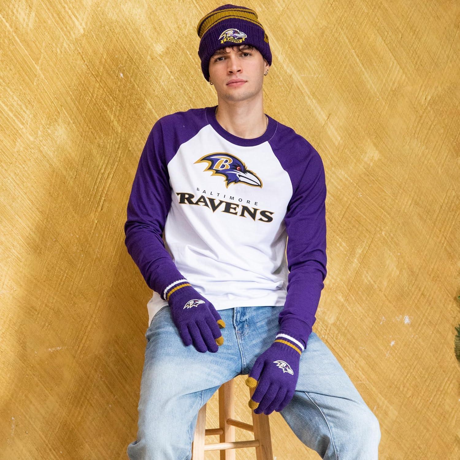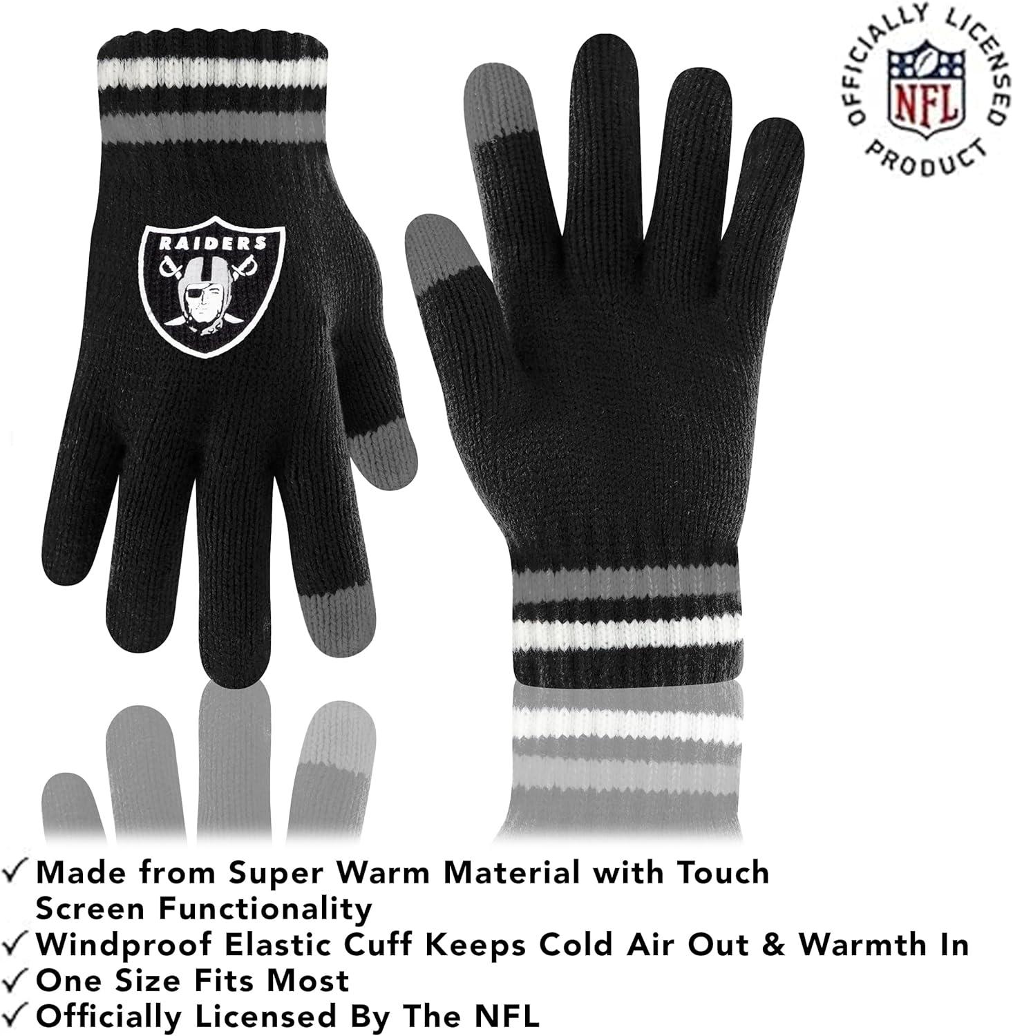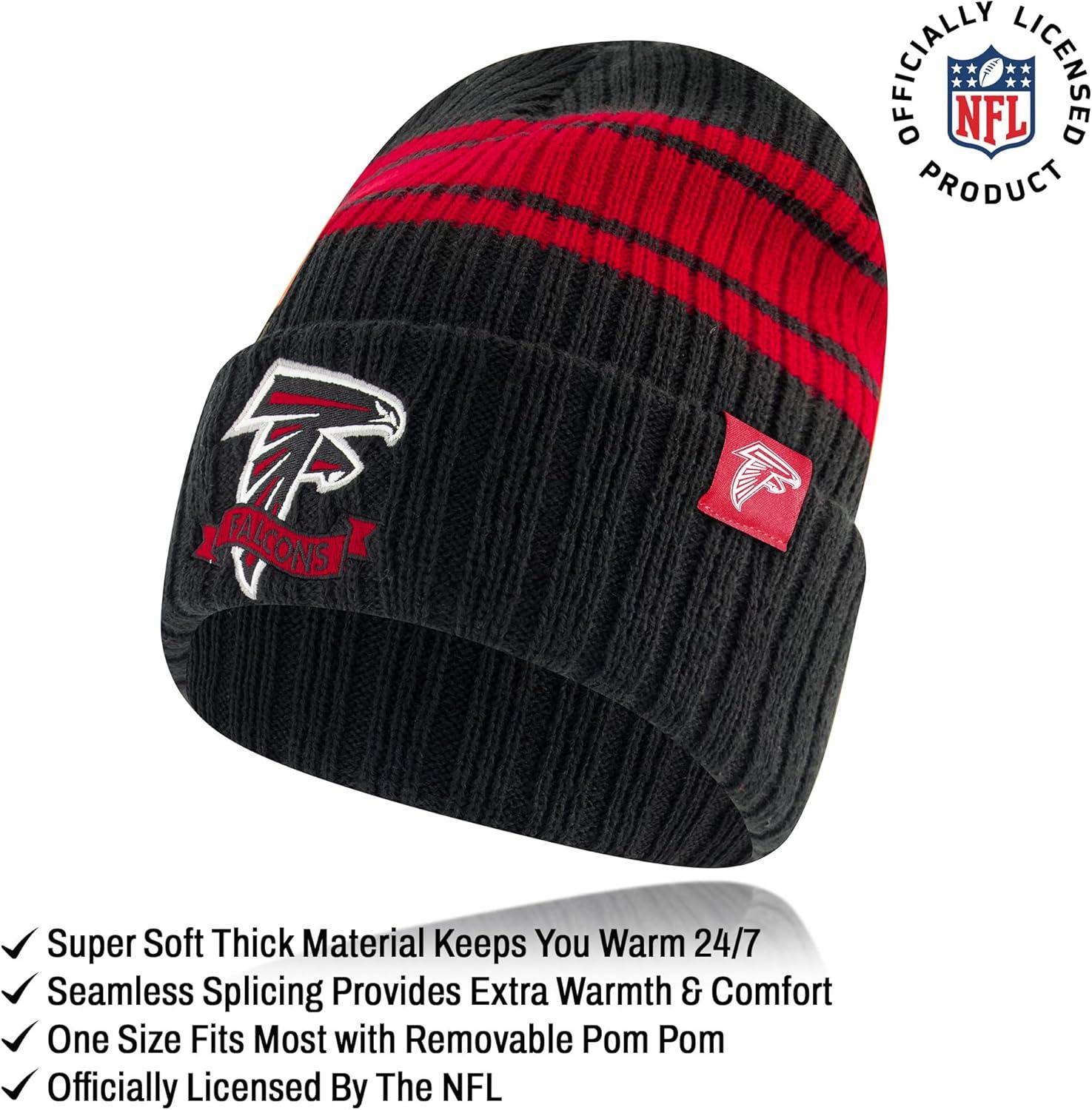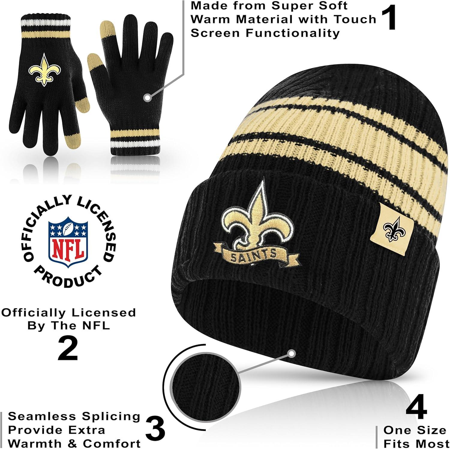 Ultra Game Adults NFL Official Super Soft Team Stripe Winter Beanie Knit Hat with Extra Warm Touch Screen Gloves(Team Color)