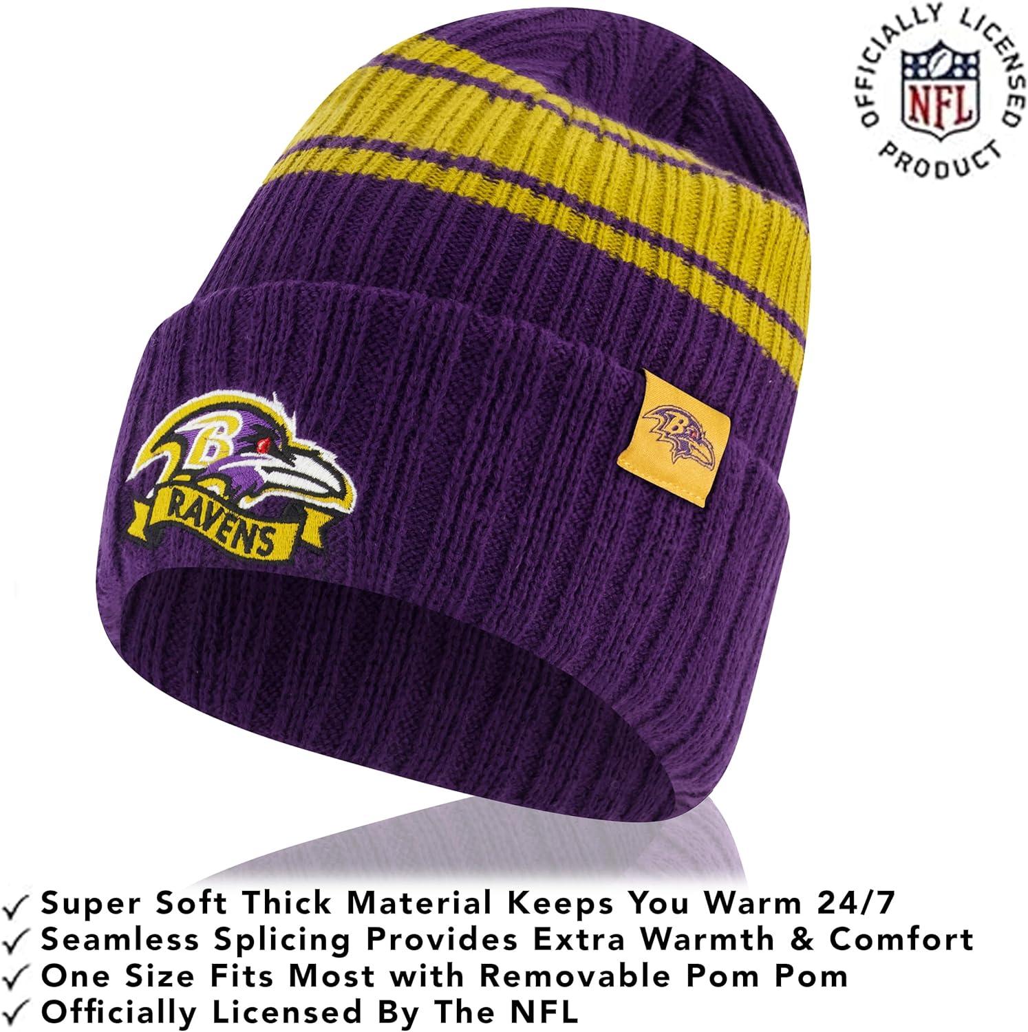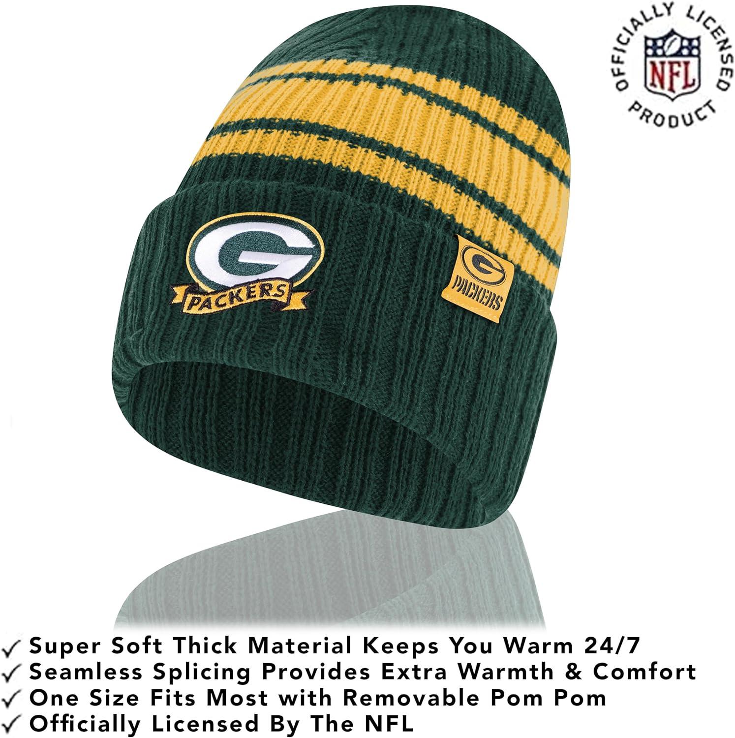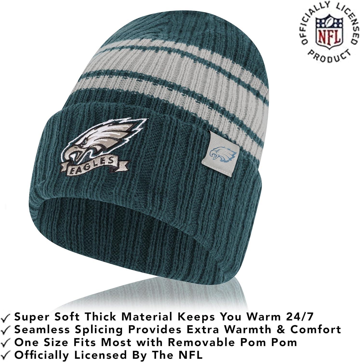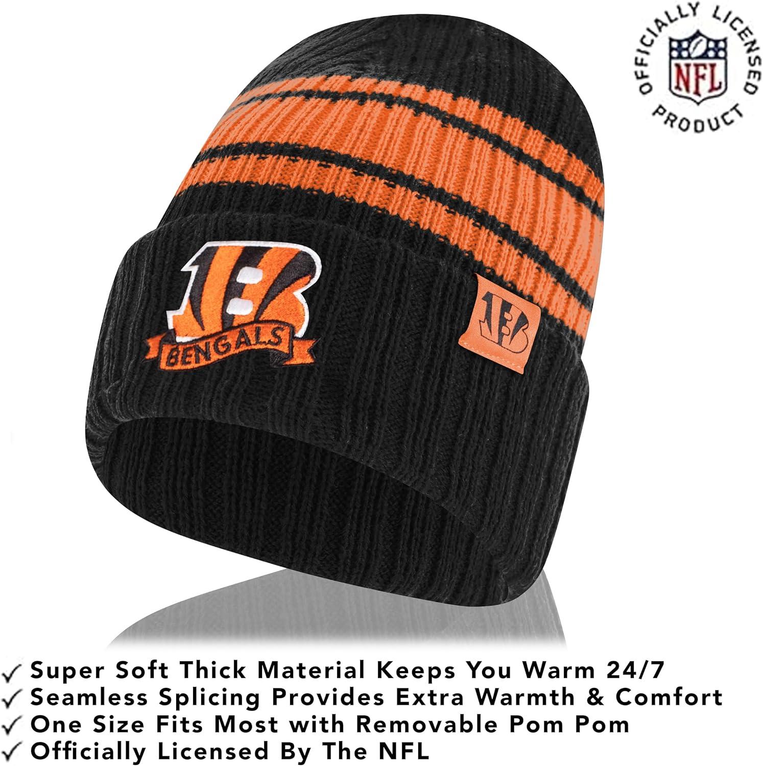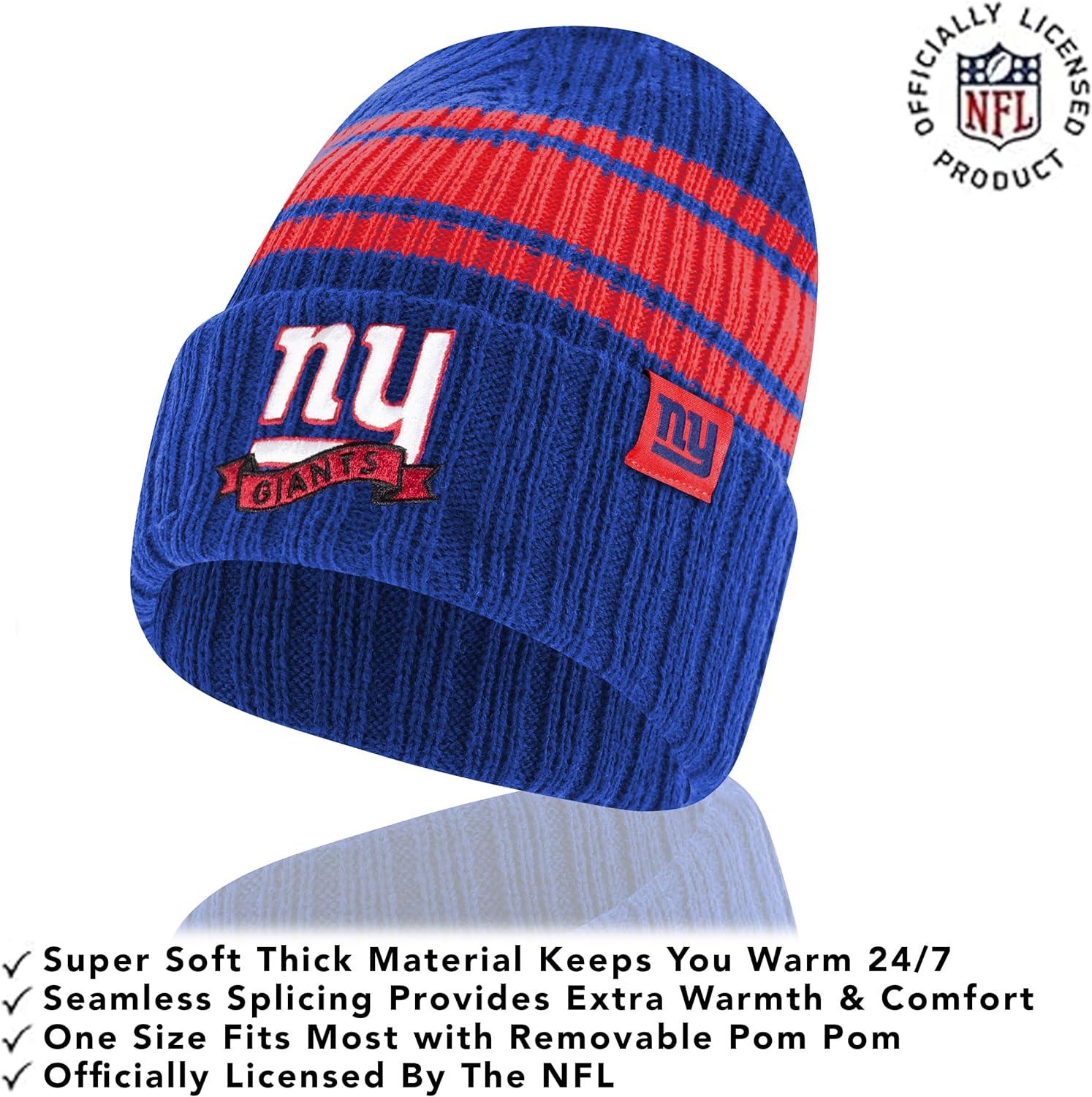 Ultra Game Adults NFL Official Super Soft Team Stripe Winter Beanie Knit Hat with Extra Warm Touch Screen Gloves(Team Color)
