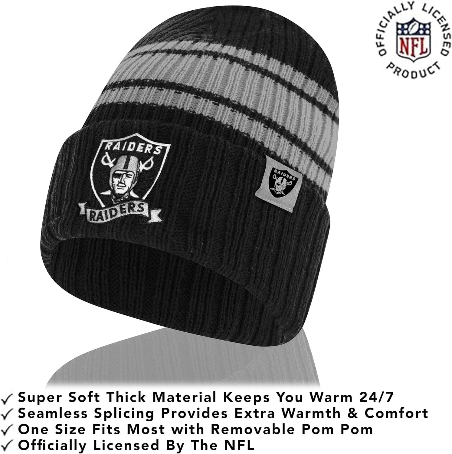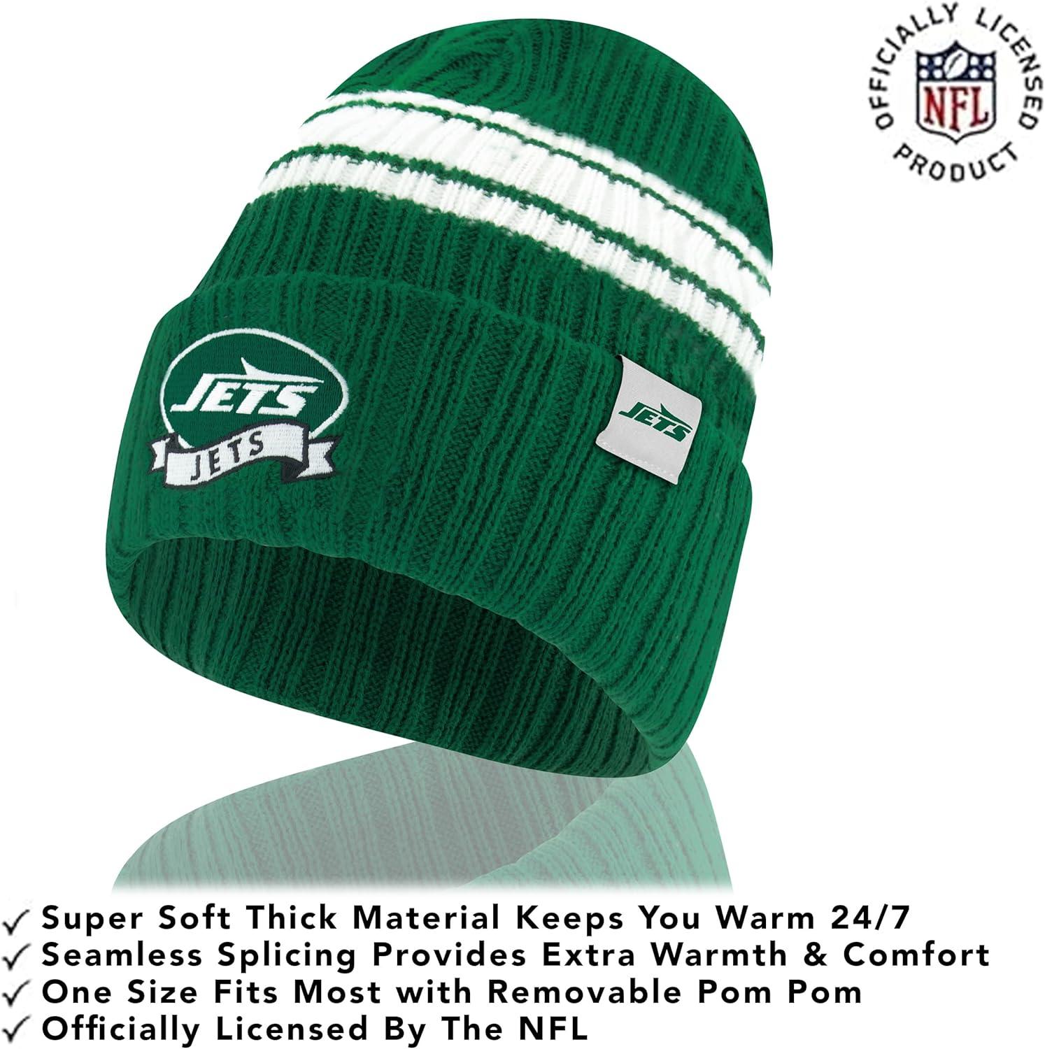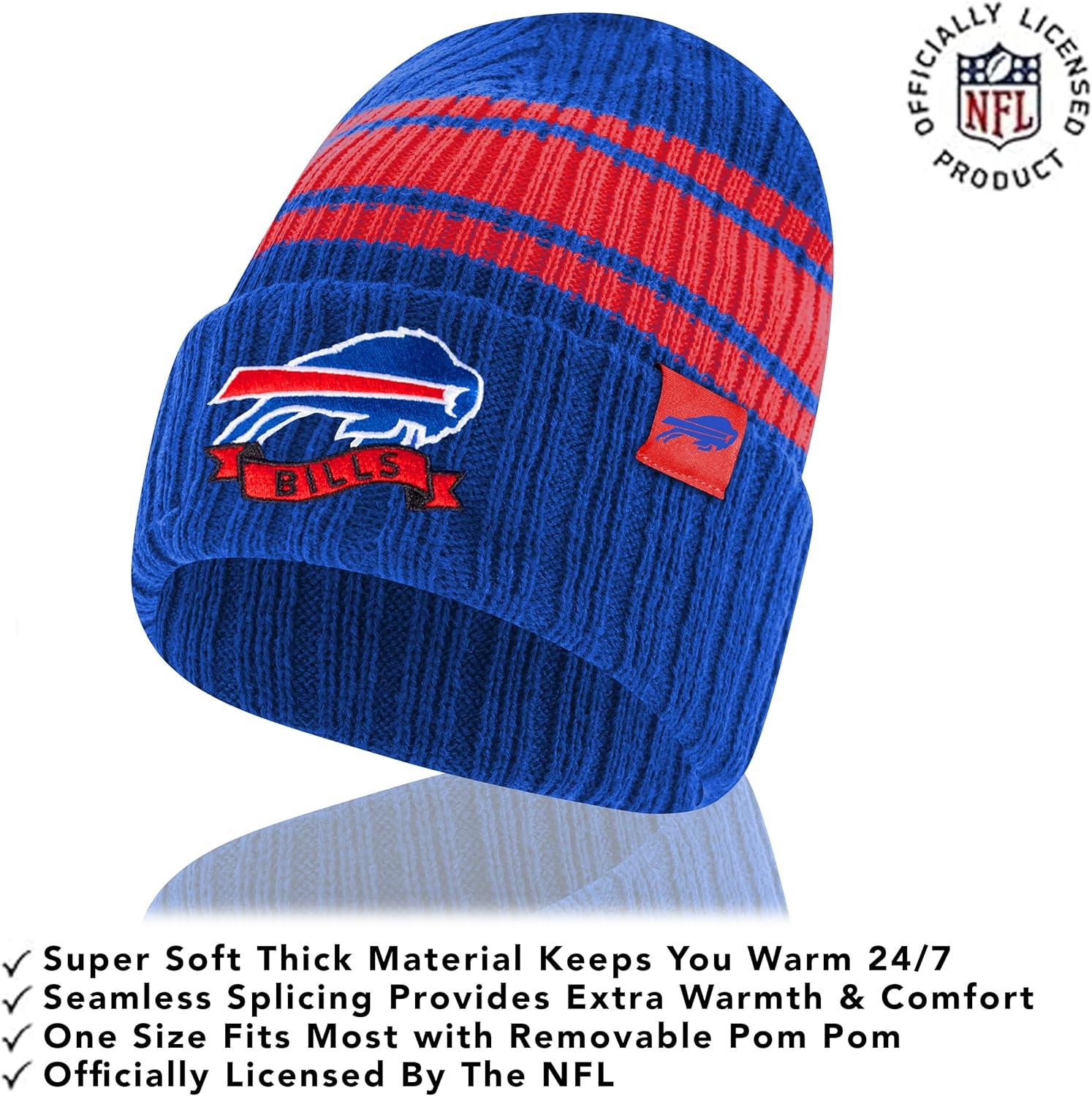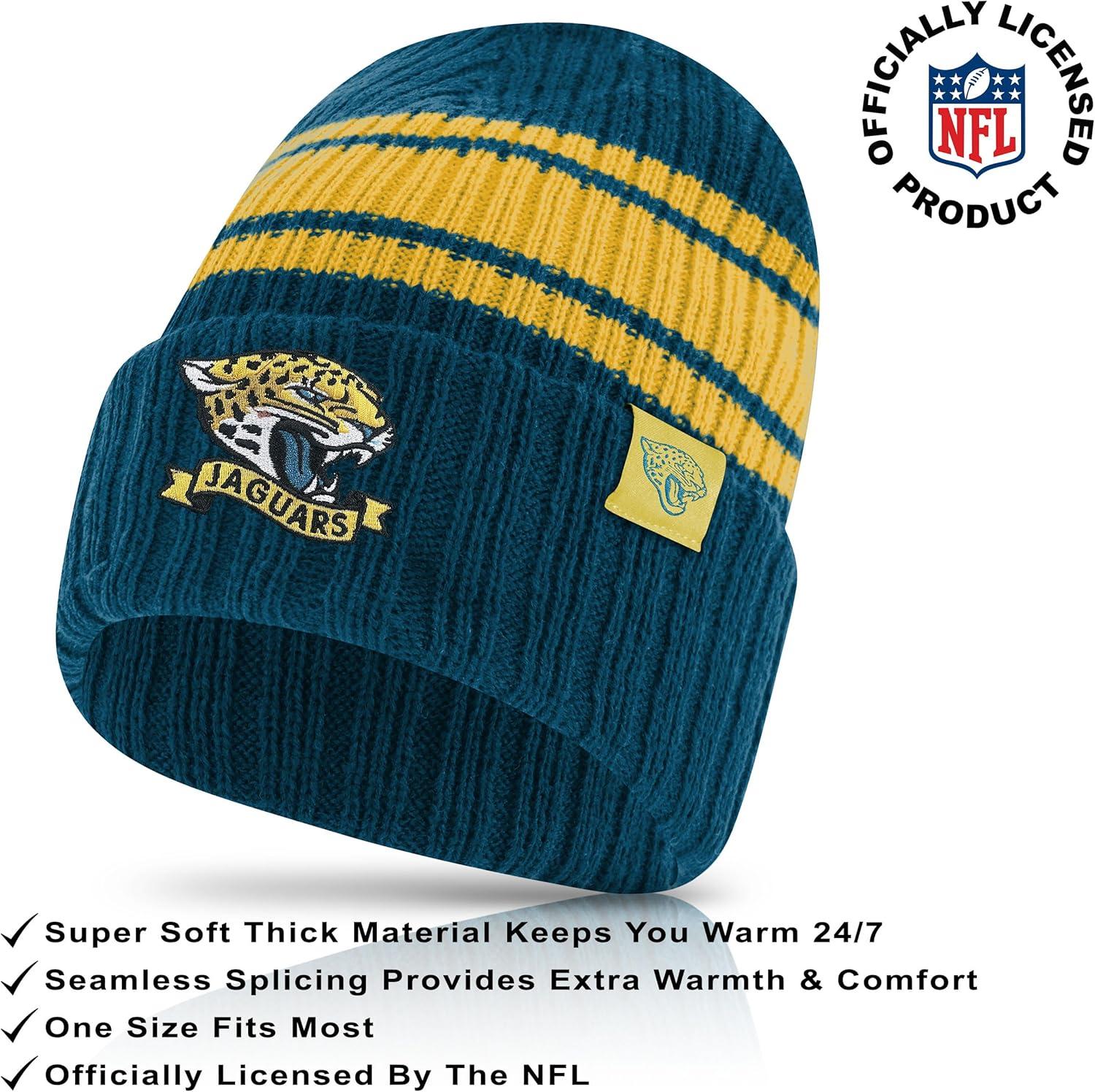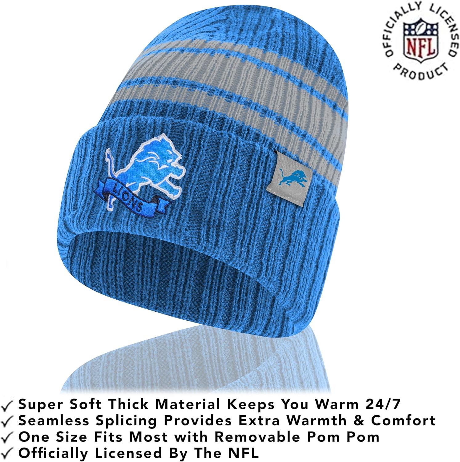 Ultra Game Adults NFL Official Super Soft Team Stripe Winter Beanie Knit Hat with Extra Warm Touch Screen Gloves(Team Color)