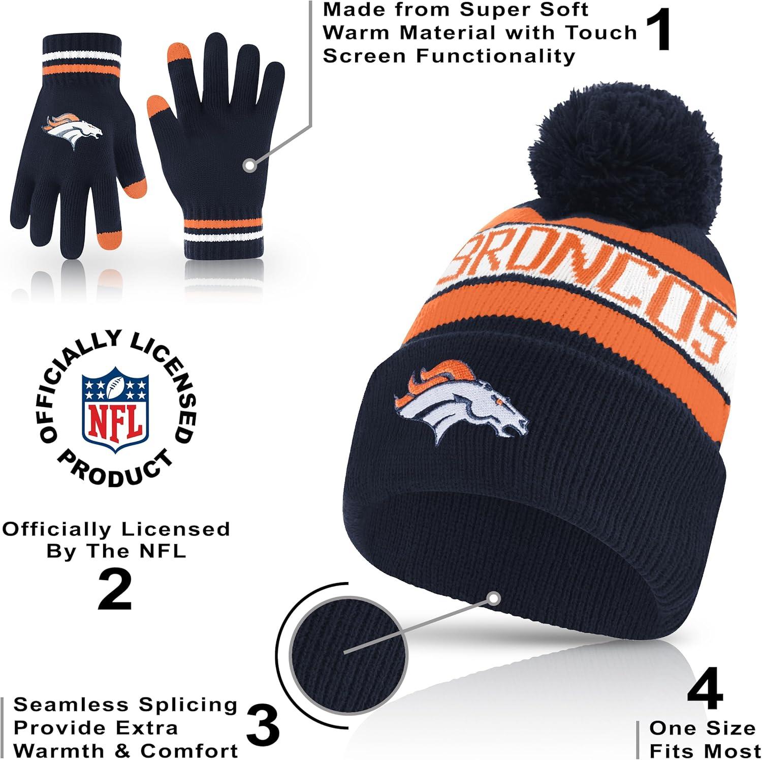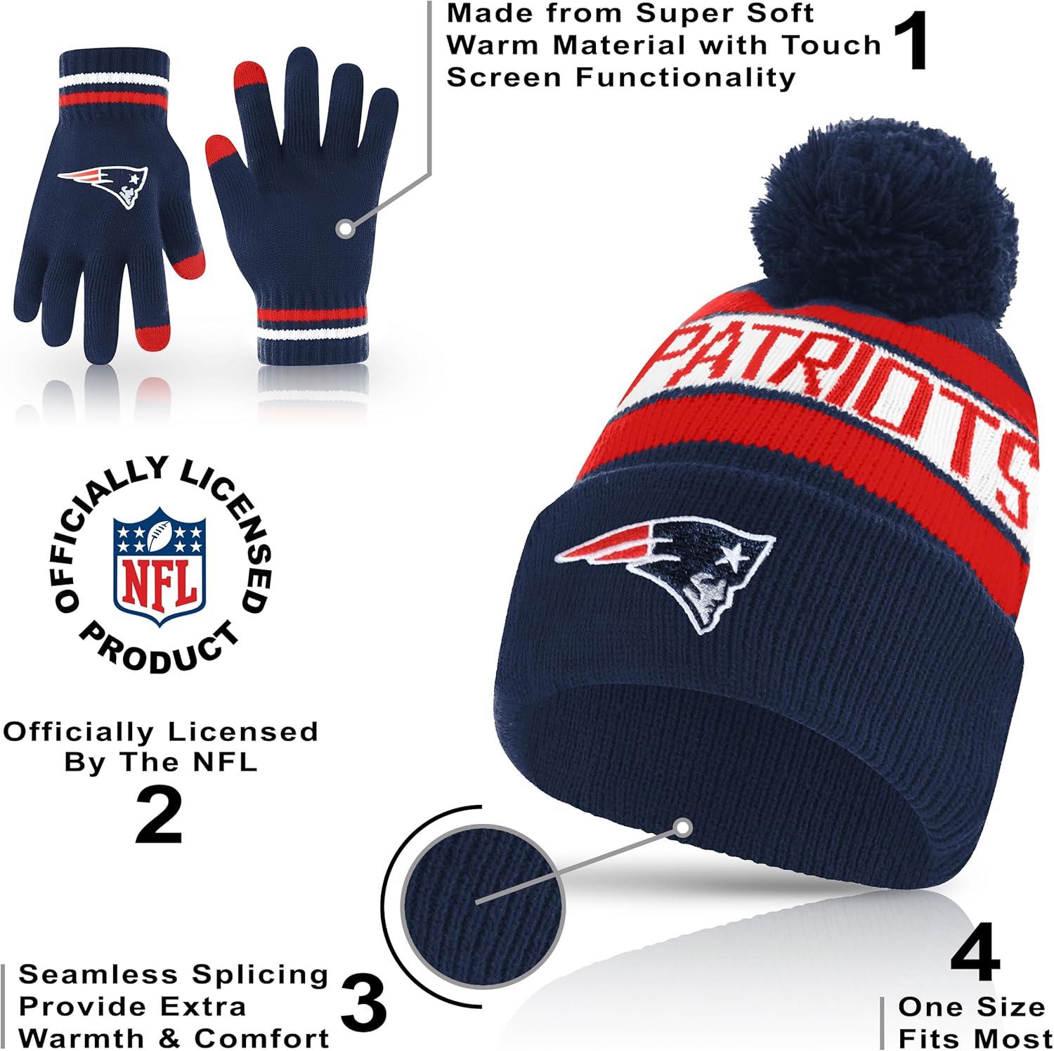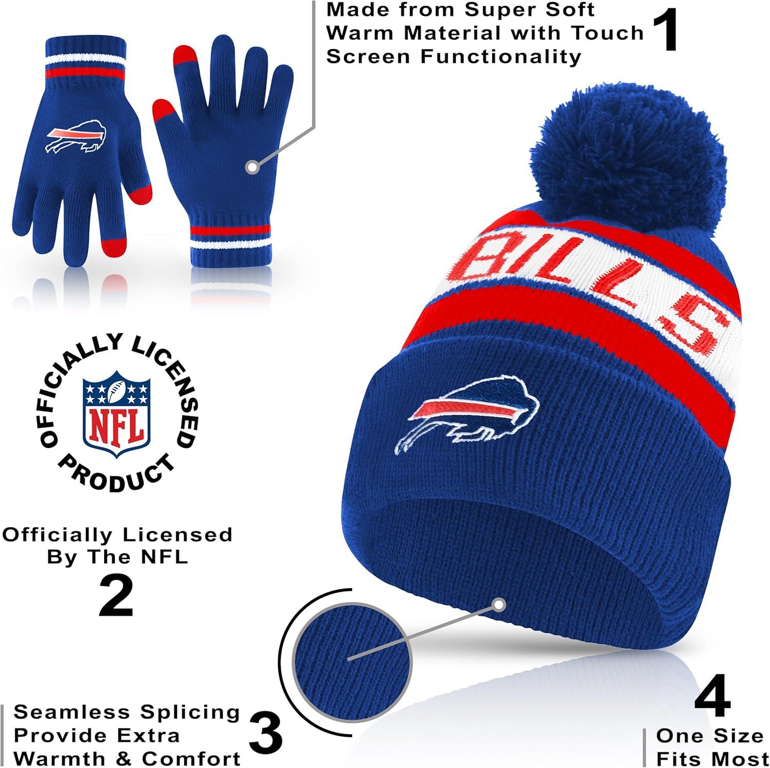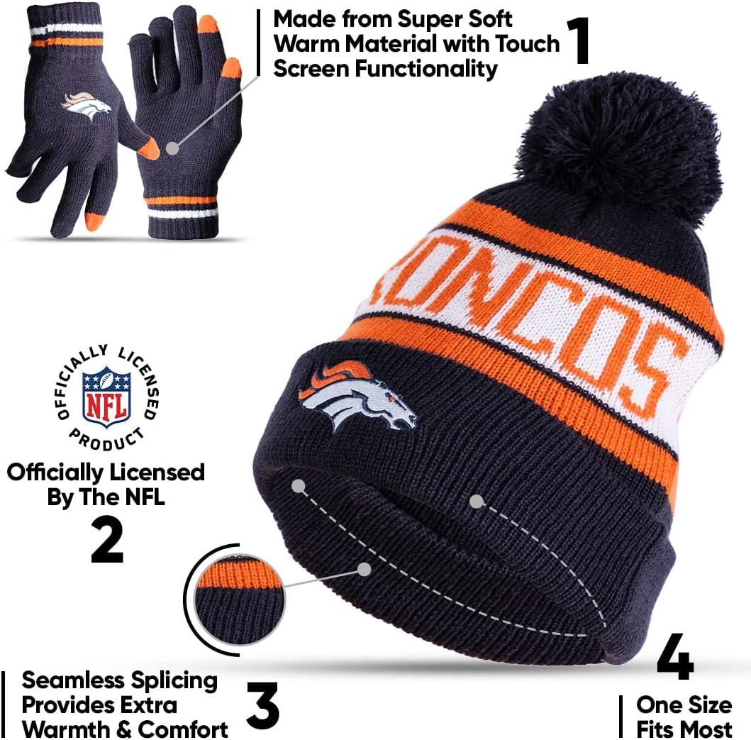 Ultra Game Adults NFL Official Super Soft Winter Beanie Knit Hat With Warm Touch Screen Gloves(Team Color 1)