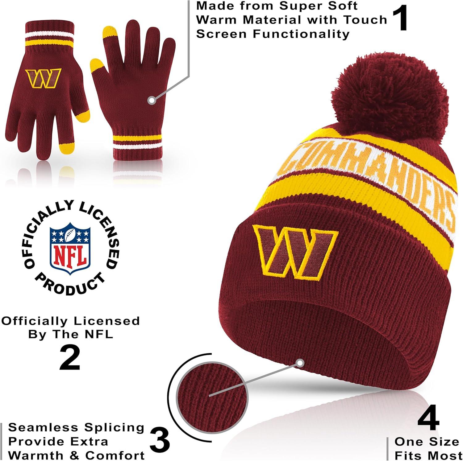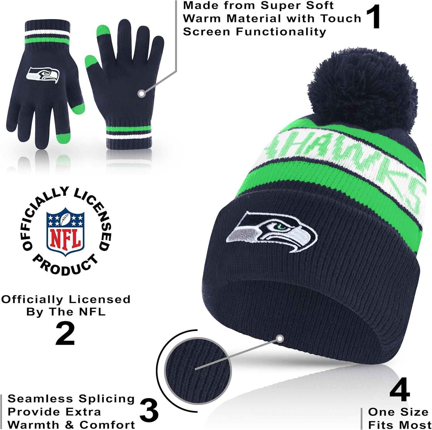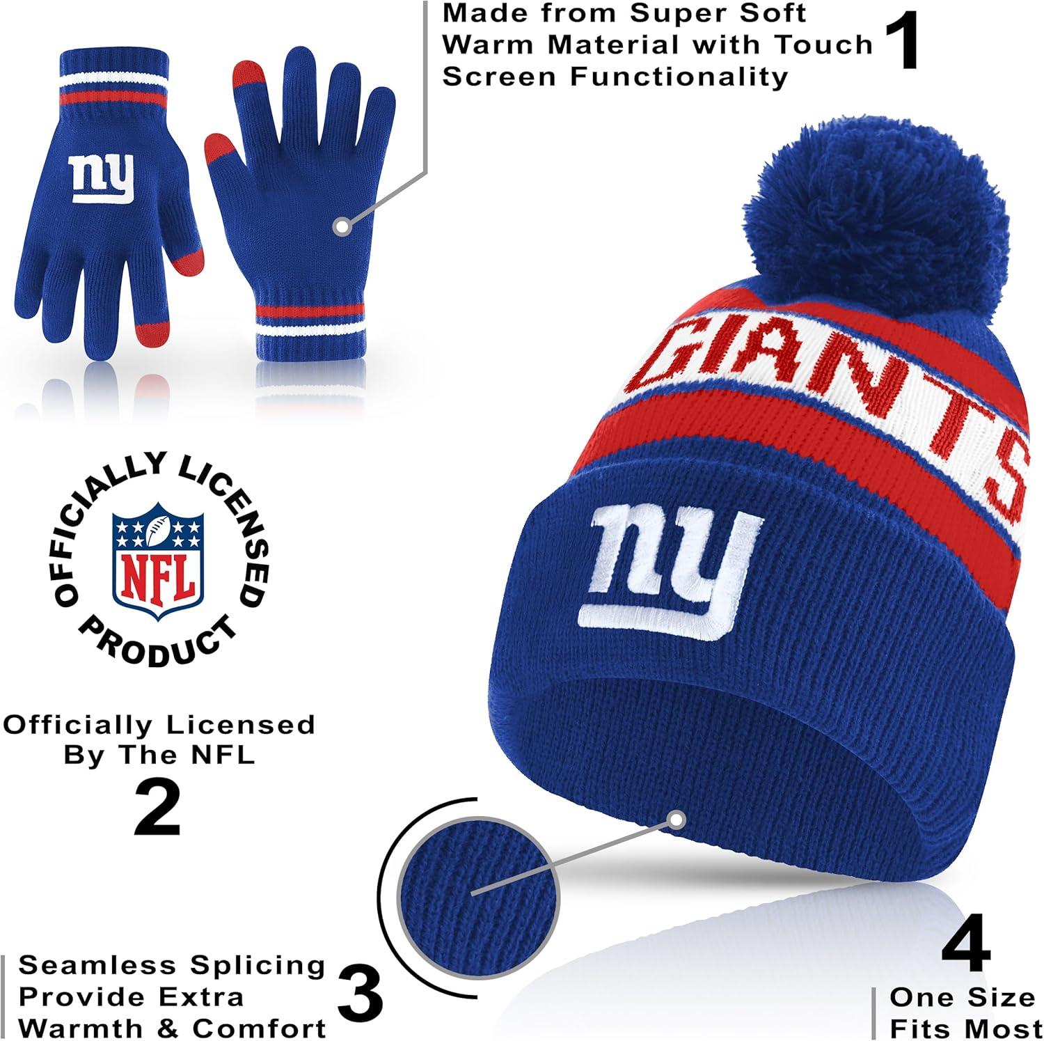 Ultra Game Adults NFL Official Super Soft Winter Beanie Knit Hat With Warm Touch Screen Gloves(Team Color 1)