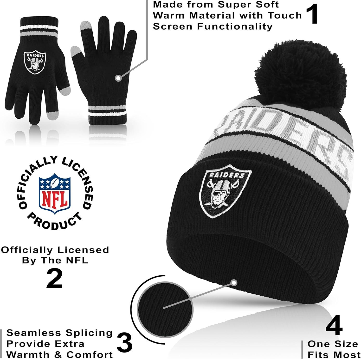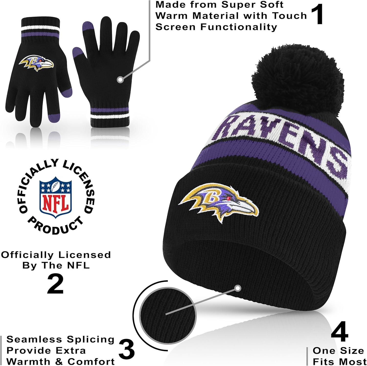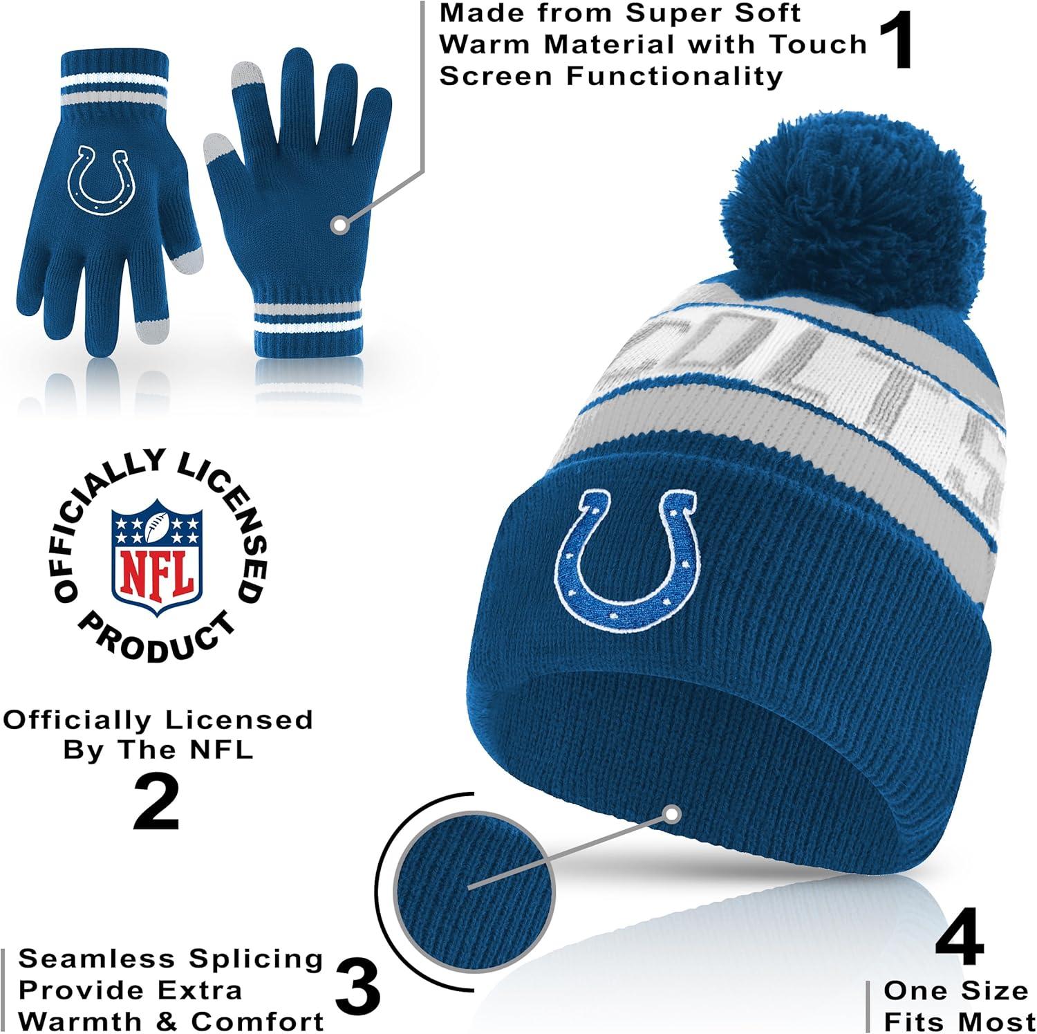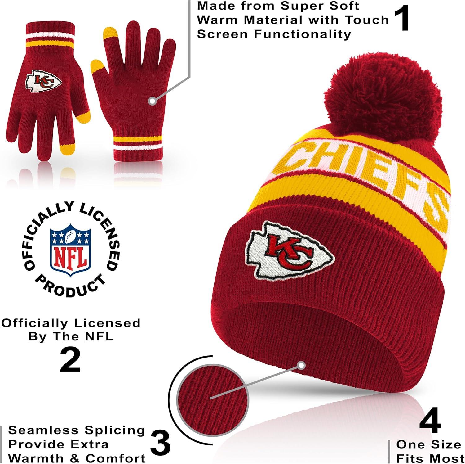 Ultra Game Adults NFL Official Super Soft Winter Beanie Knit Hat With Warm Touch Screen Gloves(Team Color 1)