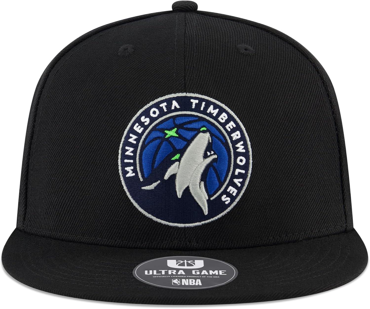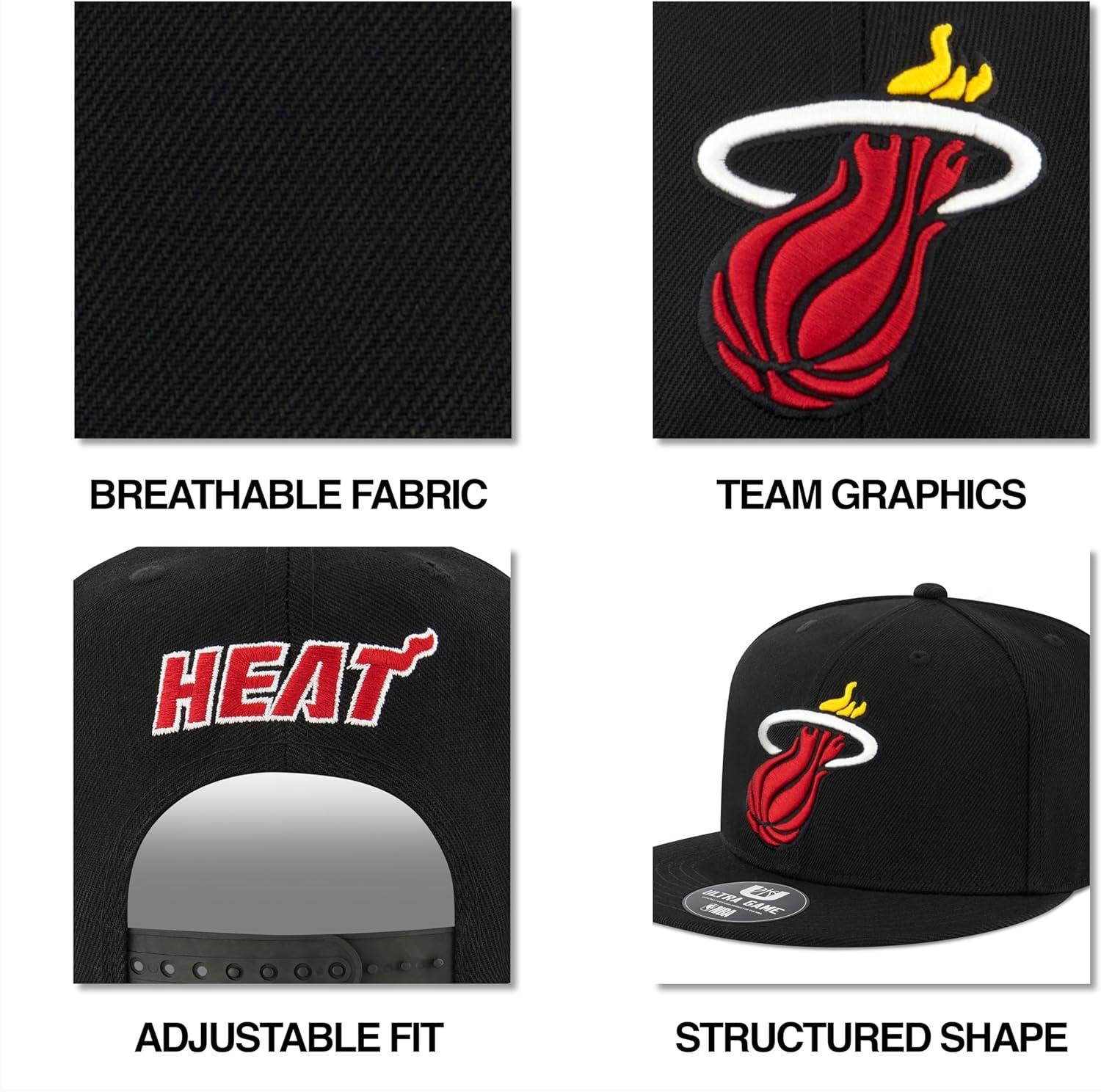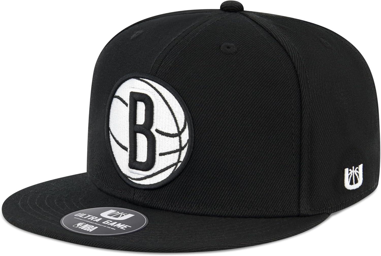 Ultra Game Men NBA Official Twill Snap Back Ultimate Black Baseball Cap Hat(Black)