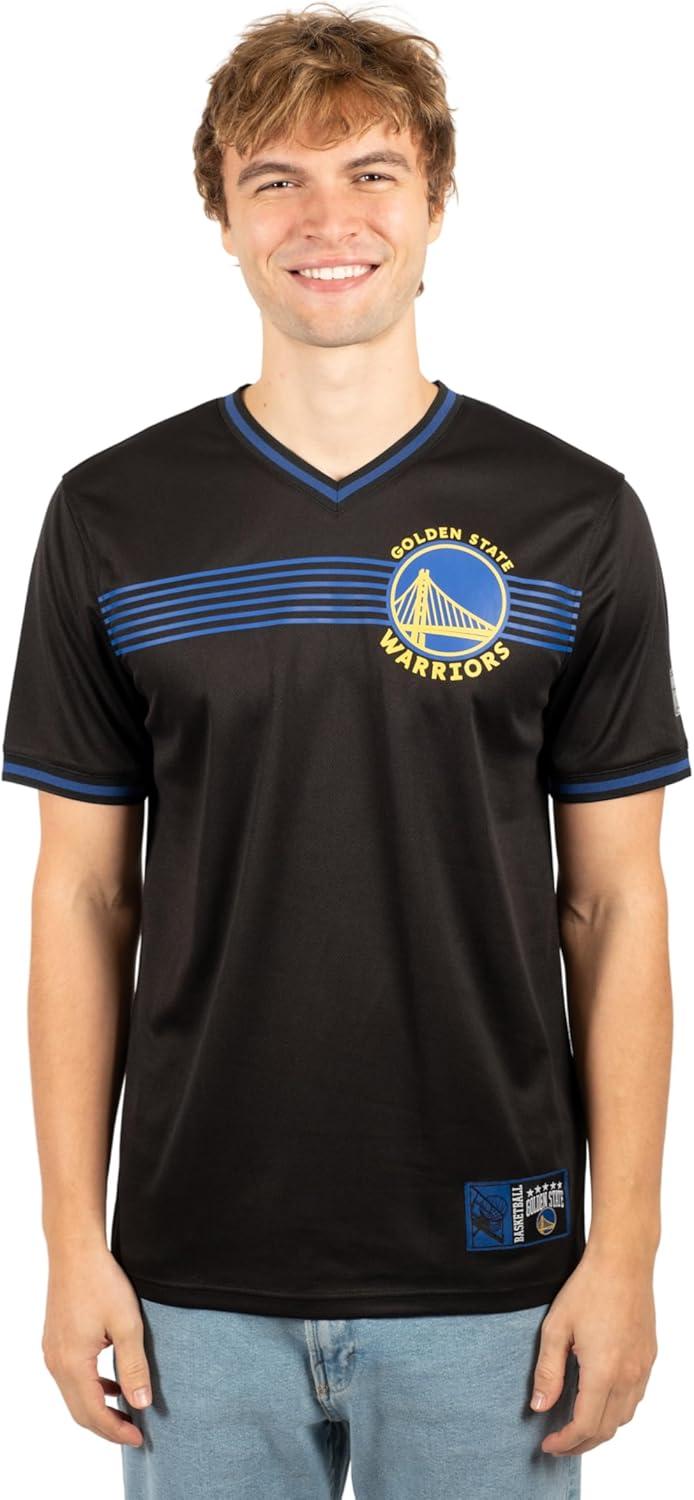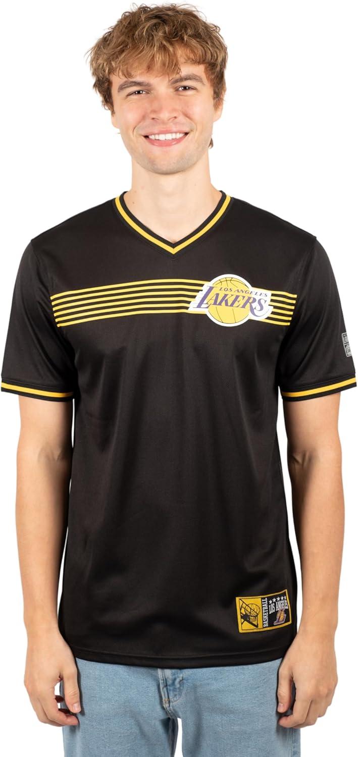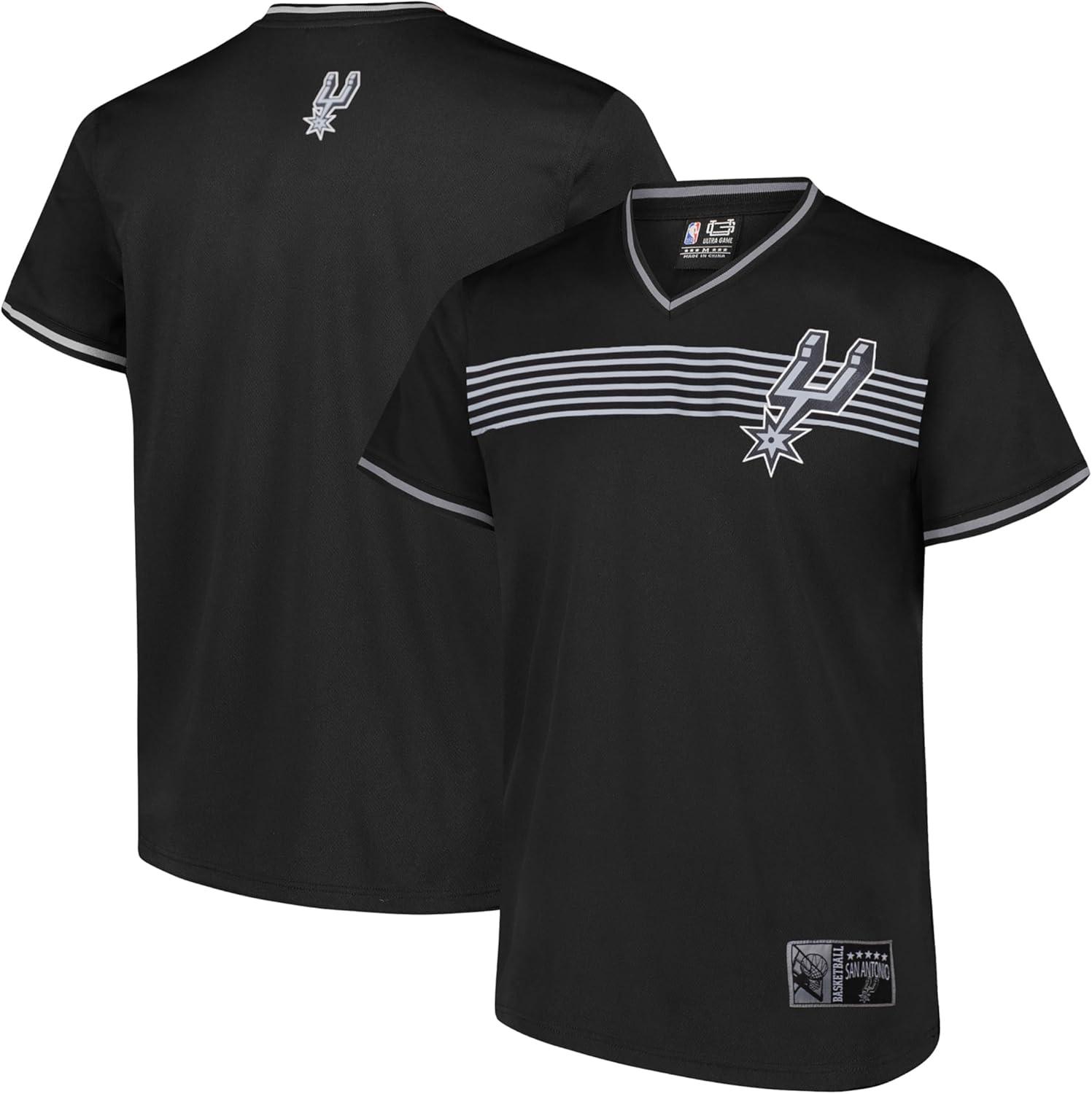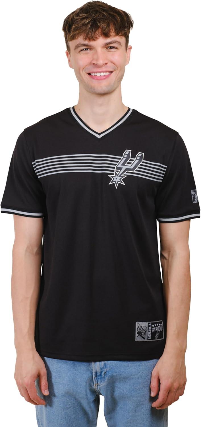 Ultra Game Men’s NBA Official Jersey V-Neck Mesh Short Sleeve Tee Shirt(Black Updated)