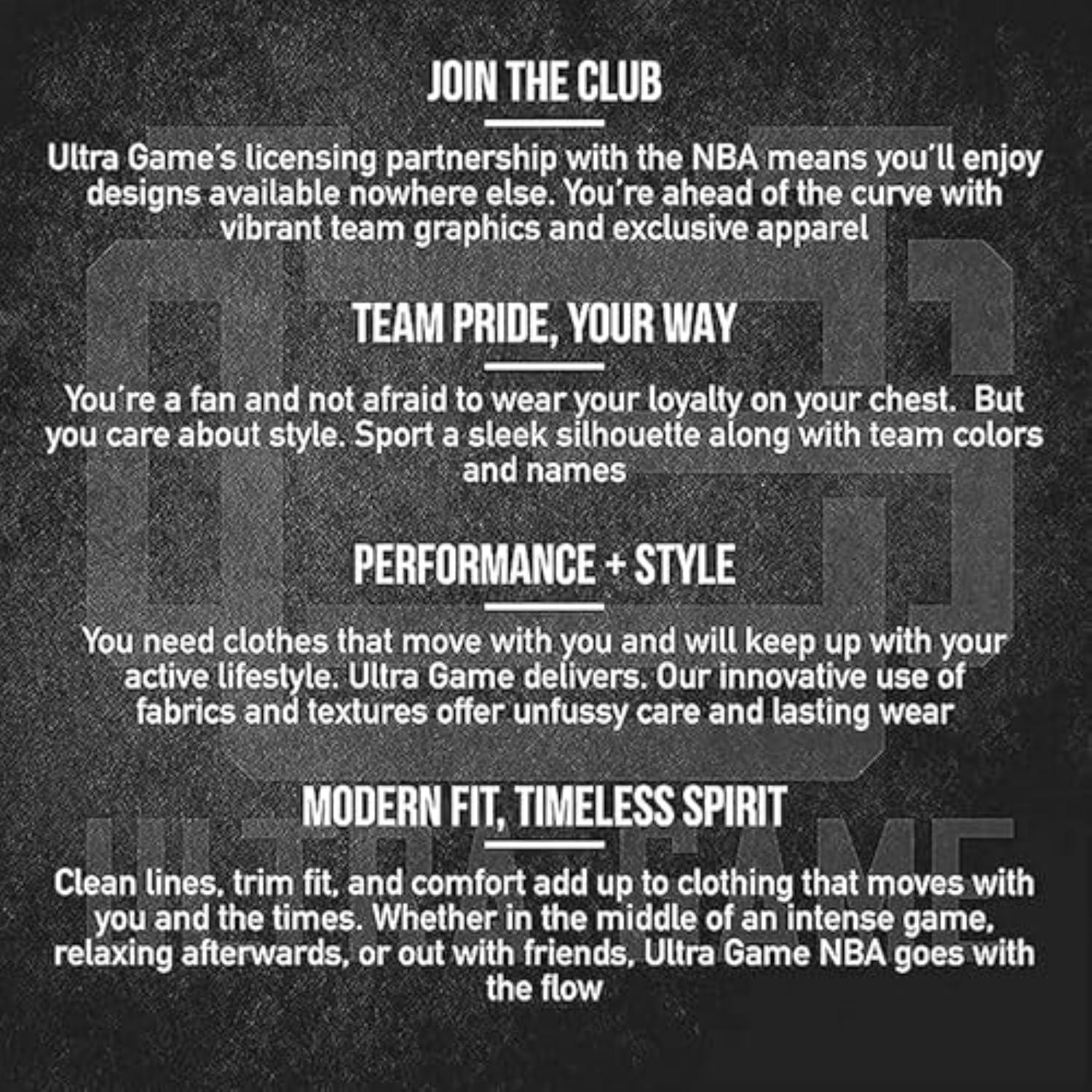ULTRA GAME NBA APPAREL – Officially Licensed by The NBA (National Basketball Association), Ultra Game NBA by UNK features innovative designs with forward thinking graphics and textures.