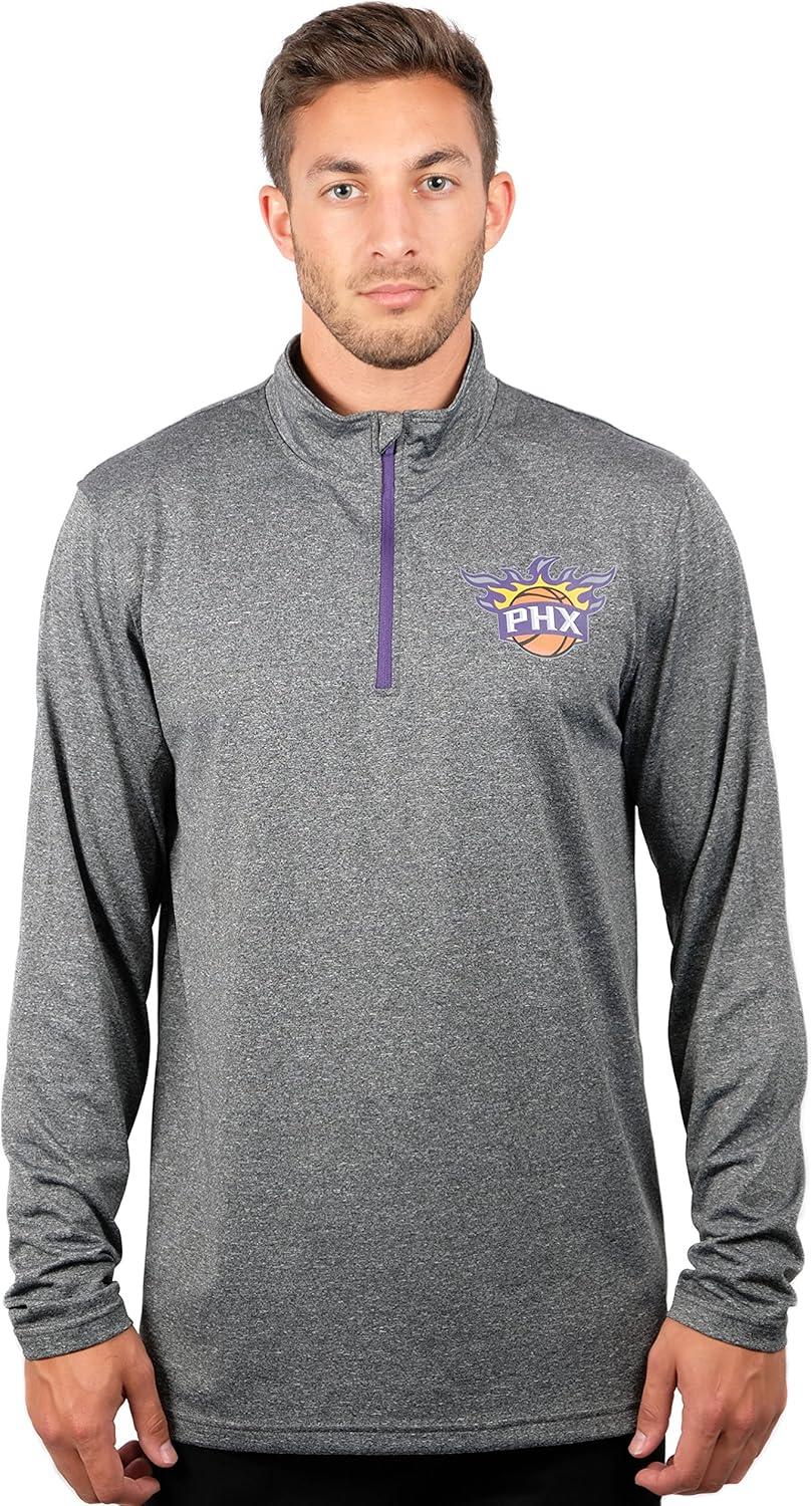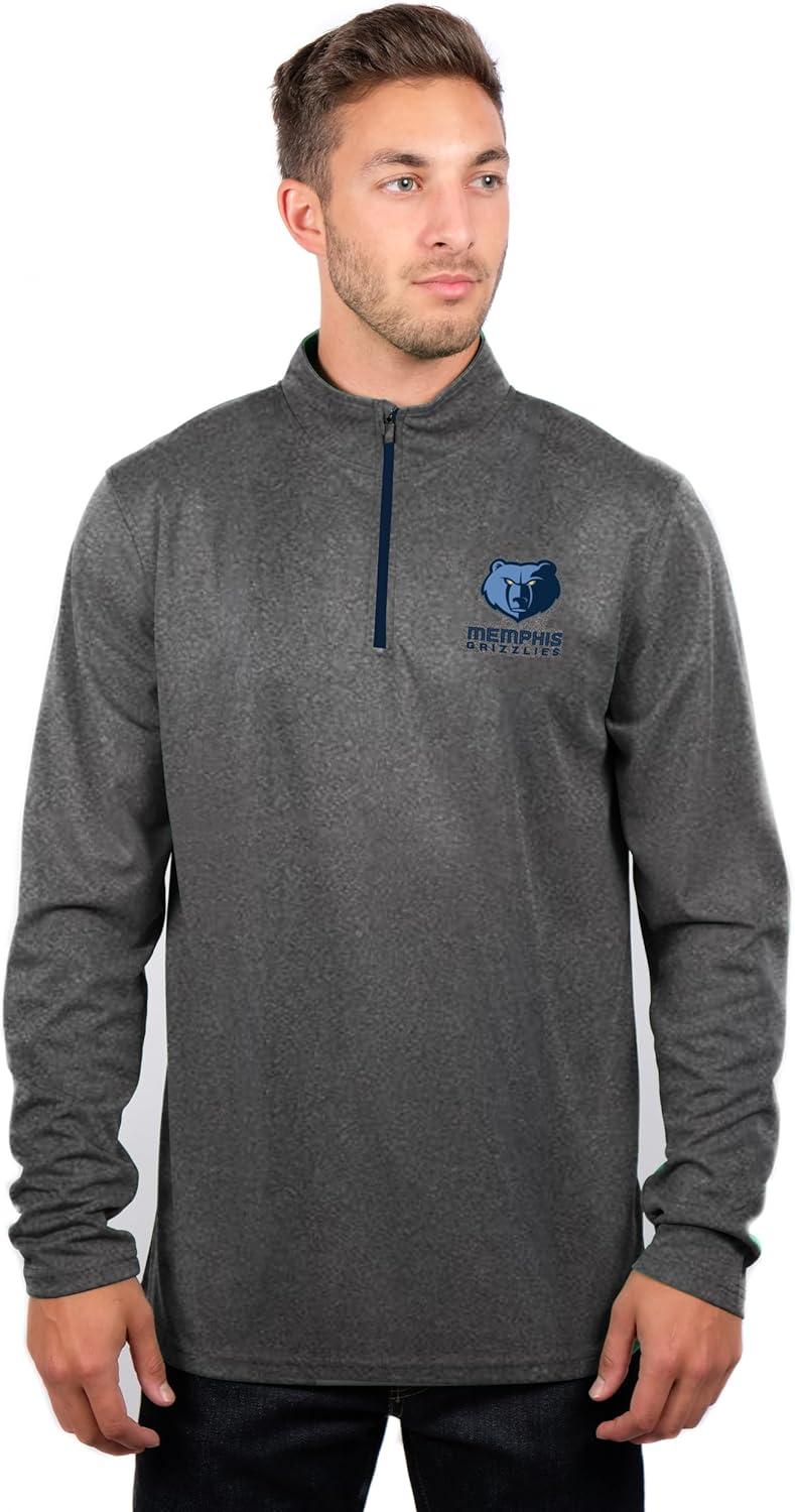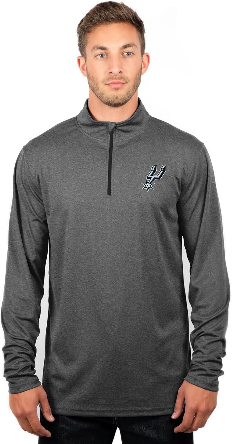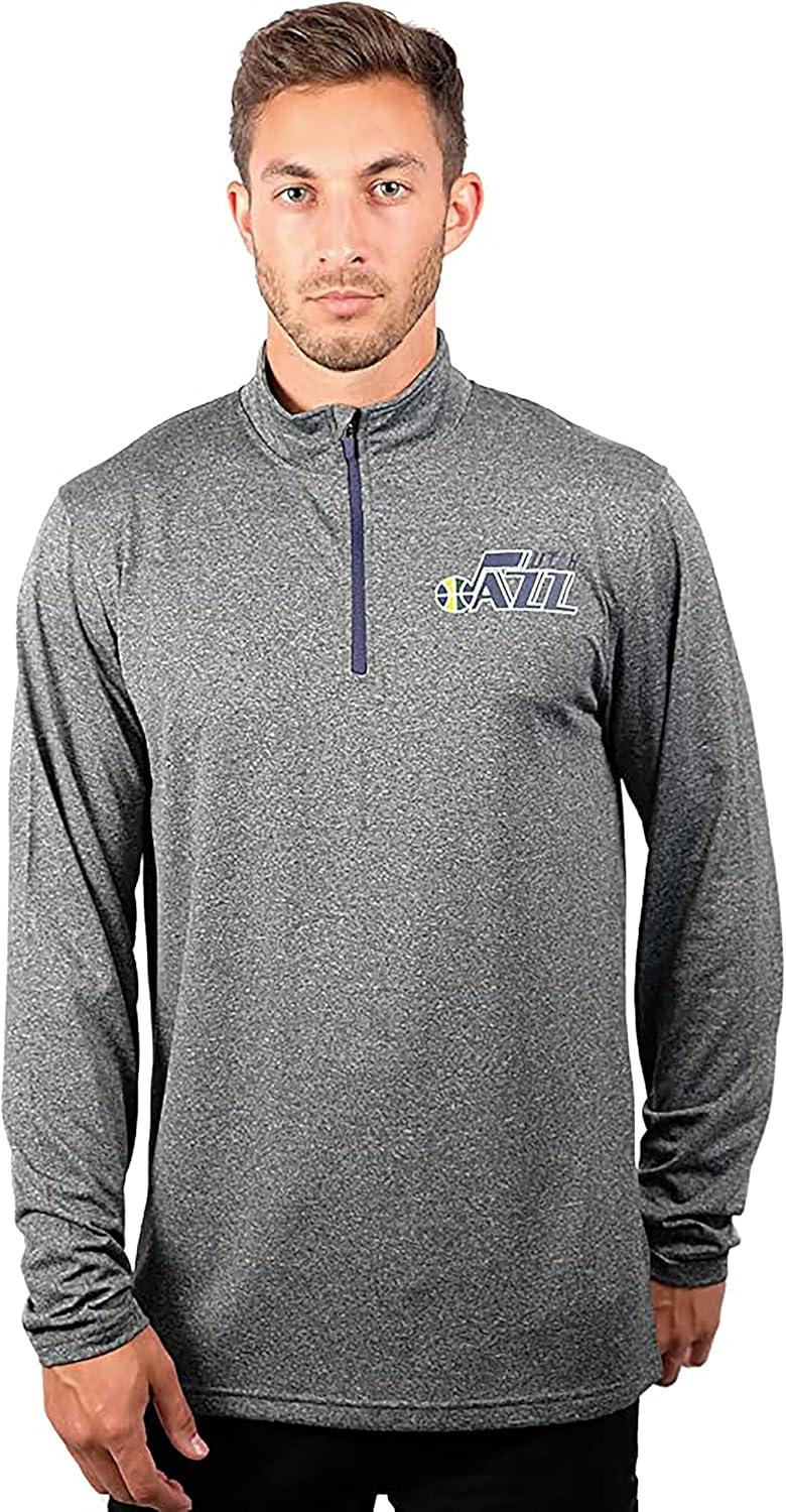 Ultra Game Men’s NBA Official Super Soft Quarter Zip Long Sleeve T-Shirt(Heather Charcoal)
