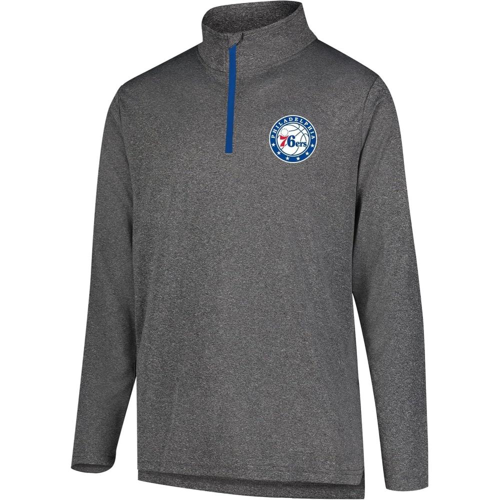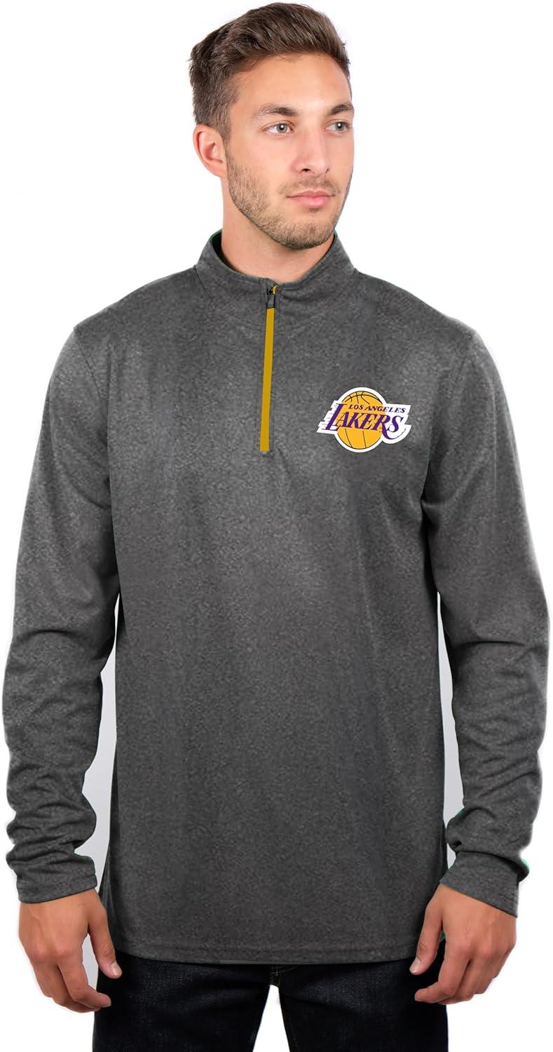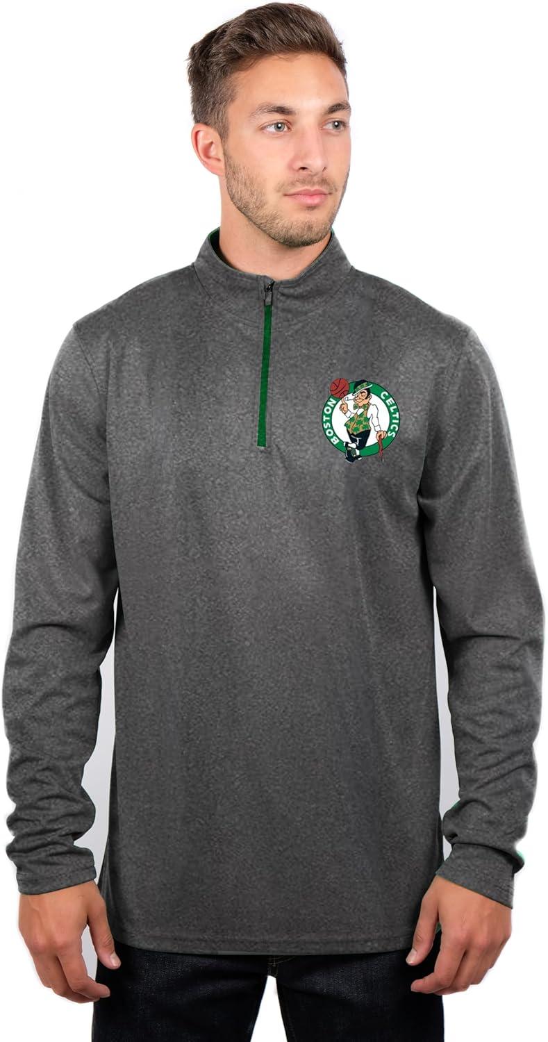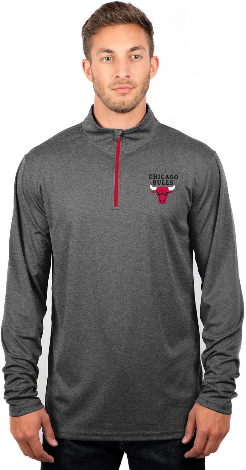 Ultra Game Men’s NBA Official Super Soft Quarter Zip Long Sleeve T-Shirt(Heather Charcoal)