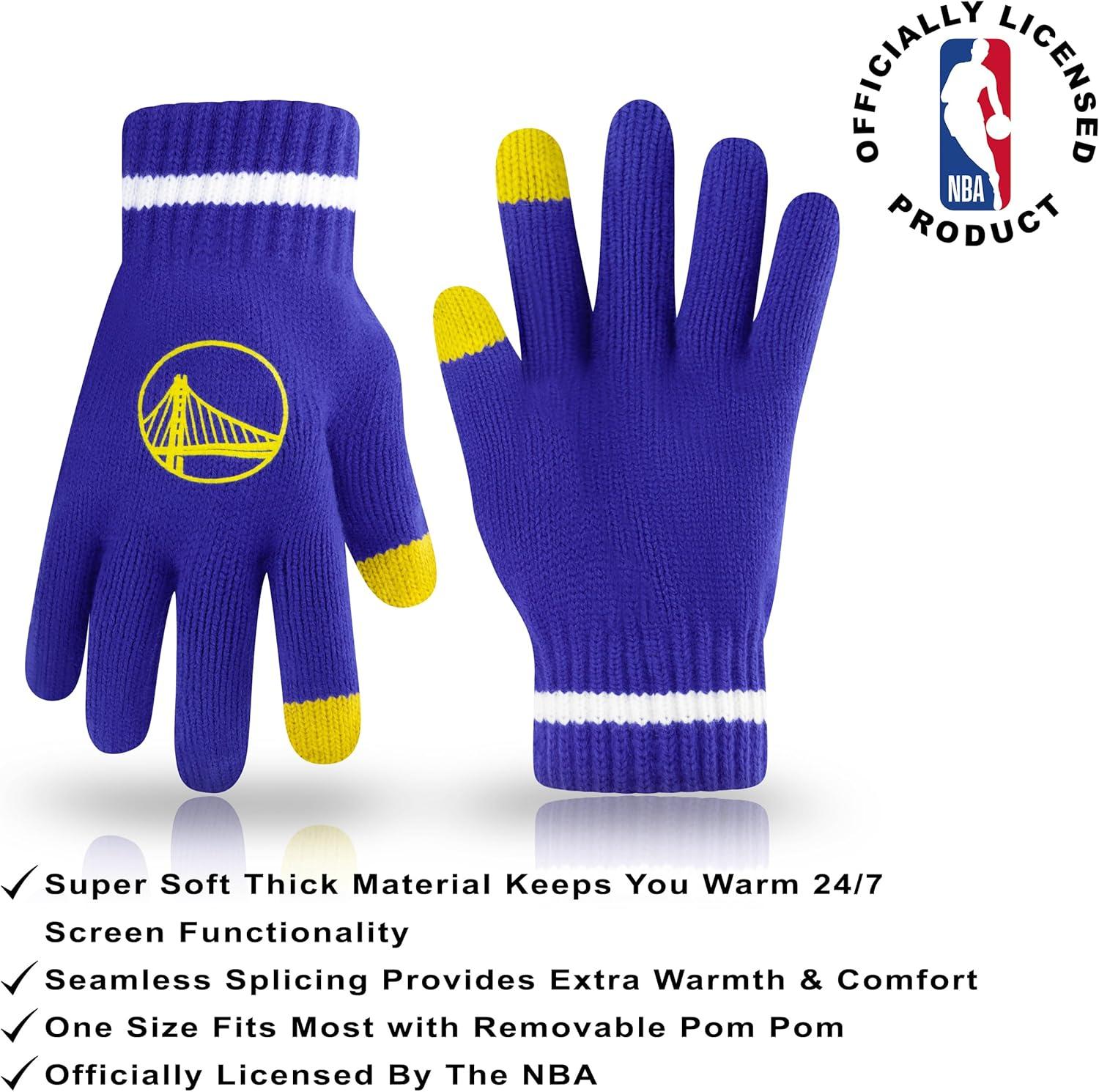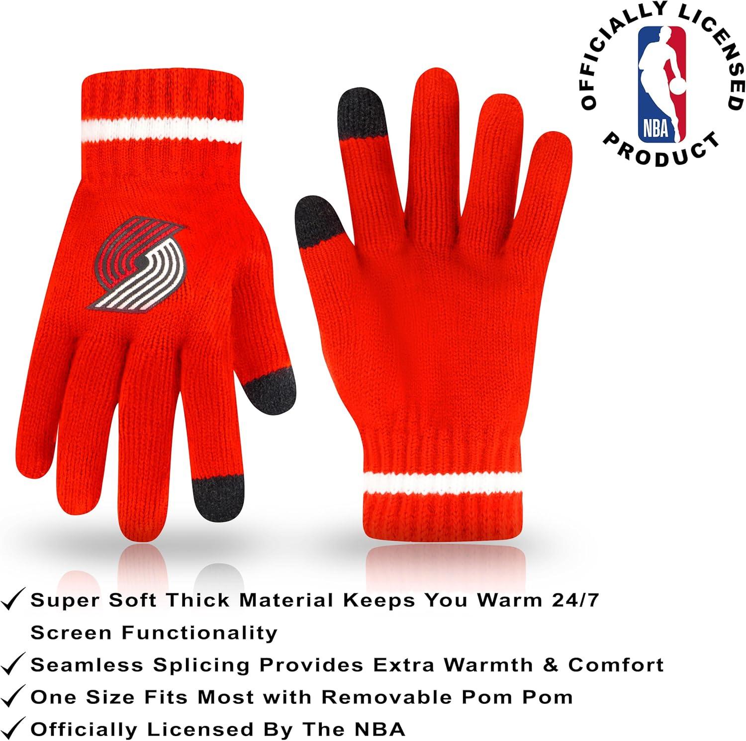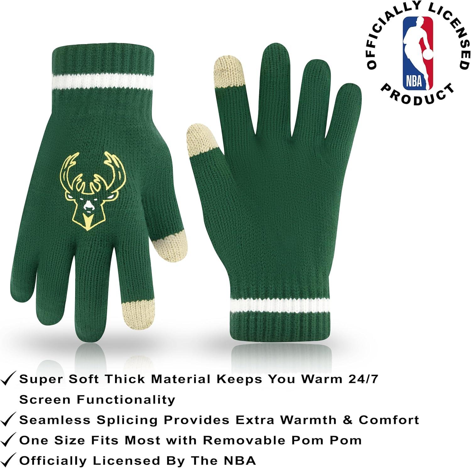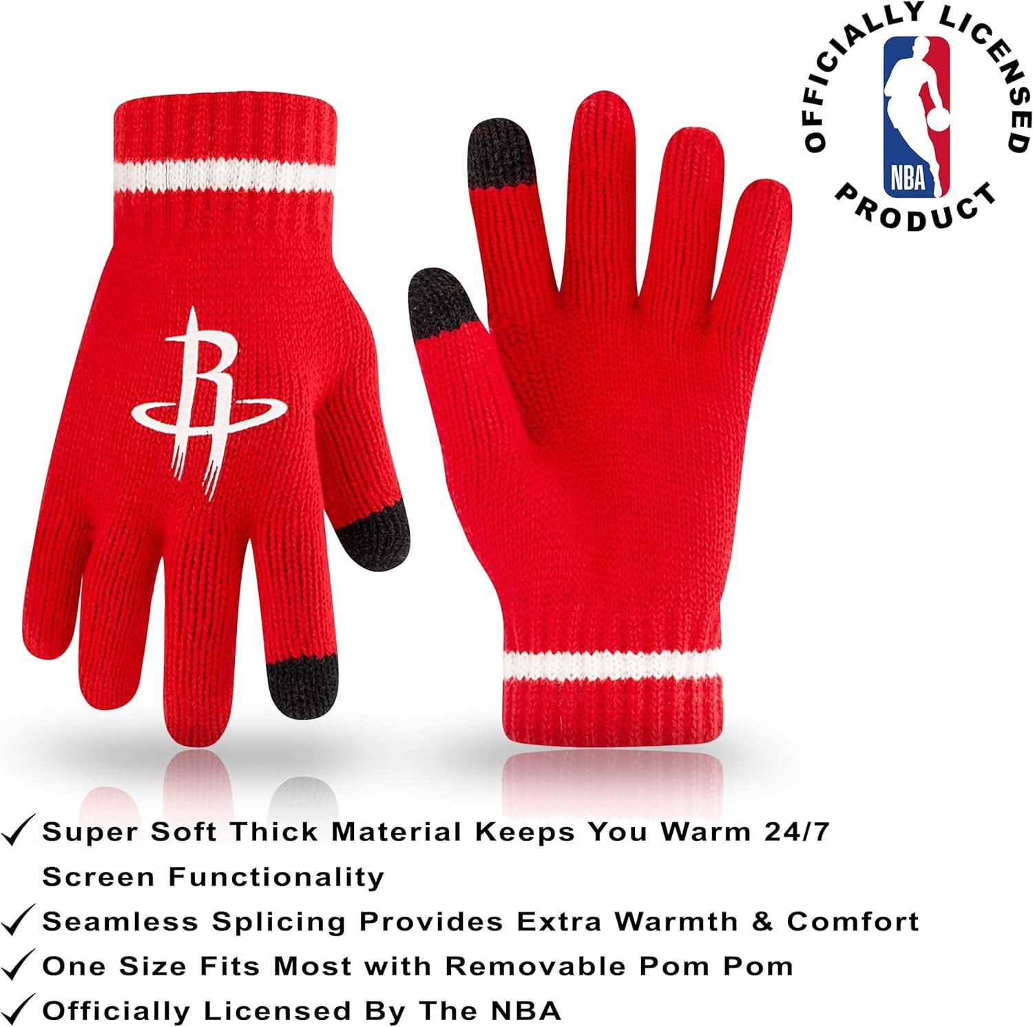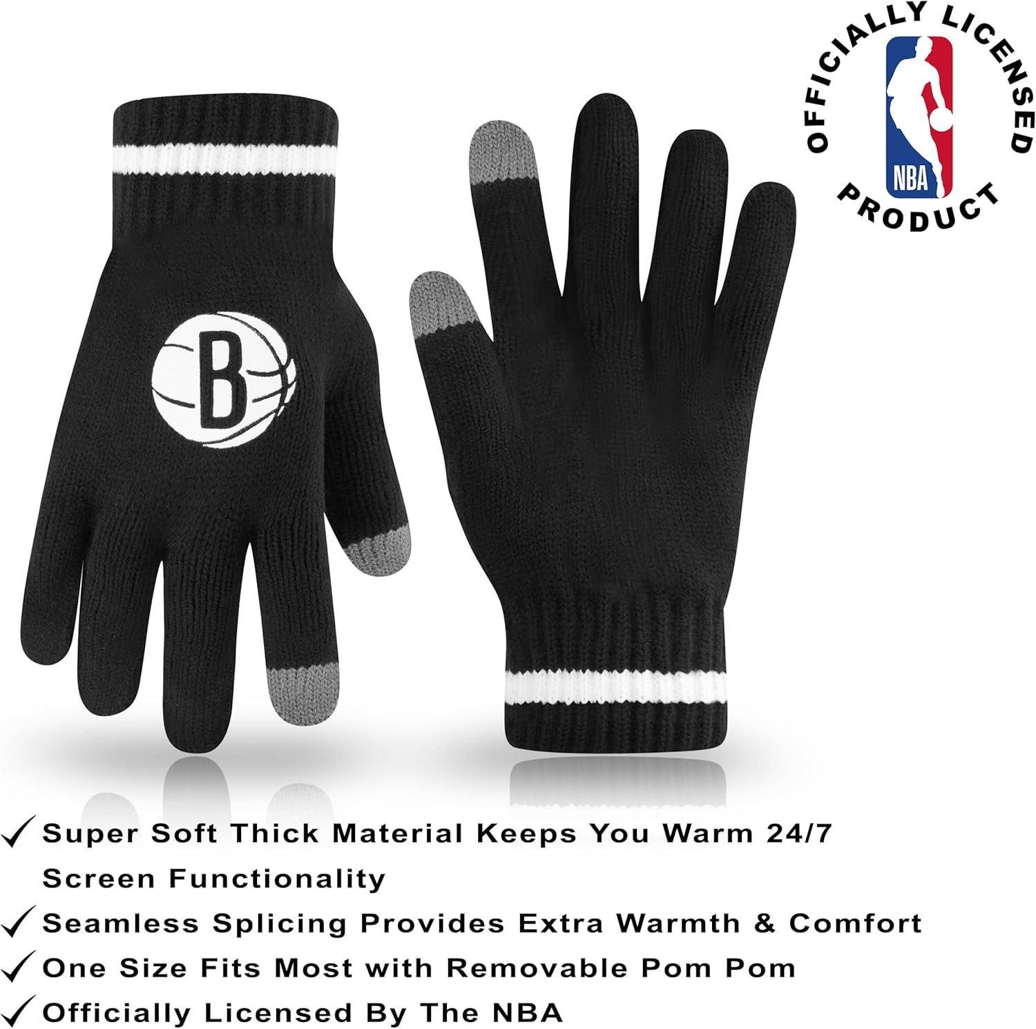 Ultra Game Men’s NBA Official Super Soft Winter Beanie Hat with Extra Warm Touch Screen Gloves(Team Color)
