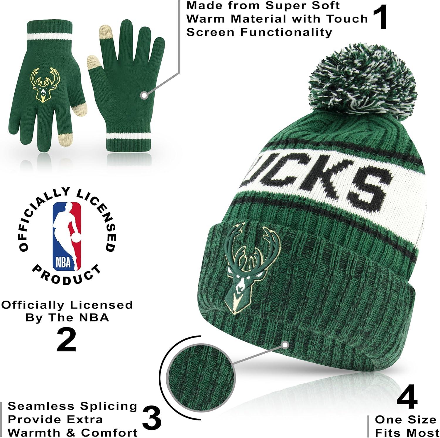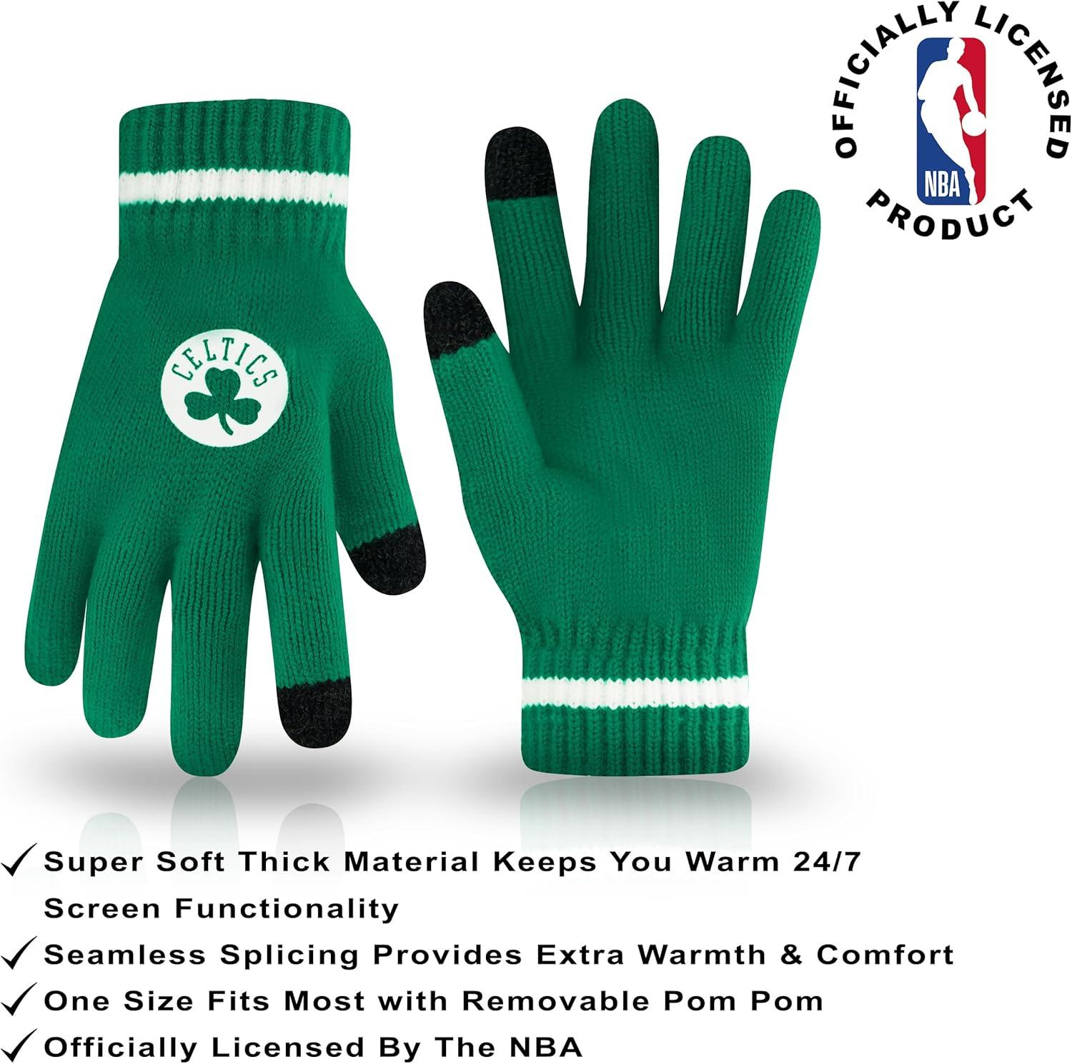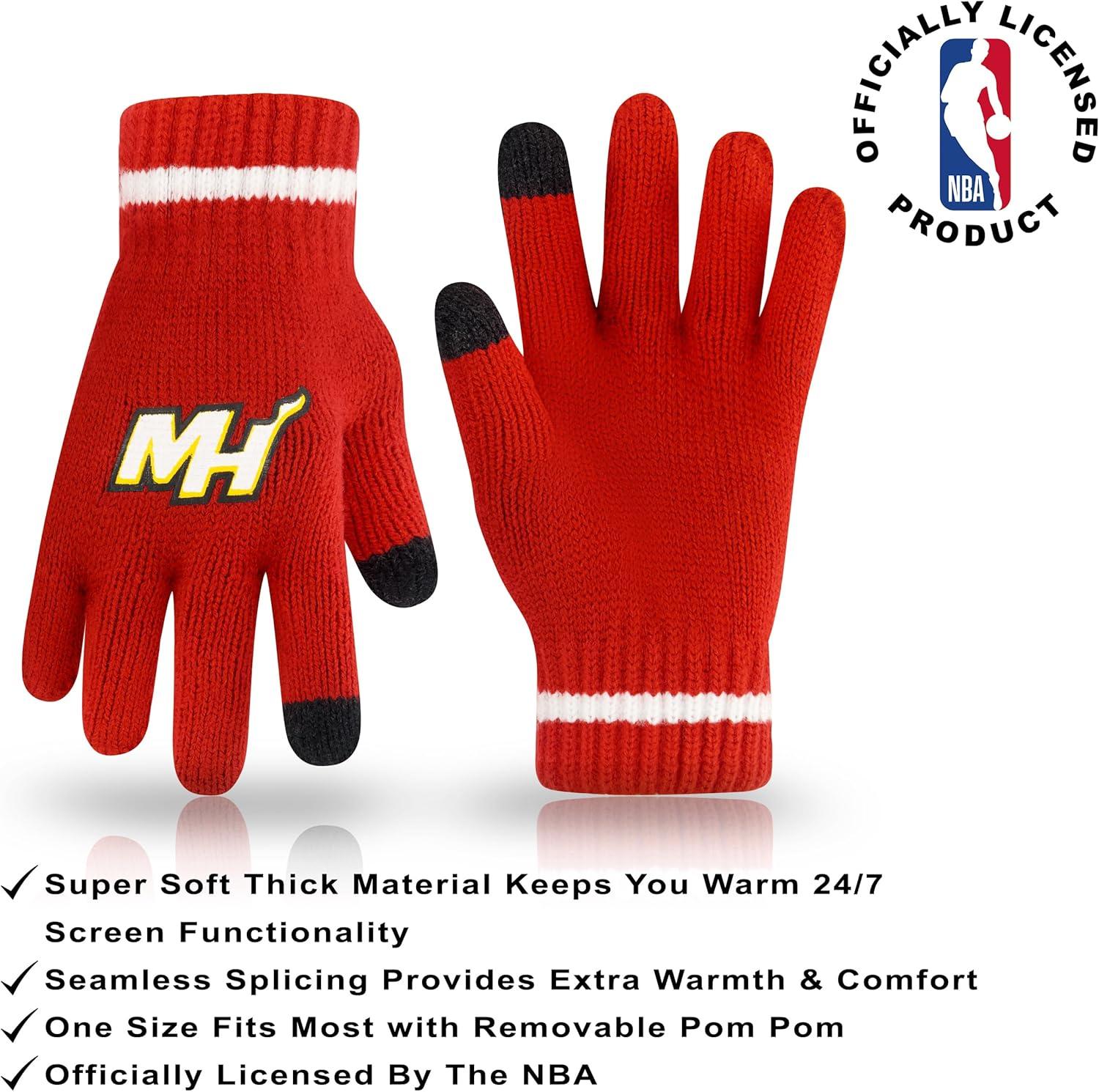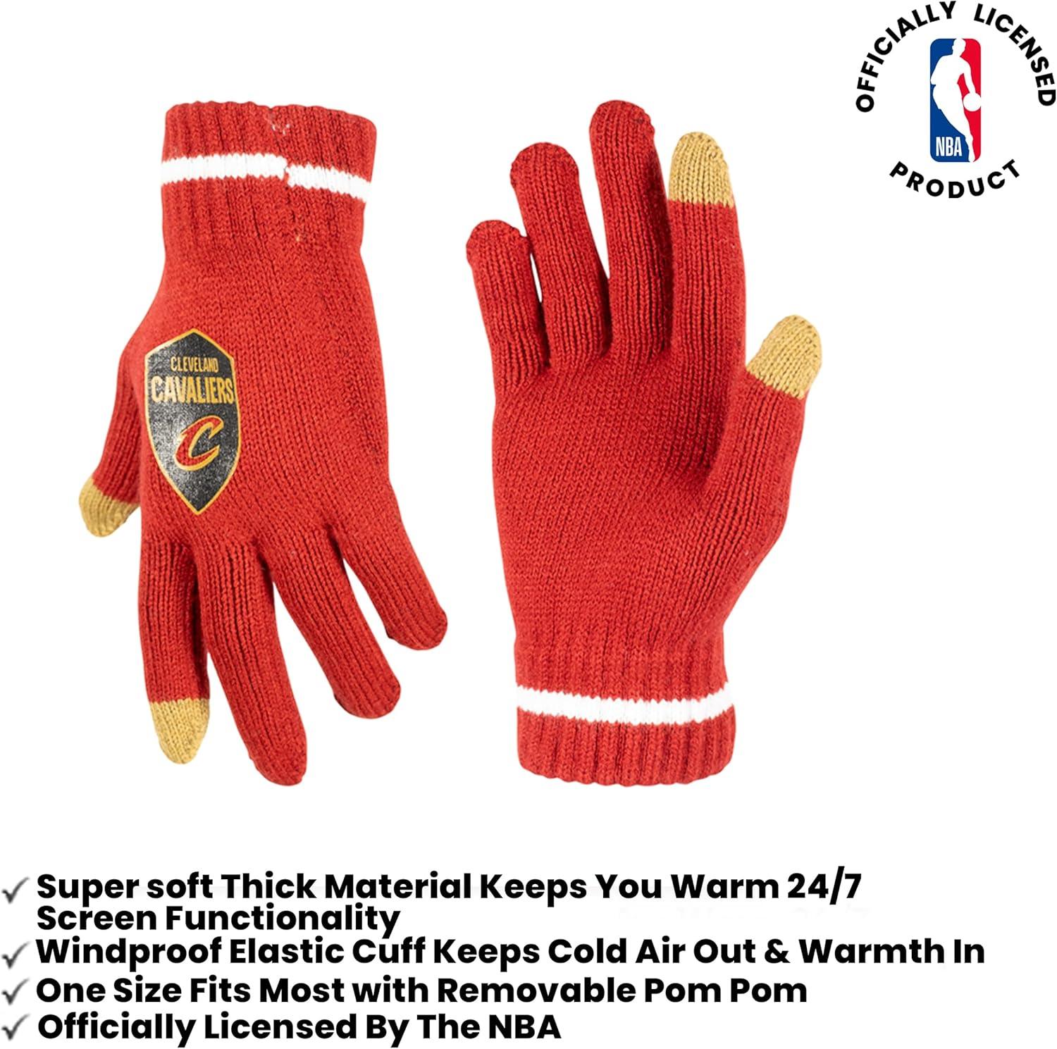 Ultra Game Men’s NBA Official Super Soft Winter Beanie Hat with Extra Warm Touch Screen Gloves(Team Color)