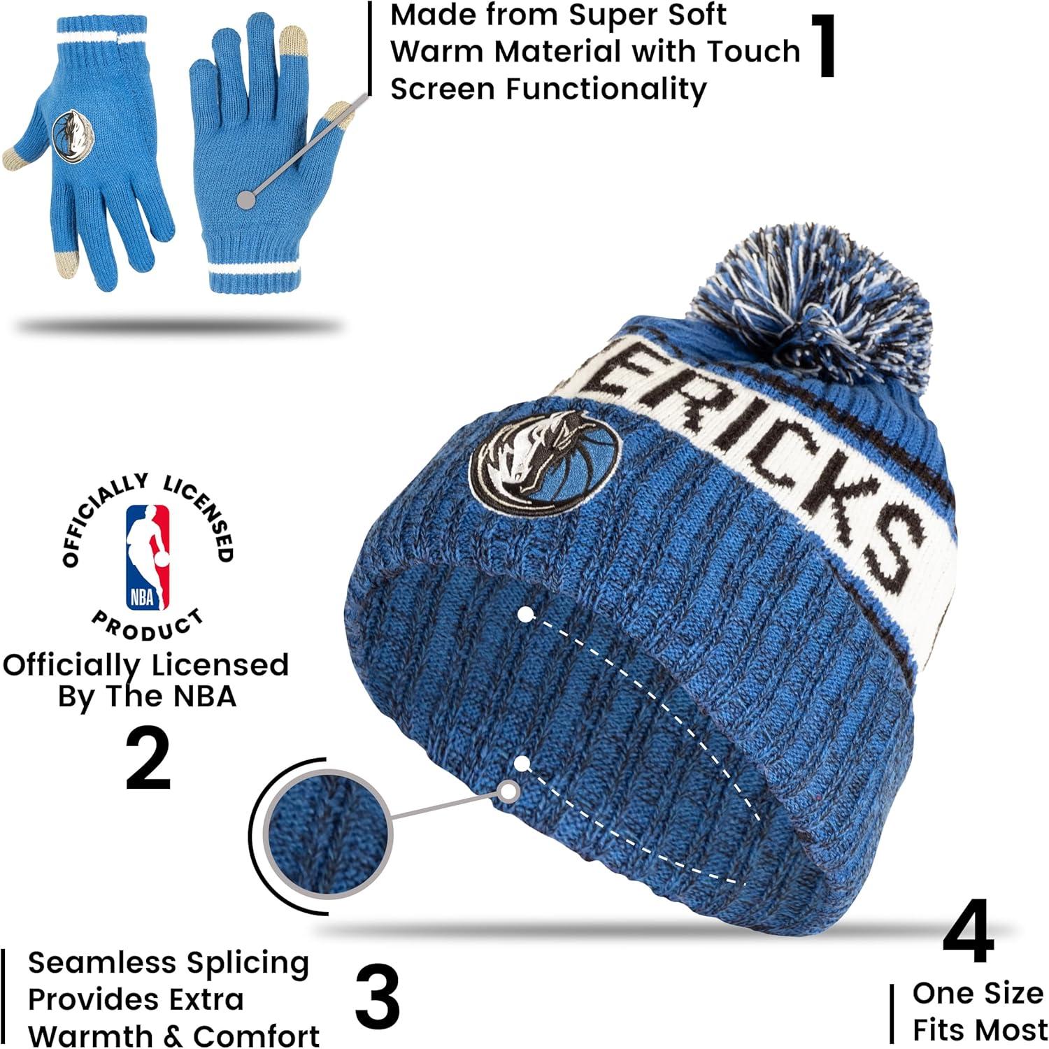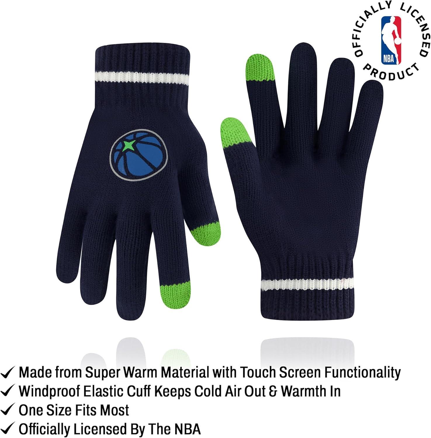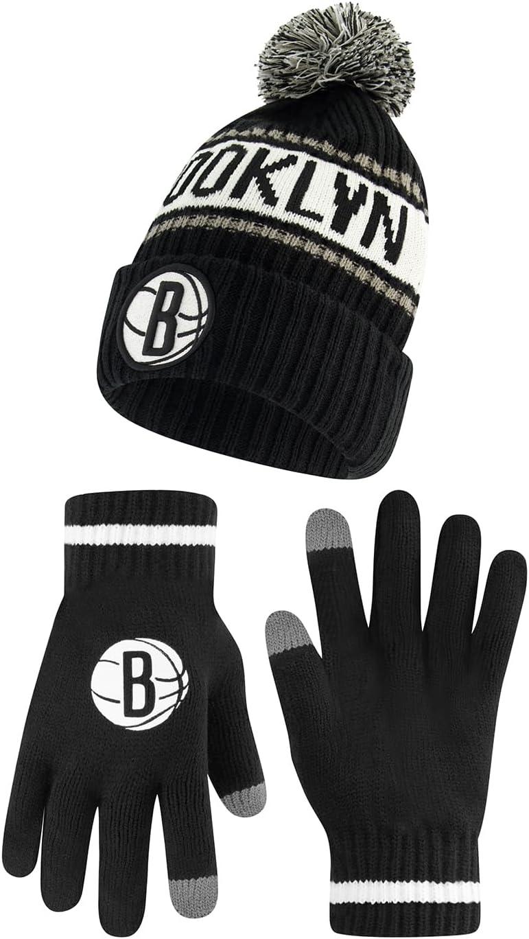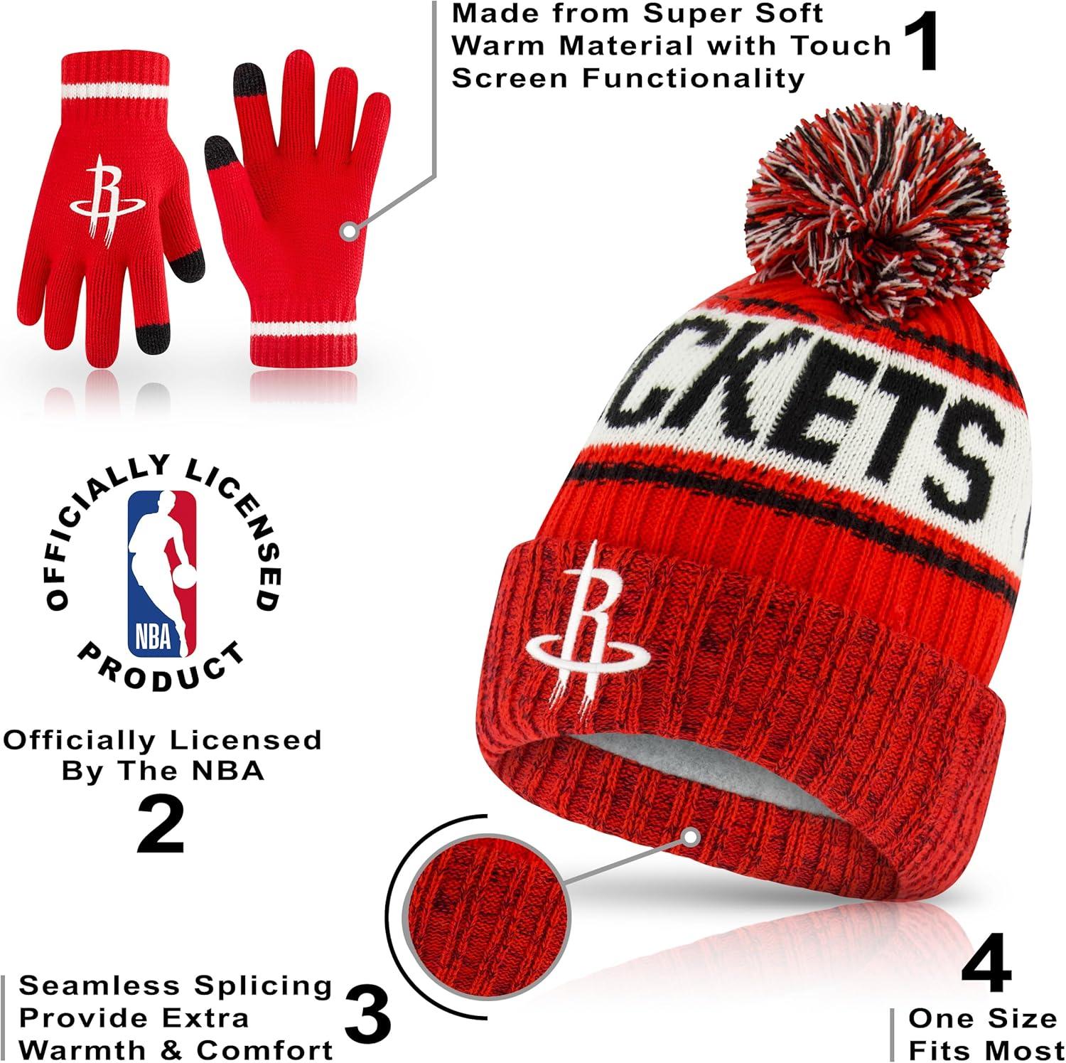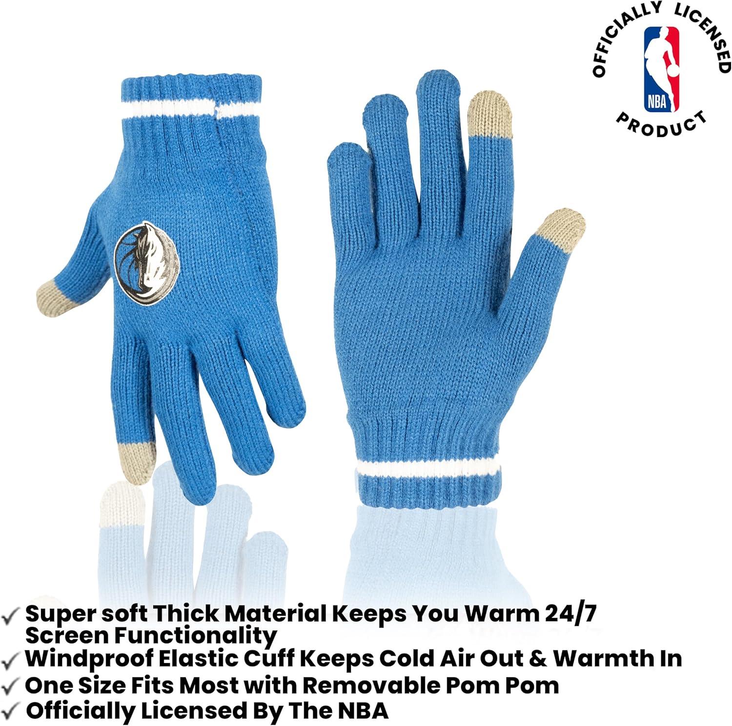 Ultra Game Men’s NBA Official Super Soft Winter Beanie Hat with Extra Warm Touch Screen Gloves(Team Color)