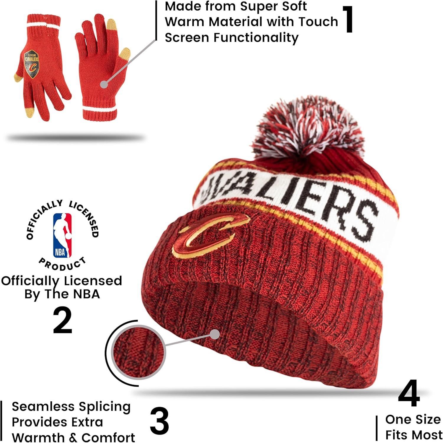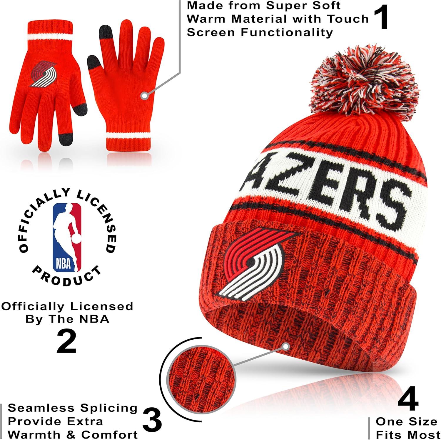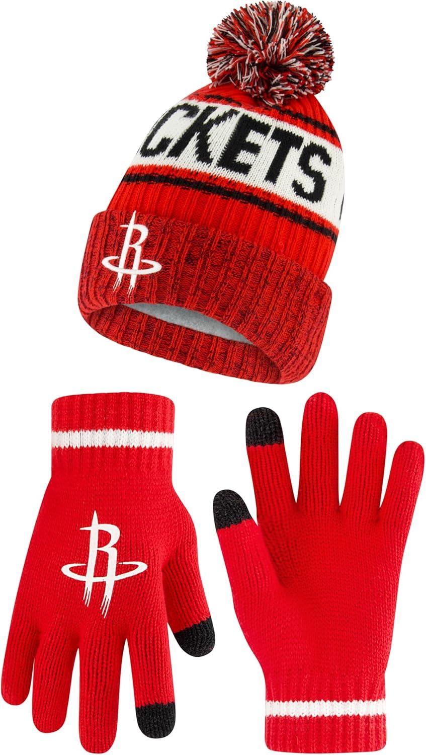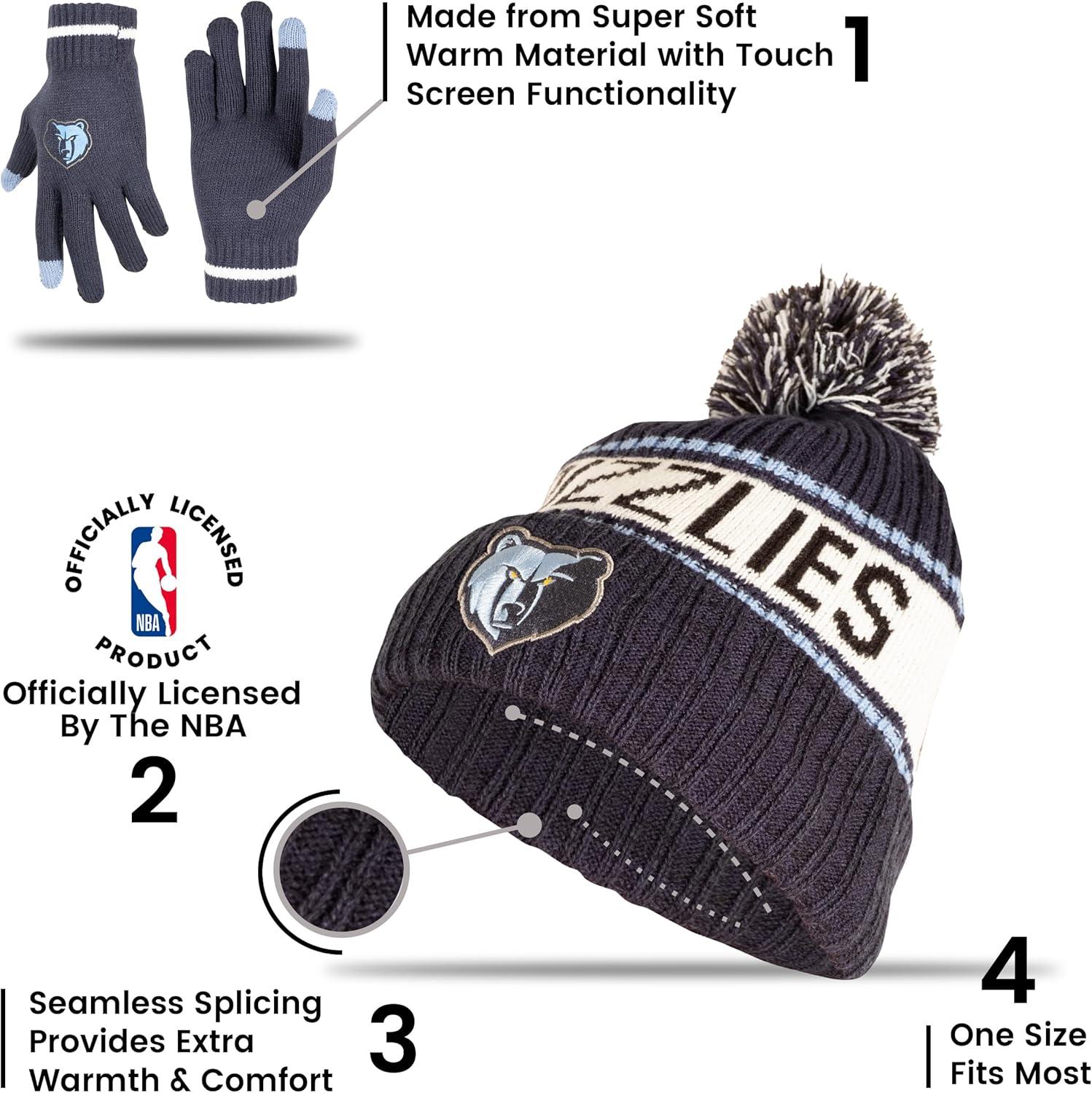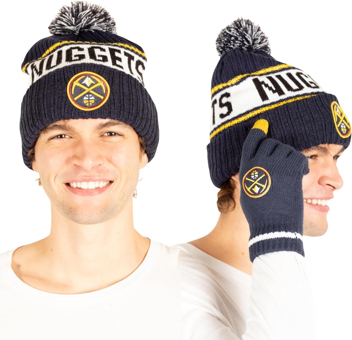Ultra Game Men’s NBA Official Super Soft Winter Beanie Hat with Extra Warm Touch Screen Gloves(Team Color)
