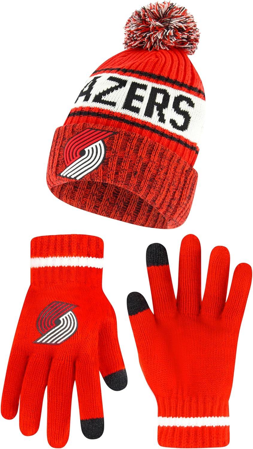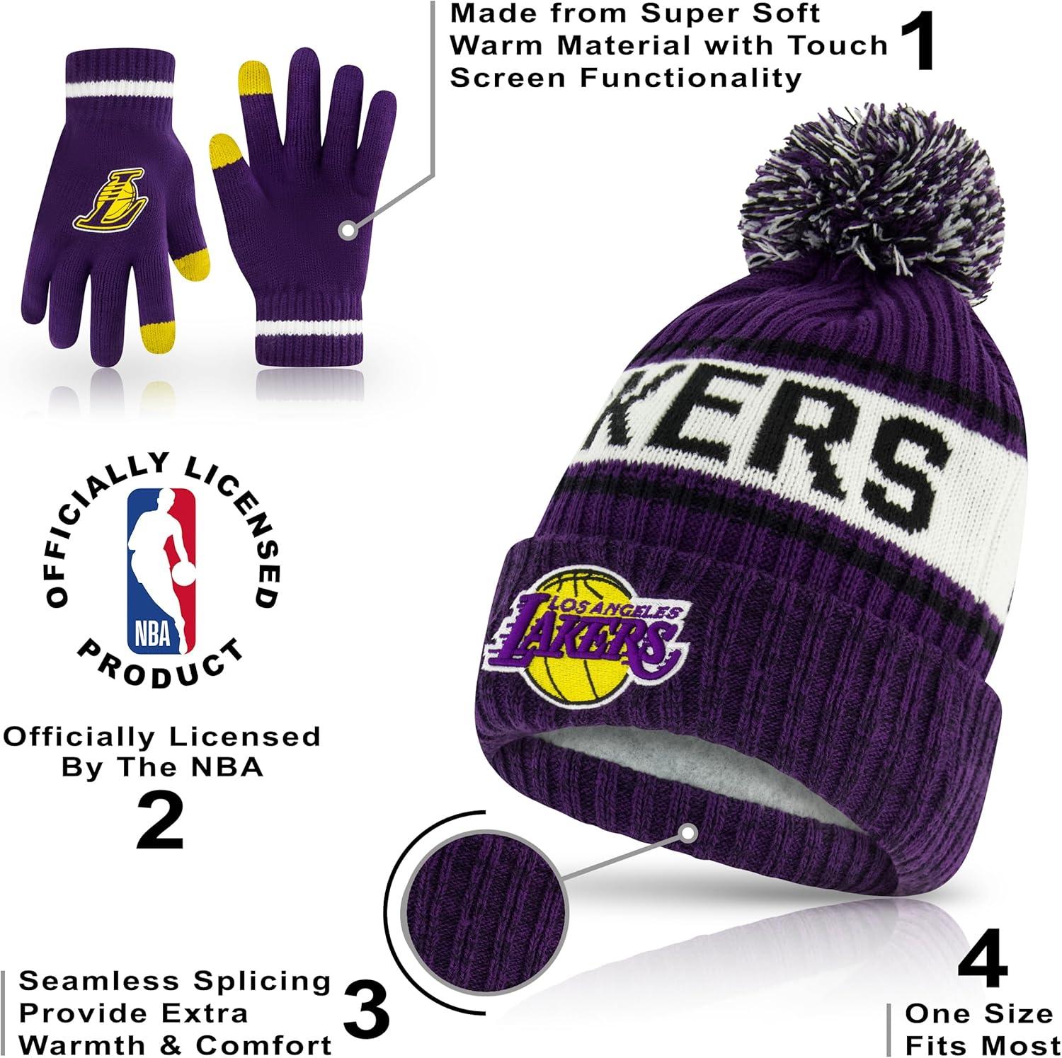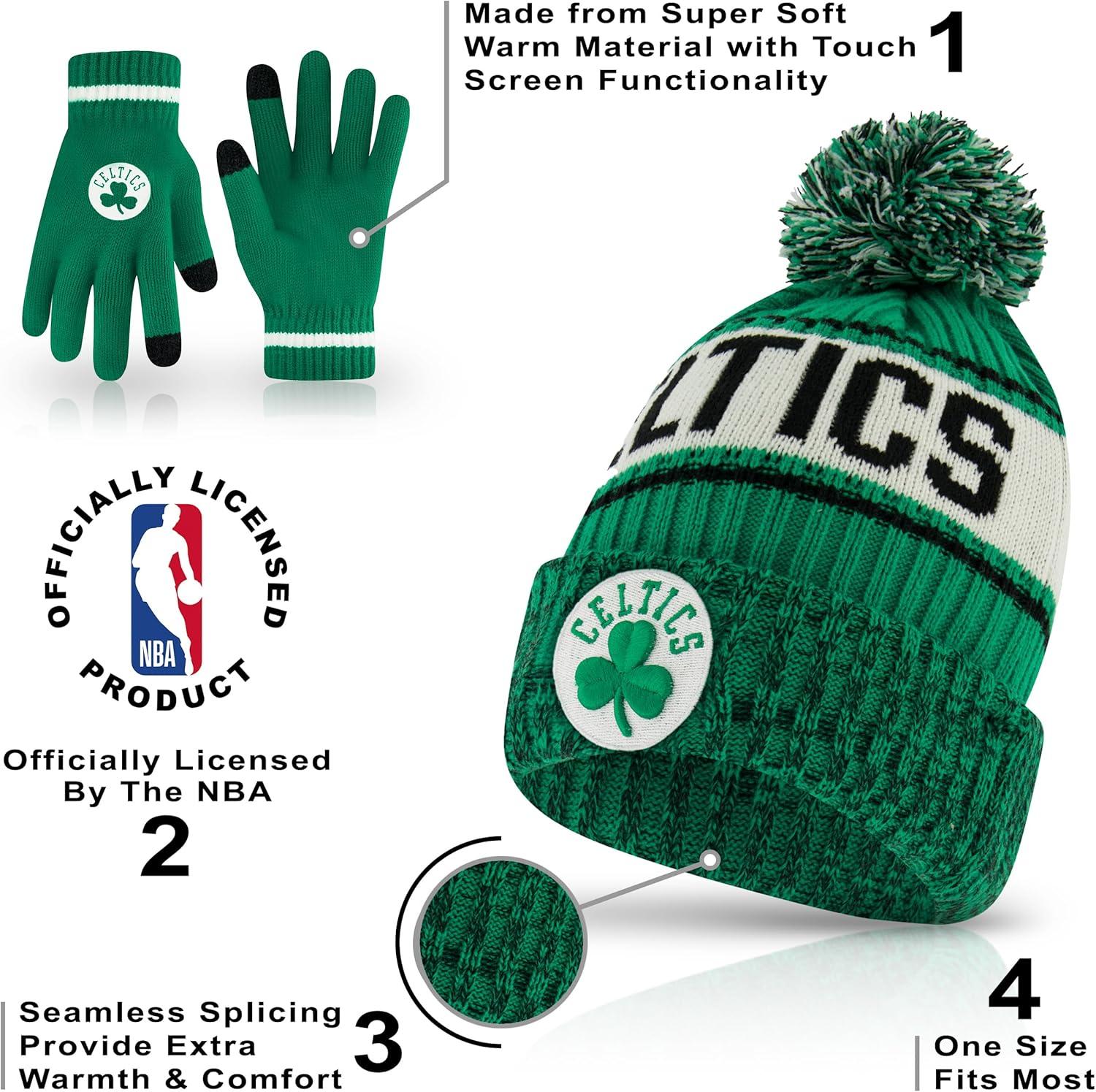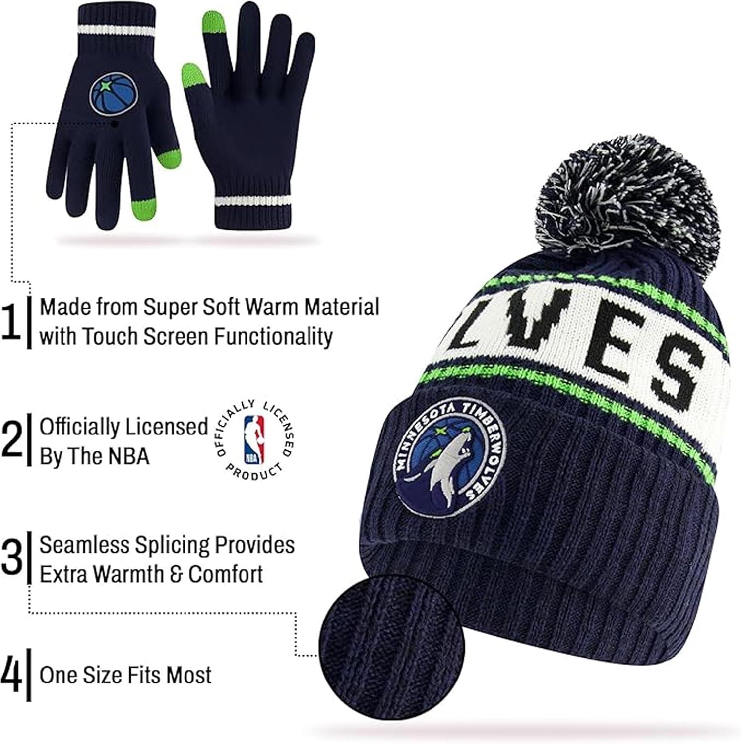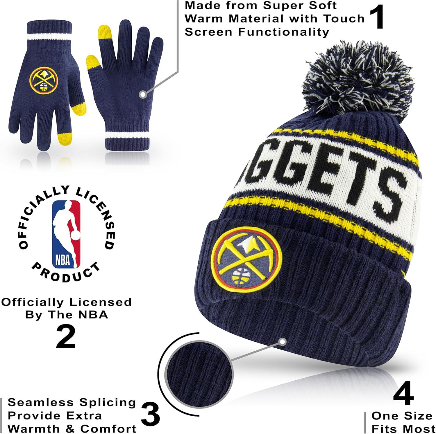 Ultra Game Men’s NBA Official Super Soft Winter Beanie Hat with Extra Warm Touch Screen Gloves(Team Color)