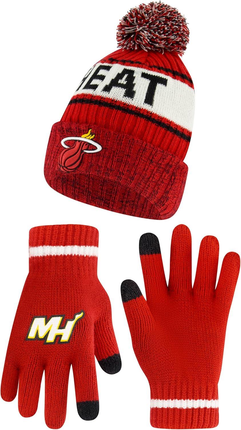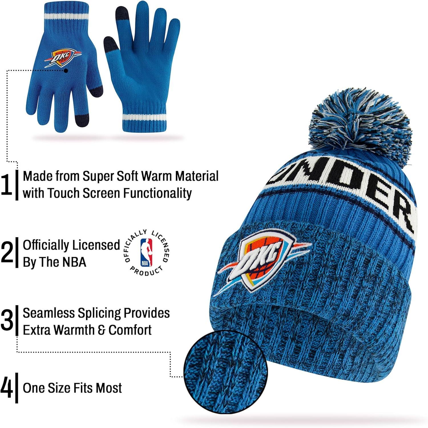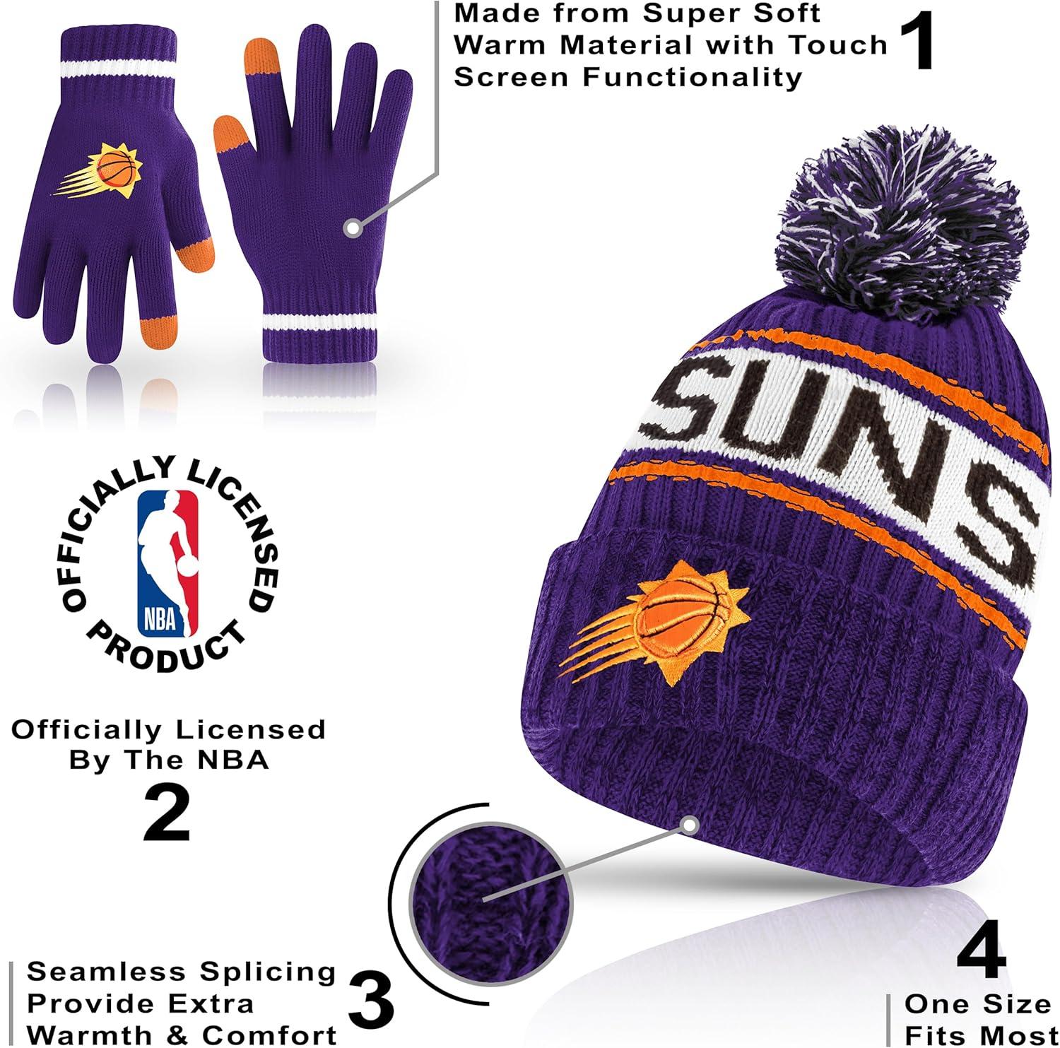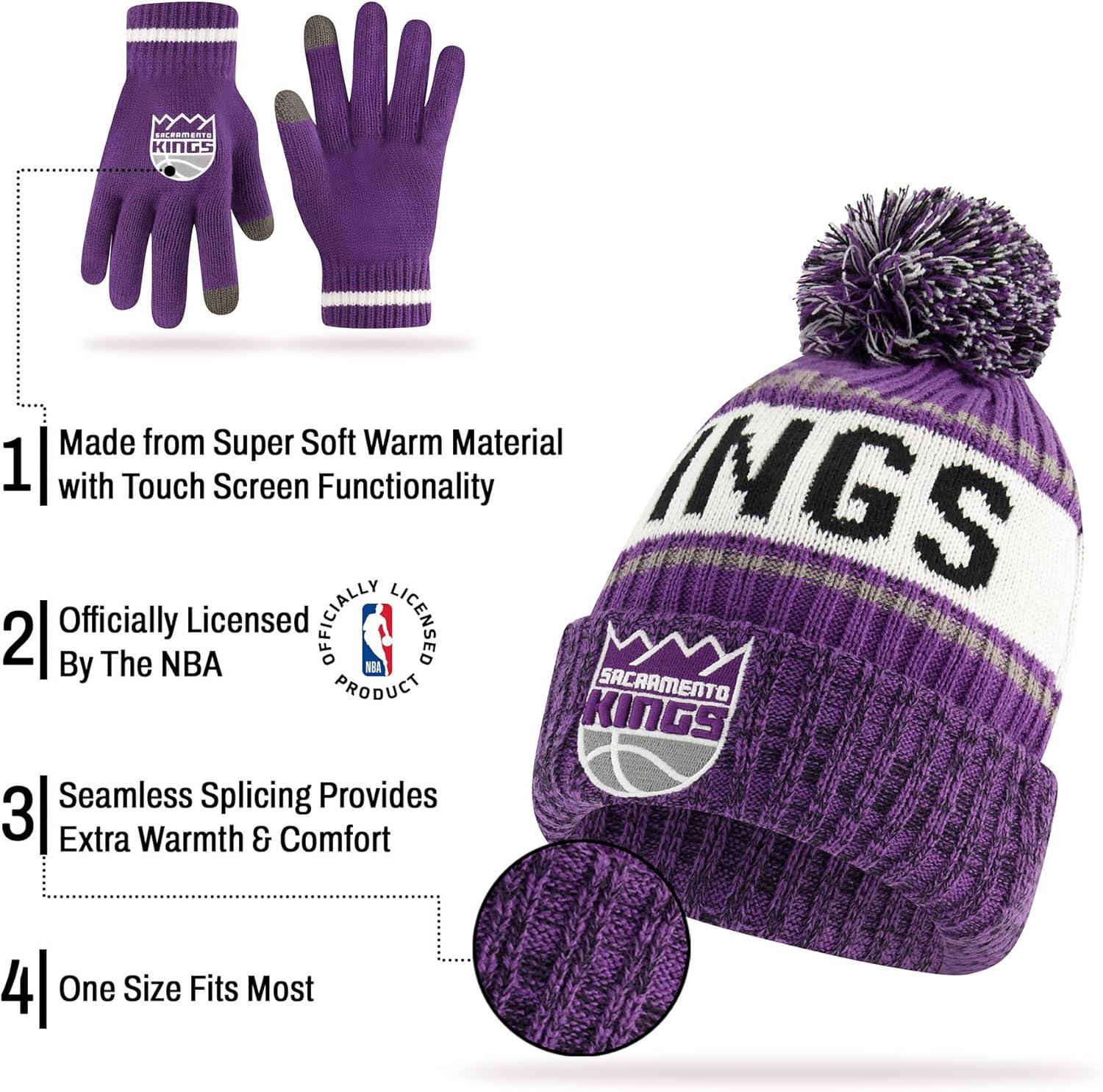 Ultra Game Men’s NBA Official Super Soft Winter Beanie Hat with Extra Warm Touch Screen Gloves(Team Color)