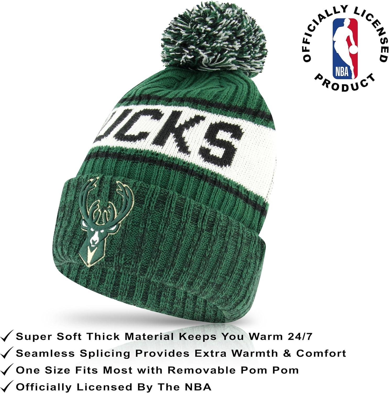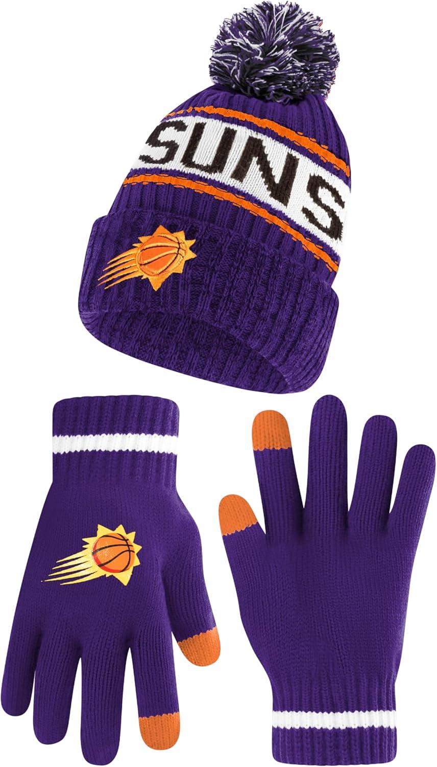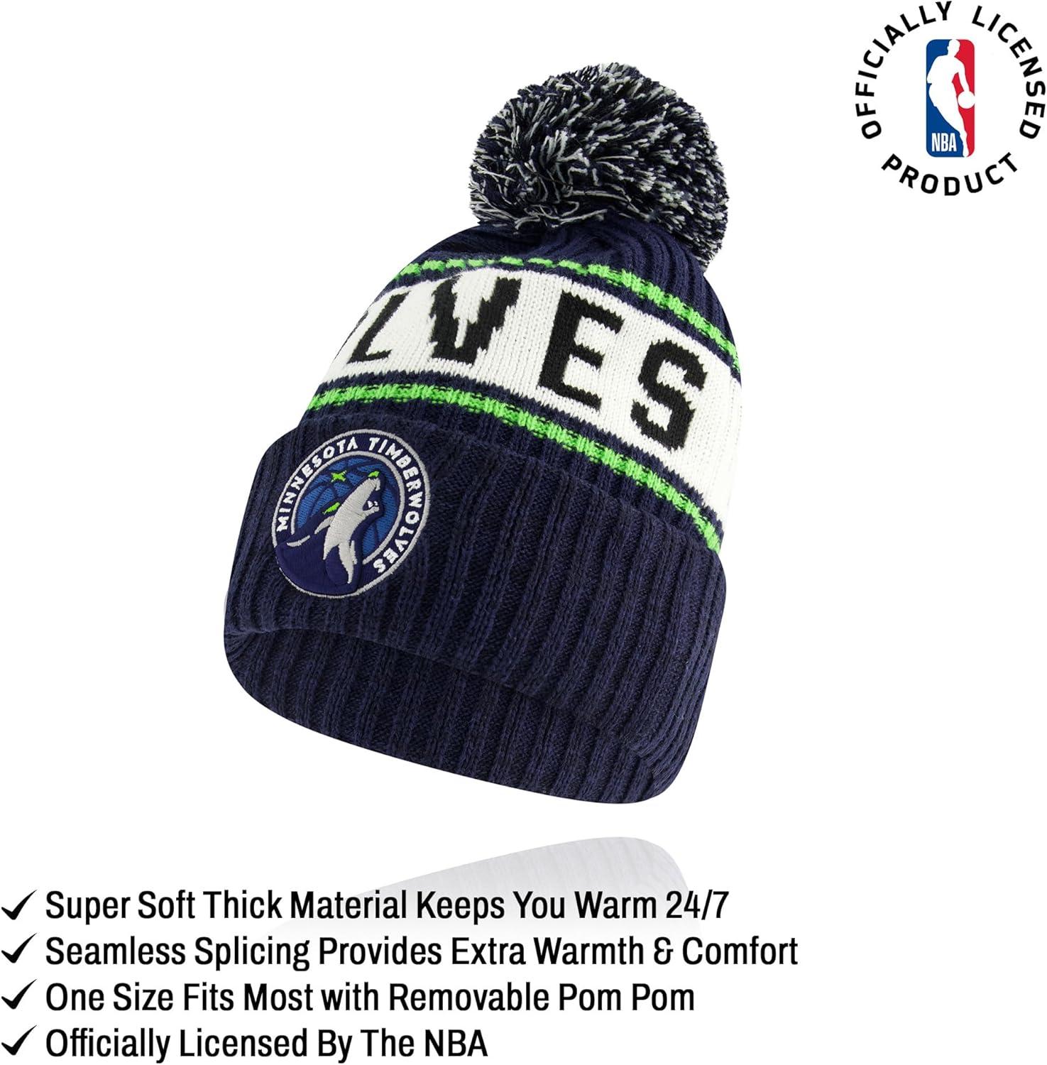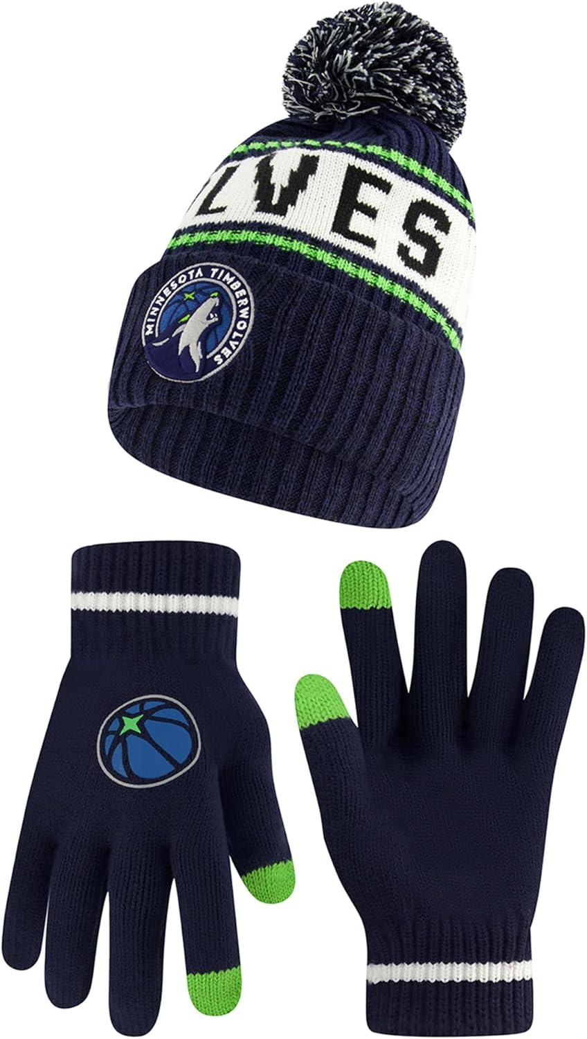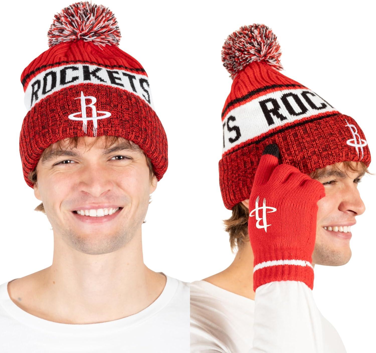 Ultra Game Men’s NBA Official Super Soft Winter Beanie Hat with Extra Warm Touch Screen Gloves(Team Color)