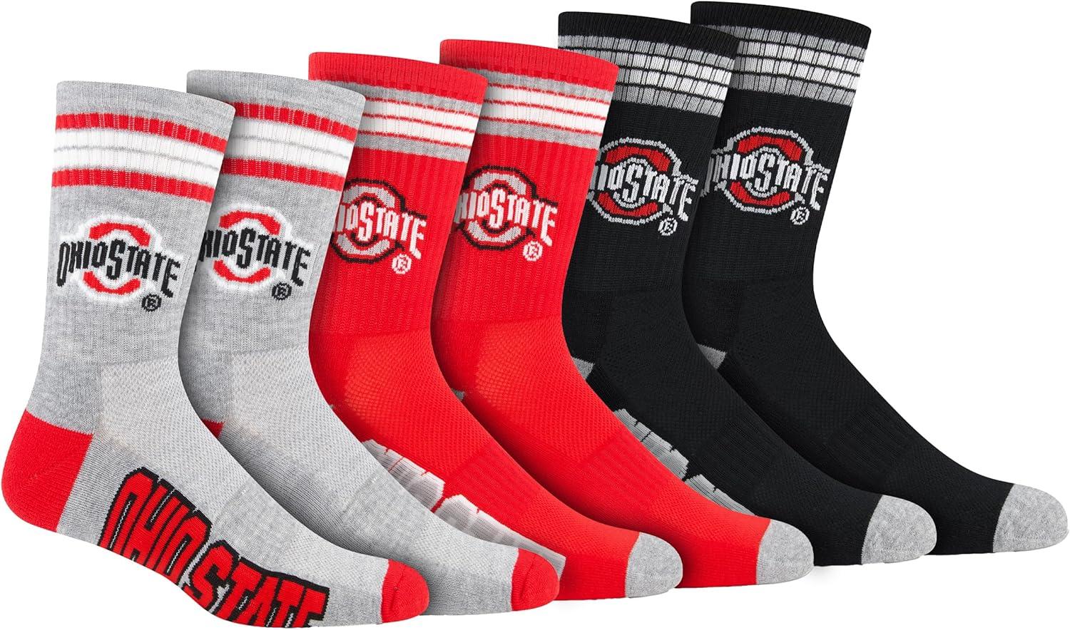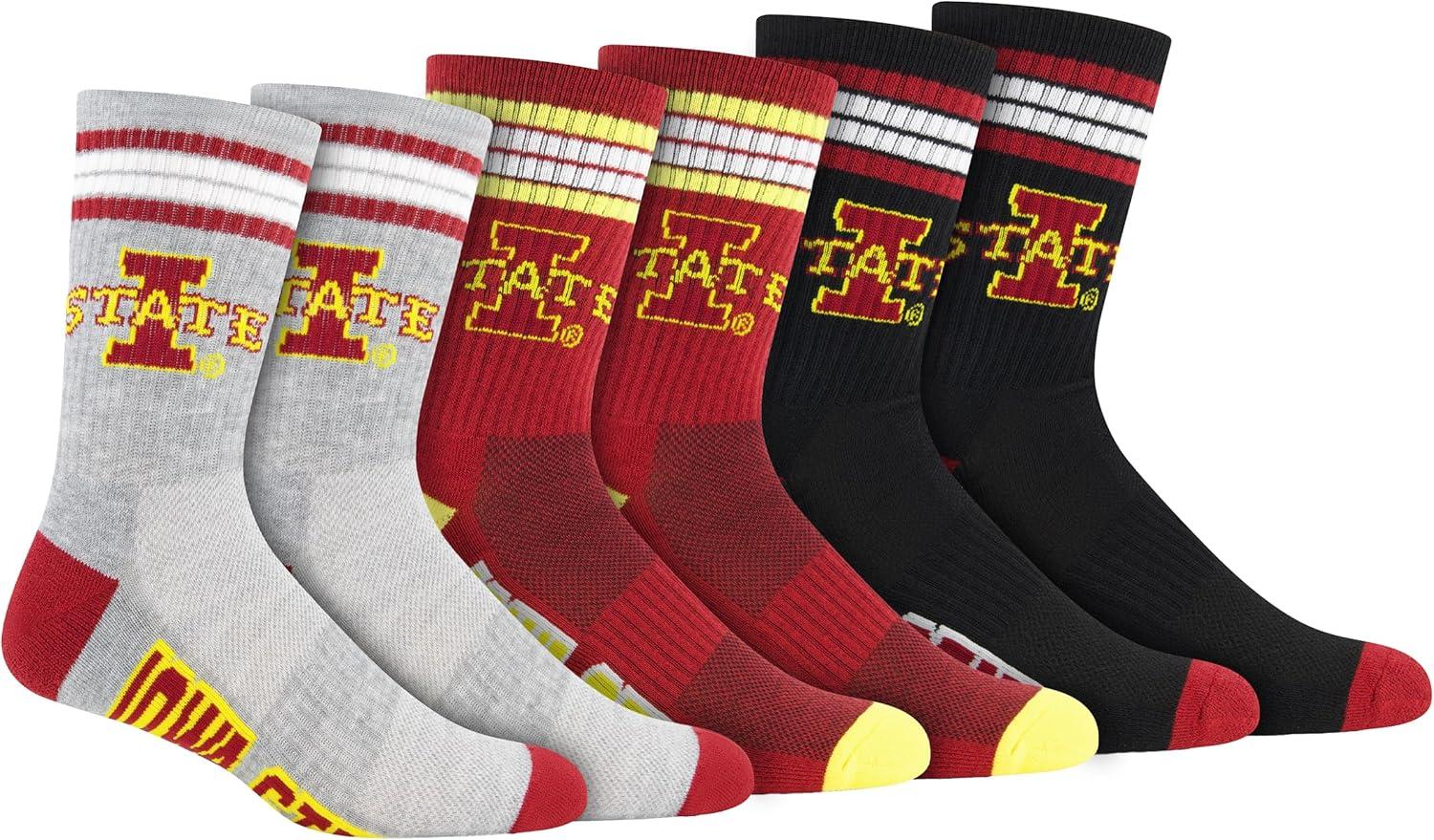 Ultra Game Men’s NCAA Official Athletic Cushioned Secure Fit Team Crew Socks-3 Pack(Assorted)
