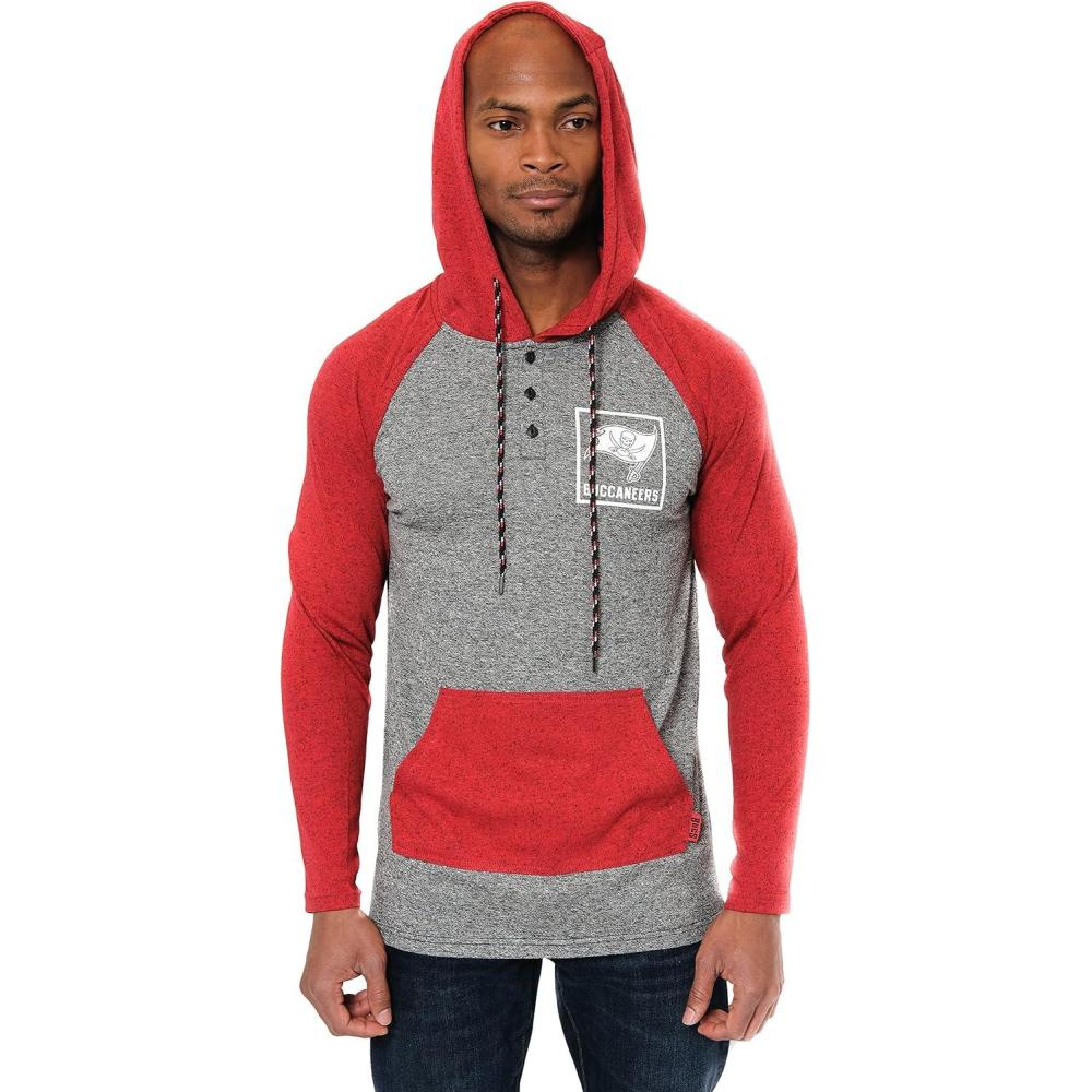 Ultra Game Mens NFL Official Fleece Hoodie Pullover Sweatshirt Henley(Tampa Bay Buccaneers)