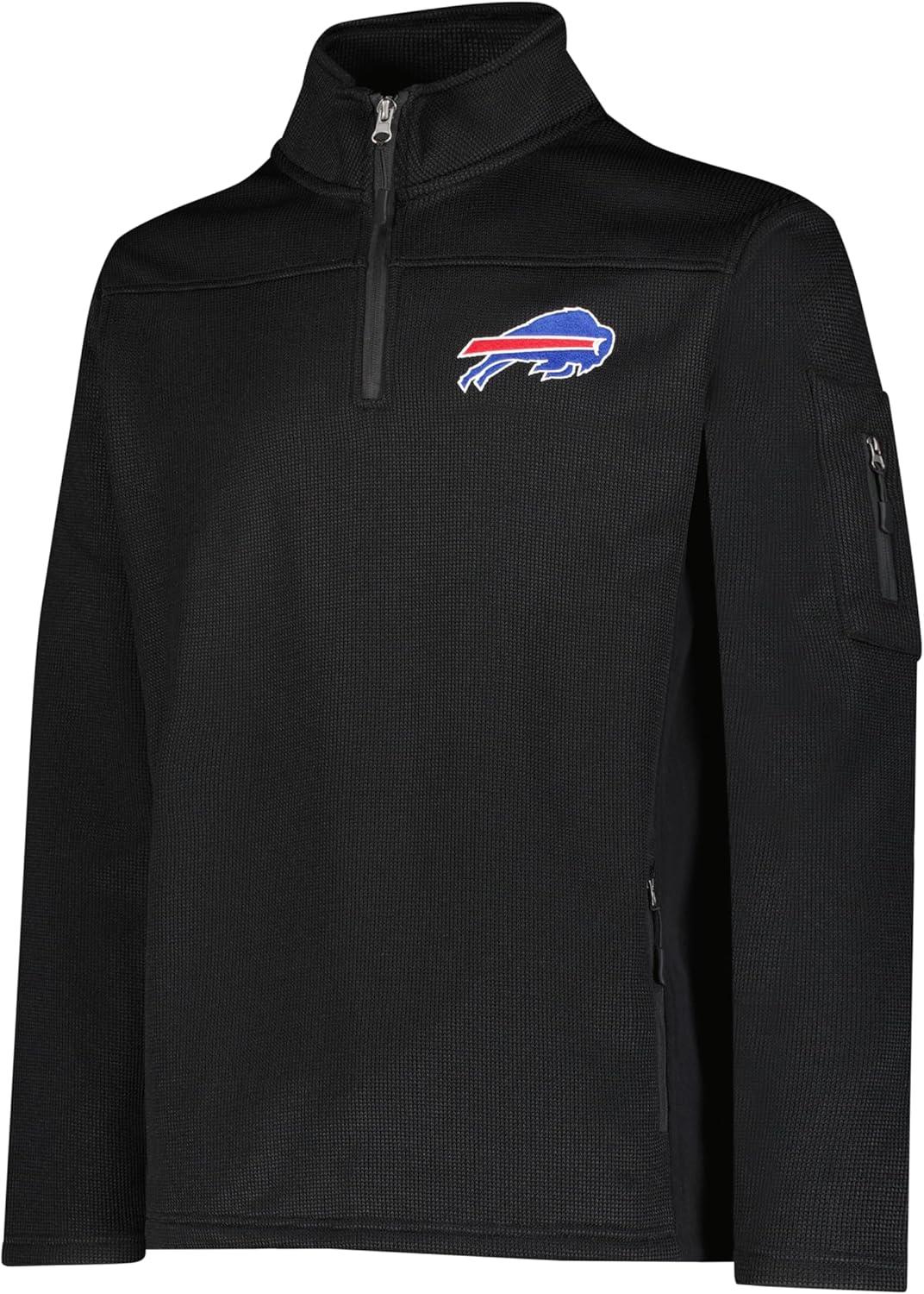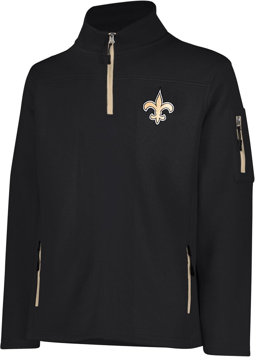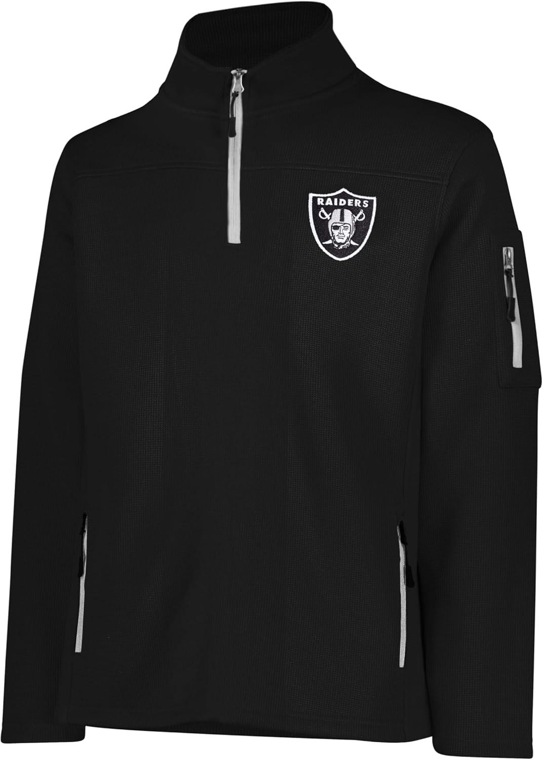 Ultra Game Men’s NFL Official Super Soft Quarter-Zip Sweatshirt with Zipper Pockets(Black)