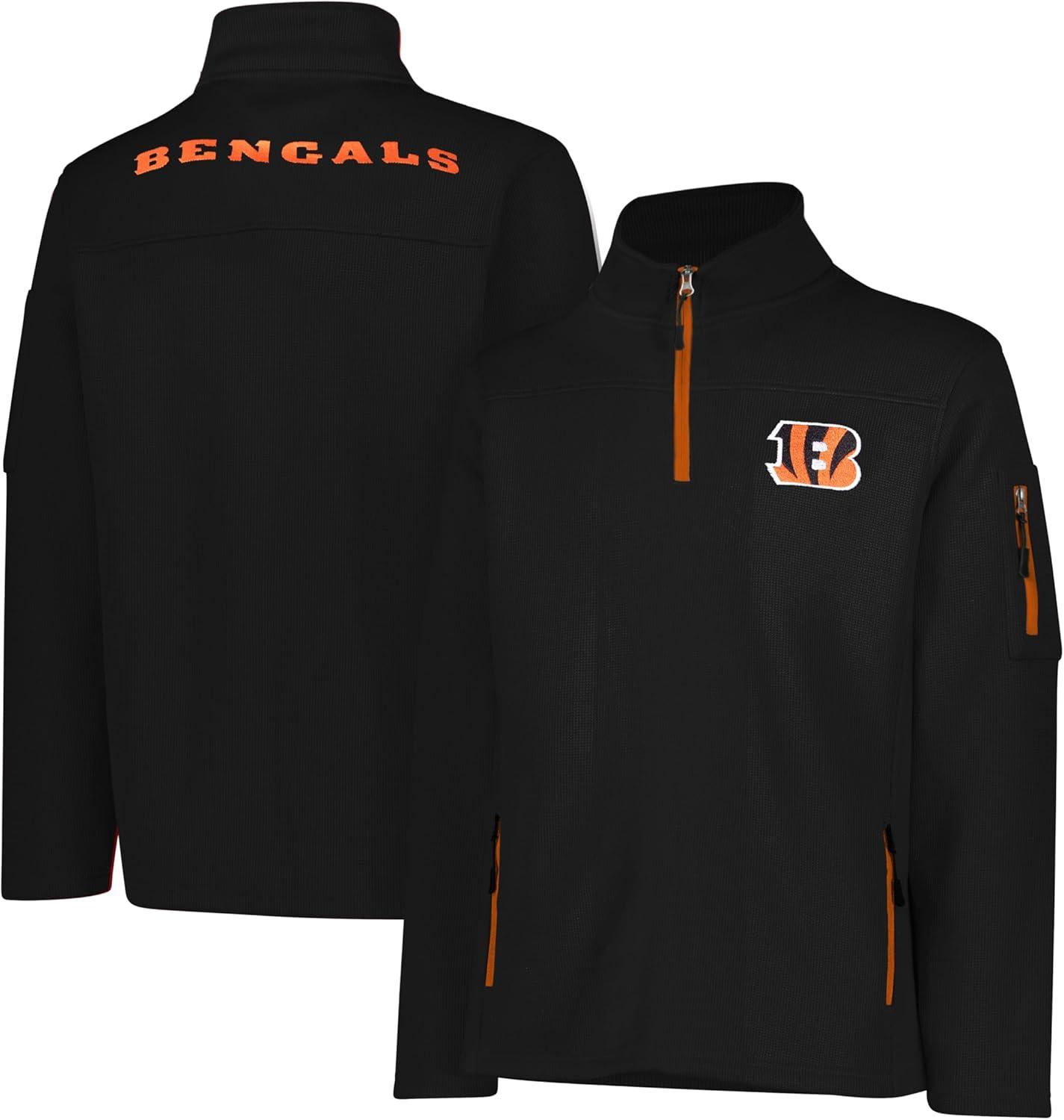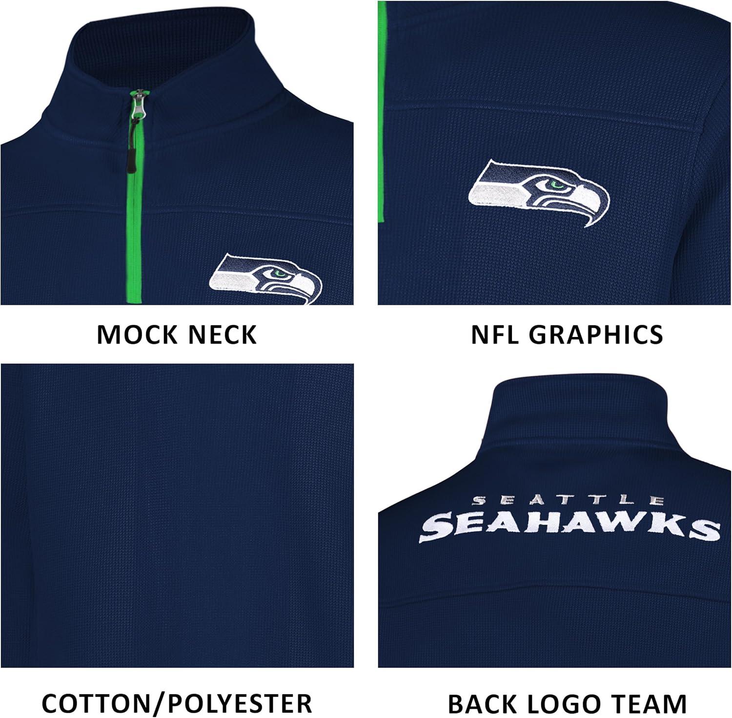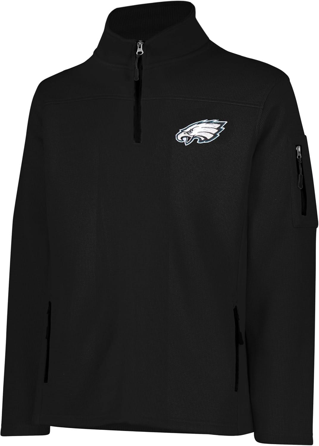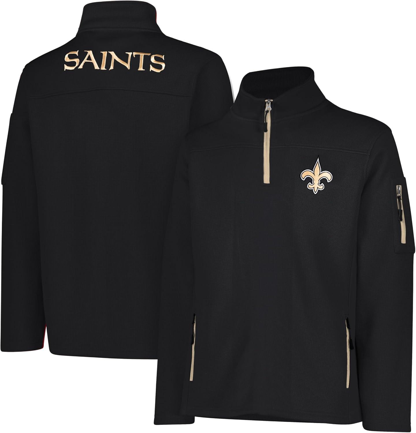 Ultra Game Men’s NFL Official Super Soft Quarter-Zip Sweatshirt with Zipper Pockets(Black)