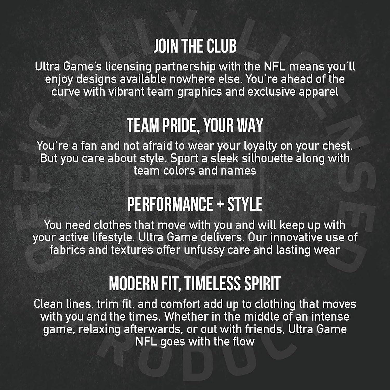 Ultra Game partners with the major sports leagues and franchises to bring you officially licensed gear at down-to-earth prices. If you like to wear your passion in public, Ultra Game's got you covered. Whether it's streetwear, loungewear, or true workout gear, Ultra Game is your number one source for highly fashionable team apparel. Why buy Ultra Game brand products? 100% Authentic – Ultra Game manufactures officially licensed apparel for the NBA and NFL. Best In Class Apparel – We focus on manufacturing the highest quality apparel at affordable prices. Highly Fashionable – We are constantly updating our styles with the latest fashion trends. Satisfaction Guaranteed – We will work with you to resolve all issues until you are completely satisfied.