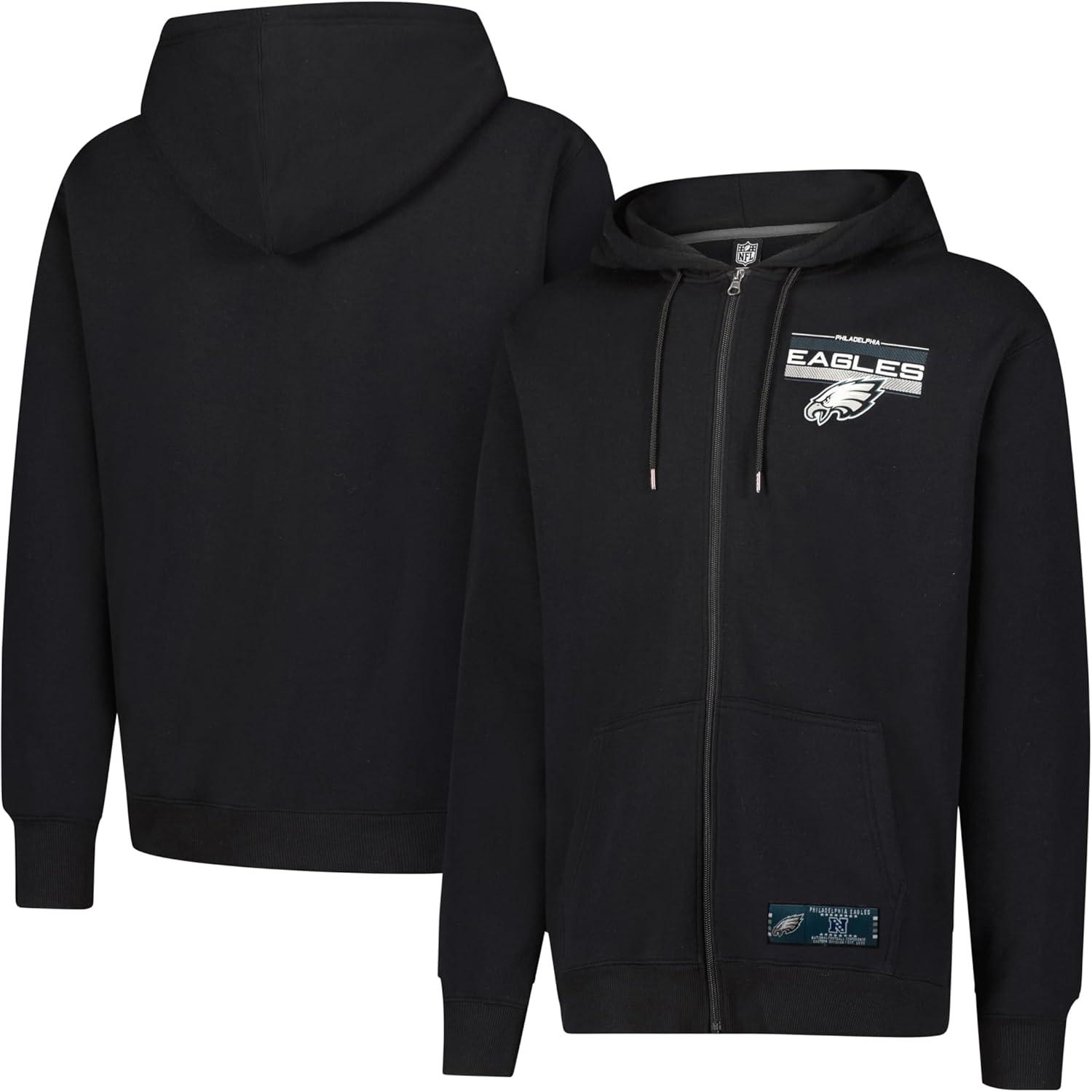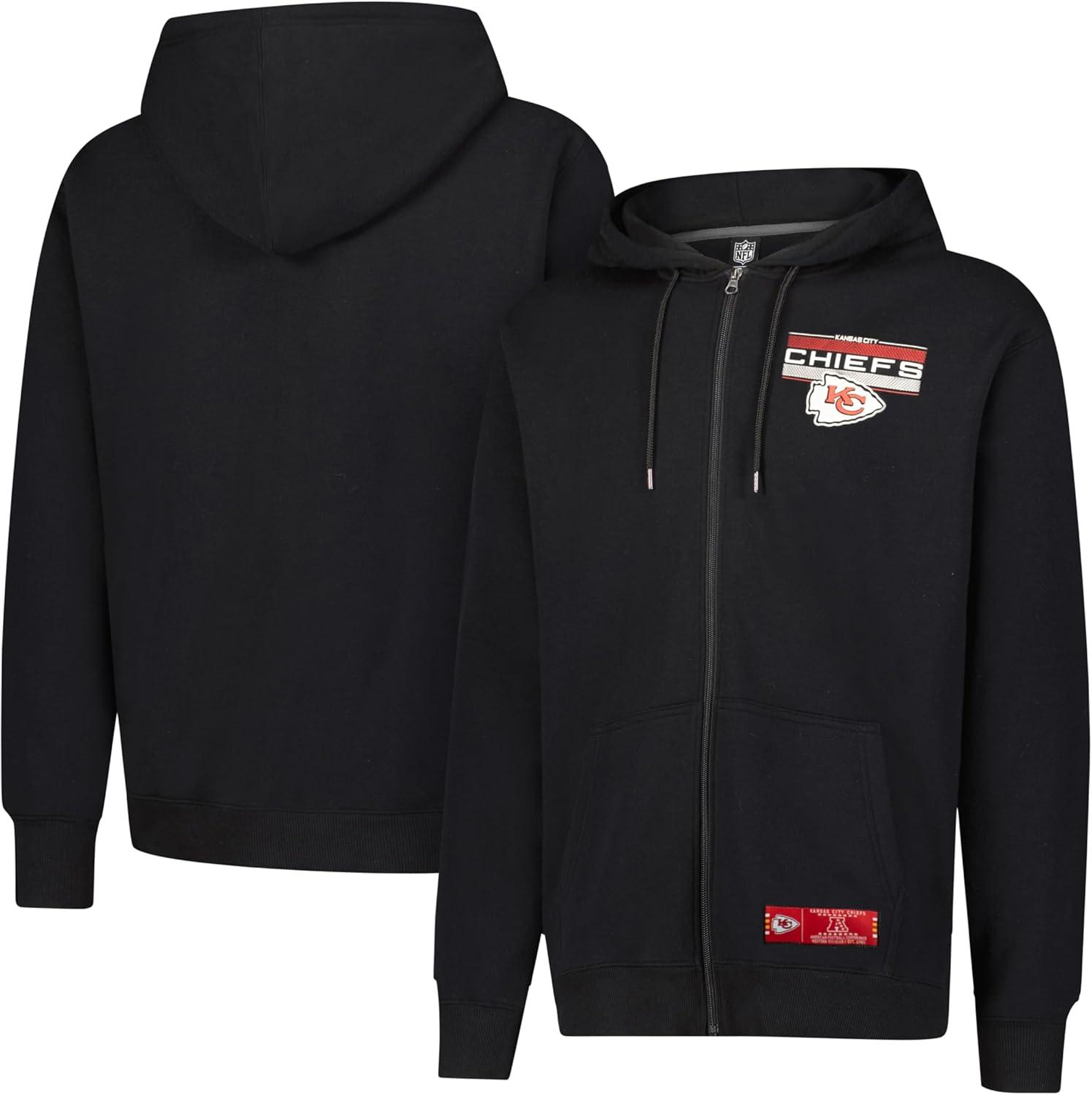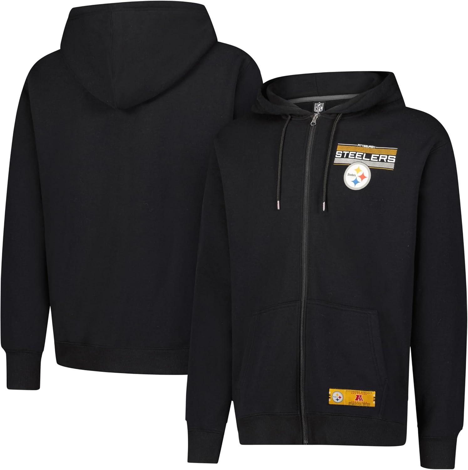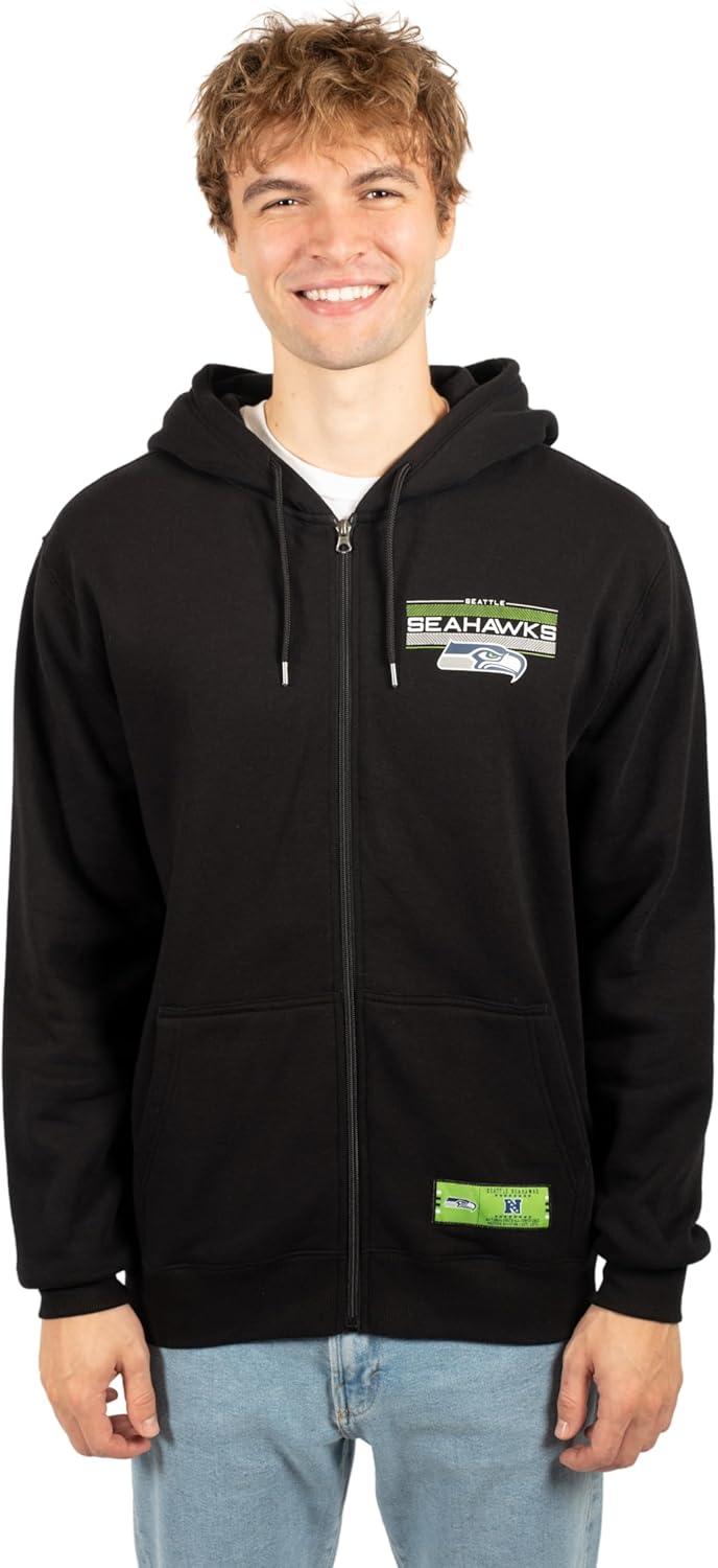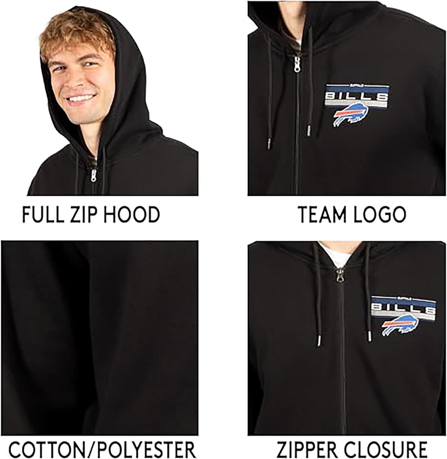 Ultra Game Mens NFL Official Supremely Soft Full Zip Hoodie Jacket(Black)
