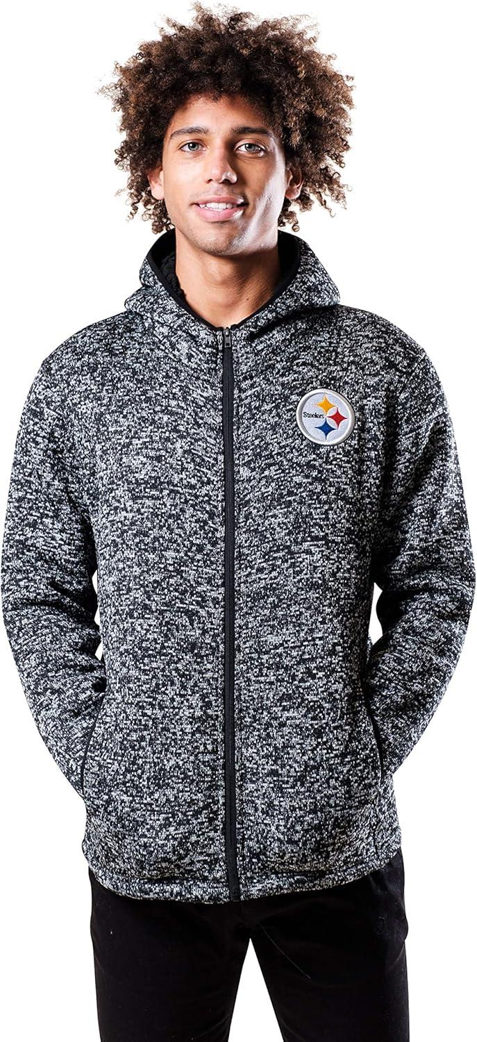 Ultra Game Men’s NFL Official Ultimate Full Zip Varsity Hoodie Sweatshirt Jacket(Pittsburgh Steelers)