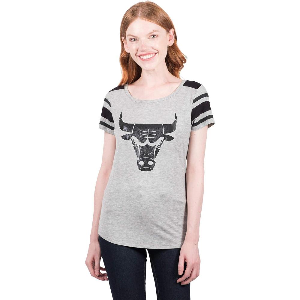 Ultra Game NBA Womens T-Shirt Box Out Varsity Stripe Tee Shirt, Gray(Gray)