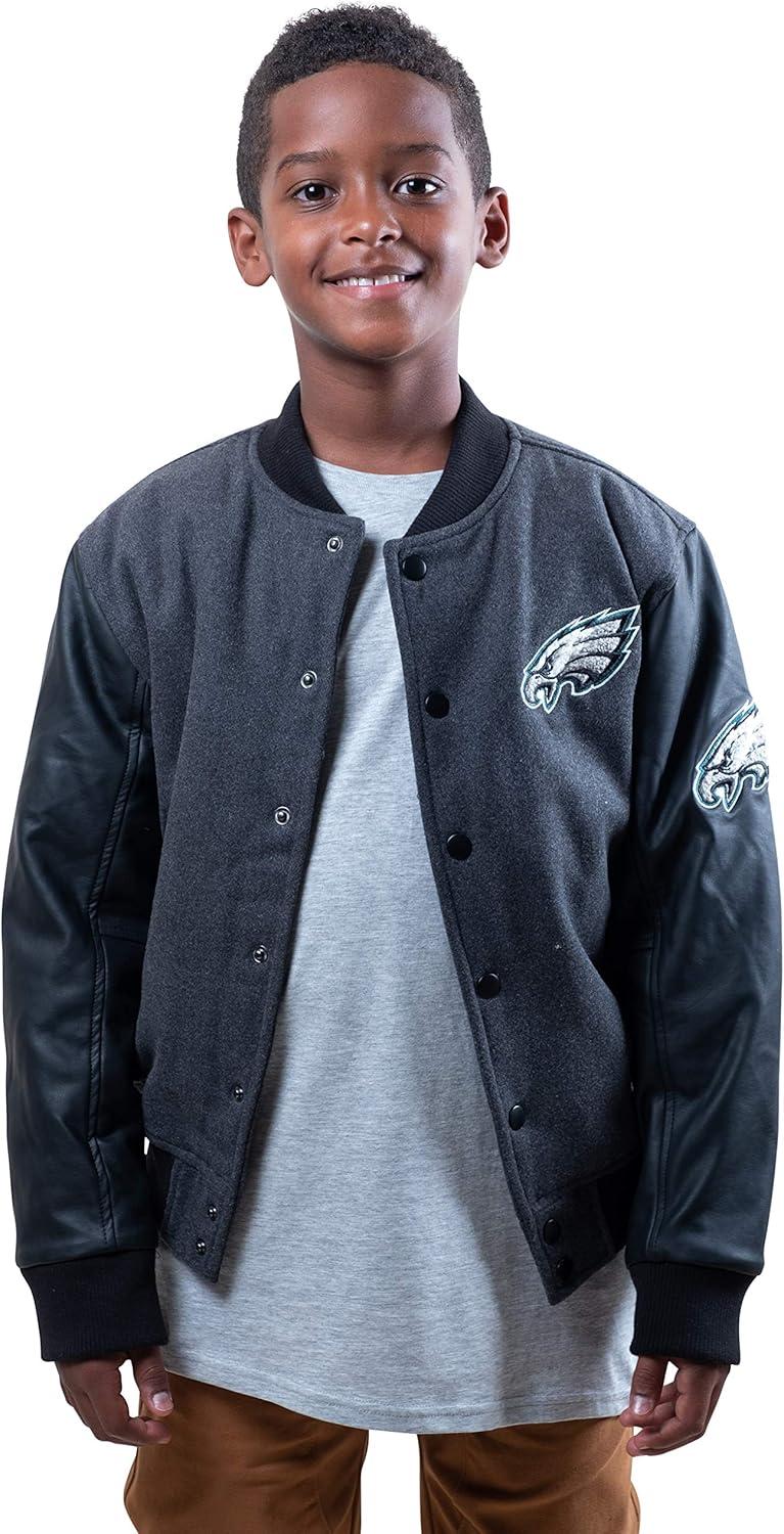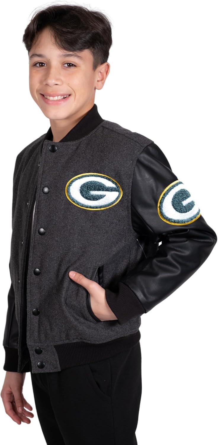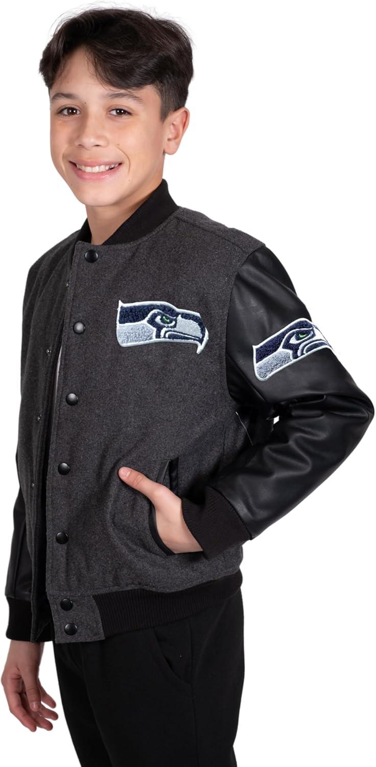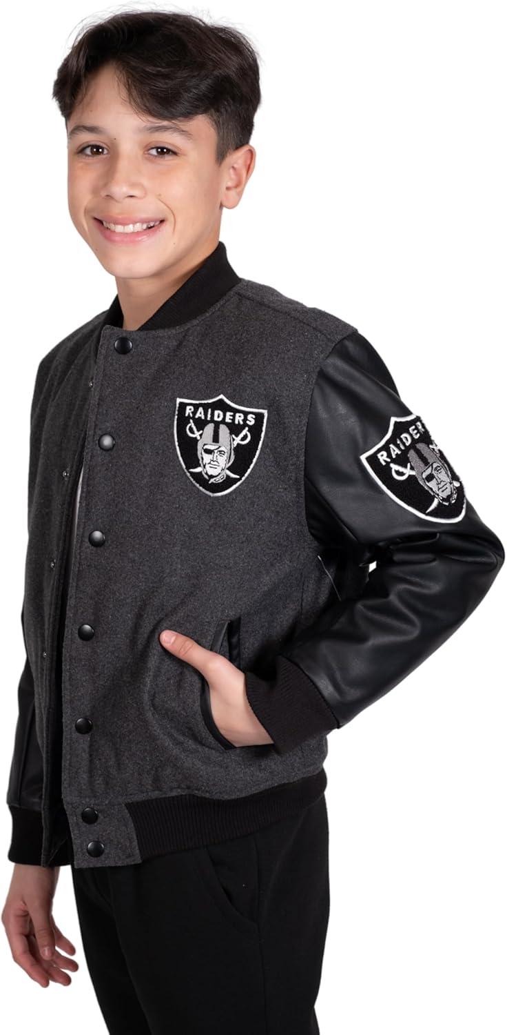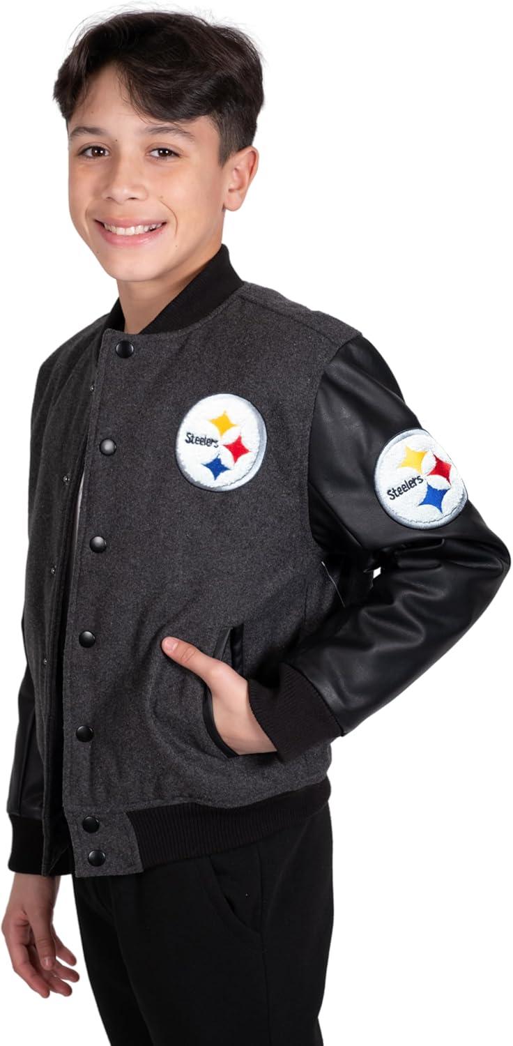 Ultra Game NFL Boys Classic Baseball Varsity Jacket(Charcoal)